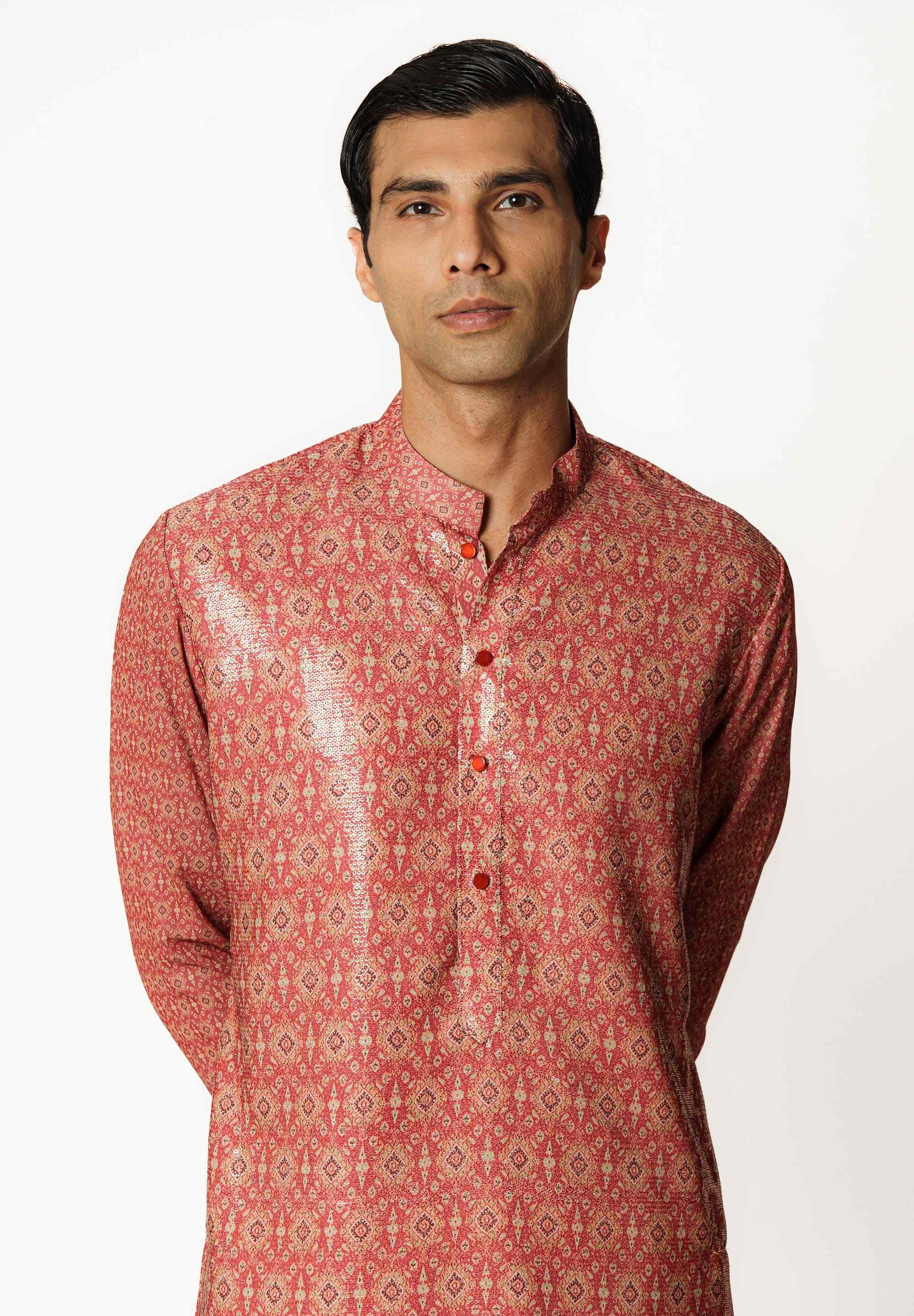 Brighten your wardrobe with our red print kurta and pant set, designed for both style and comfort. The kurta features a vibrant red print, crafted from a blend of sheeting and georgette, and lined with smooth crepe to ensure a luxurious fit and feel.