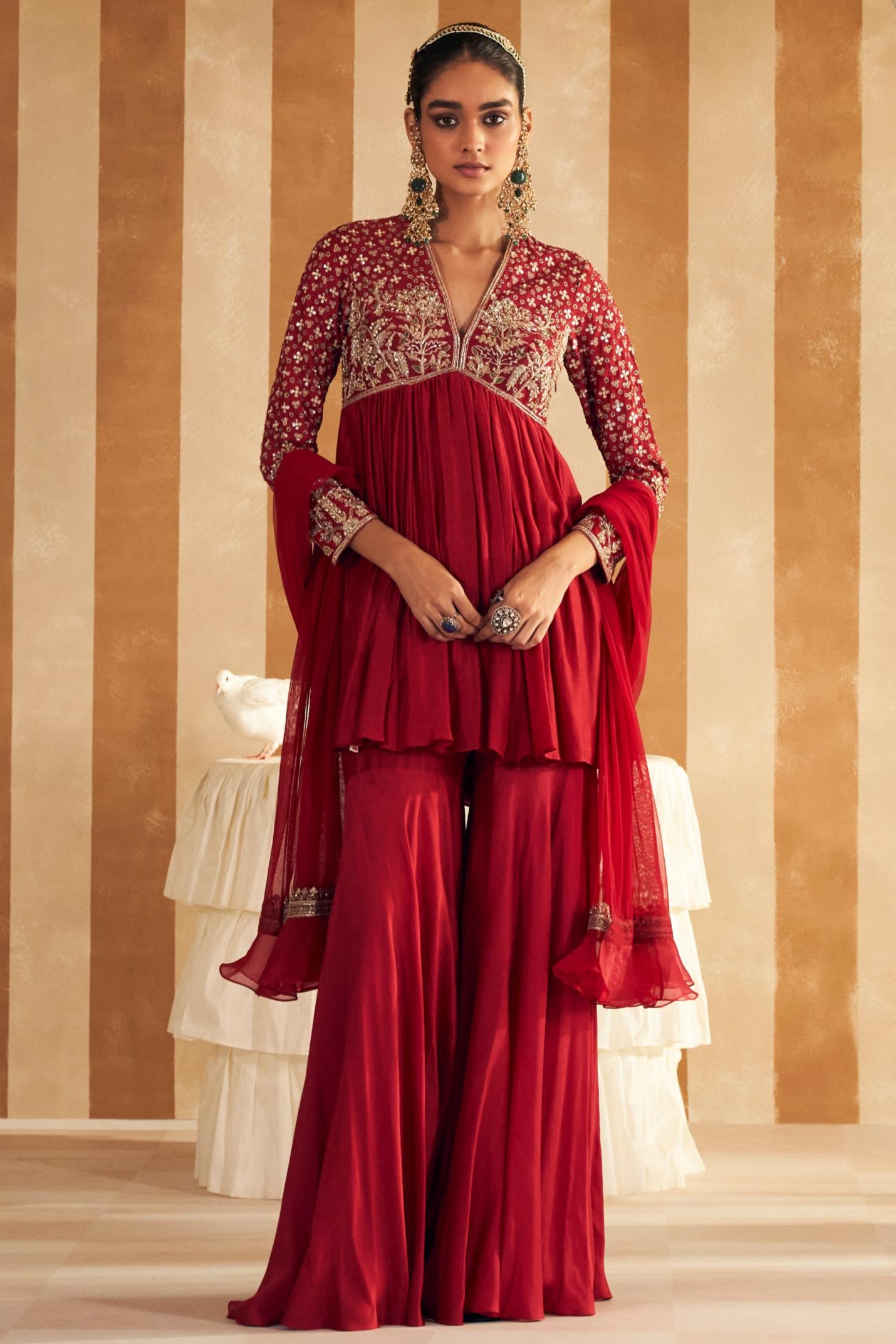 Components: 3 pieces (Short anarkali, gharara, dupatta)