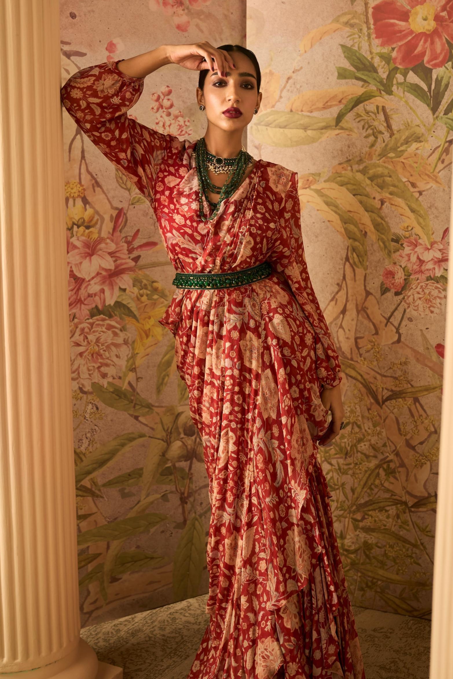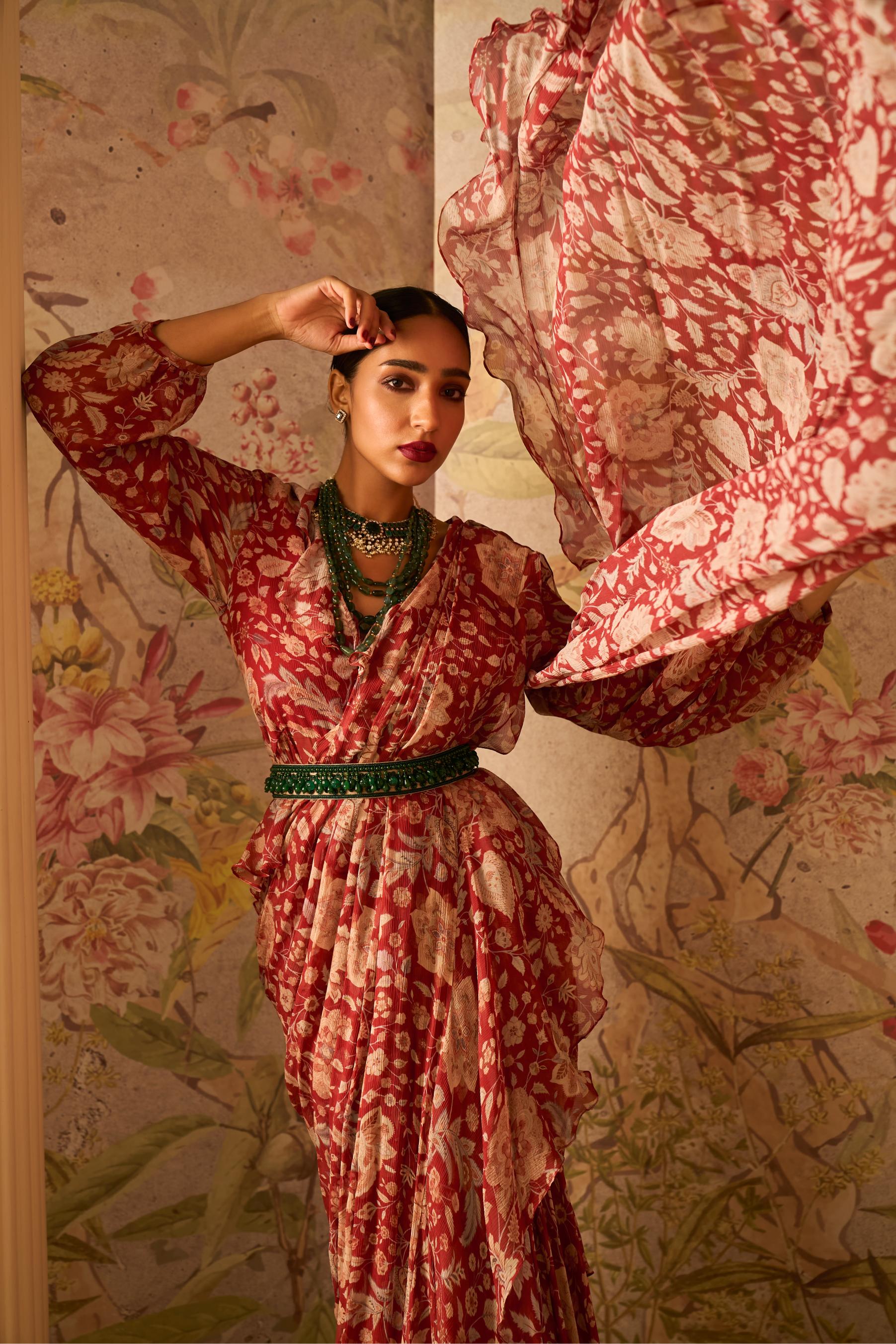 Command elegance and confidence with the Red Regal Icon Saree with Jacket, a majestic ensemble that blends traditional charm with contemporary sophistication. This striking red saree features a rich drape paired with a stylish jacket, creating a bold and regal silhouette perfect for weddings, formal events, and festive occasions. With intricate detailing and a modern touch, the Red Regal Saree with Jacket ensures you make a lasting impression at every celebration.