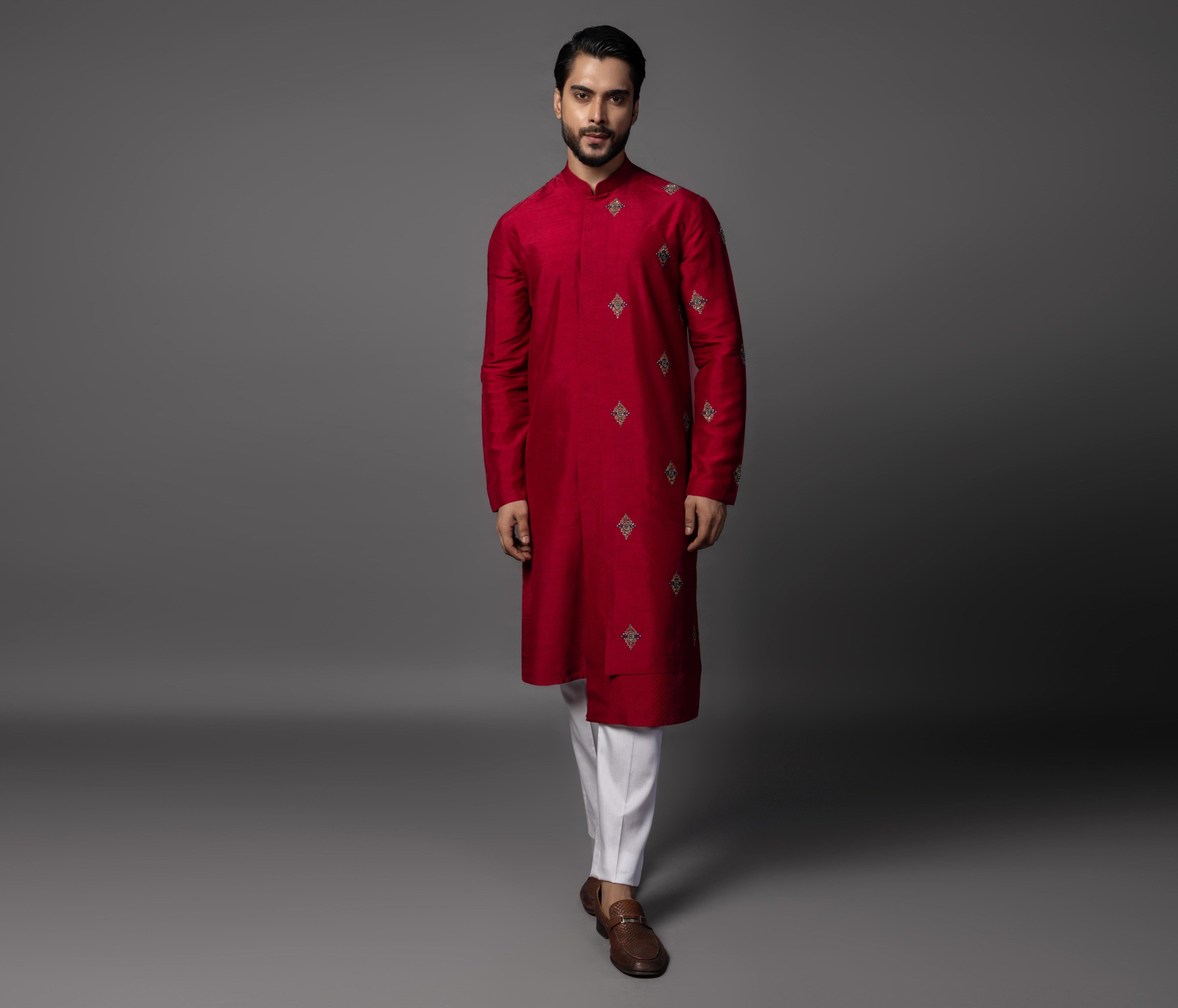 Make a powerful style statement with the Red Vermilion Threads Kurta Set, a captivating ensemble that combines bold color with intricate detailing. The vibrant vermilion red hue radiates confidence, passion, and elegance, making it the perfect choice for weddings, festive events, and special occasions where you want to stand out with grace.