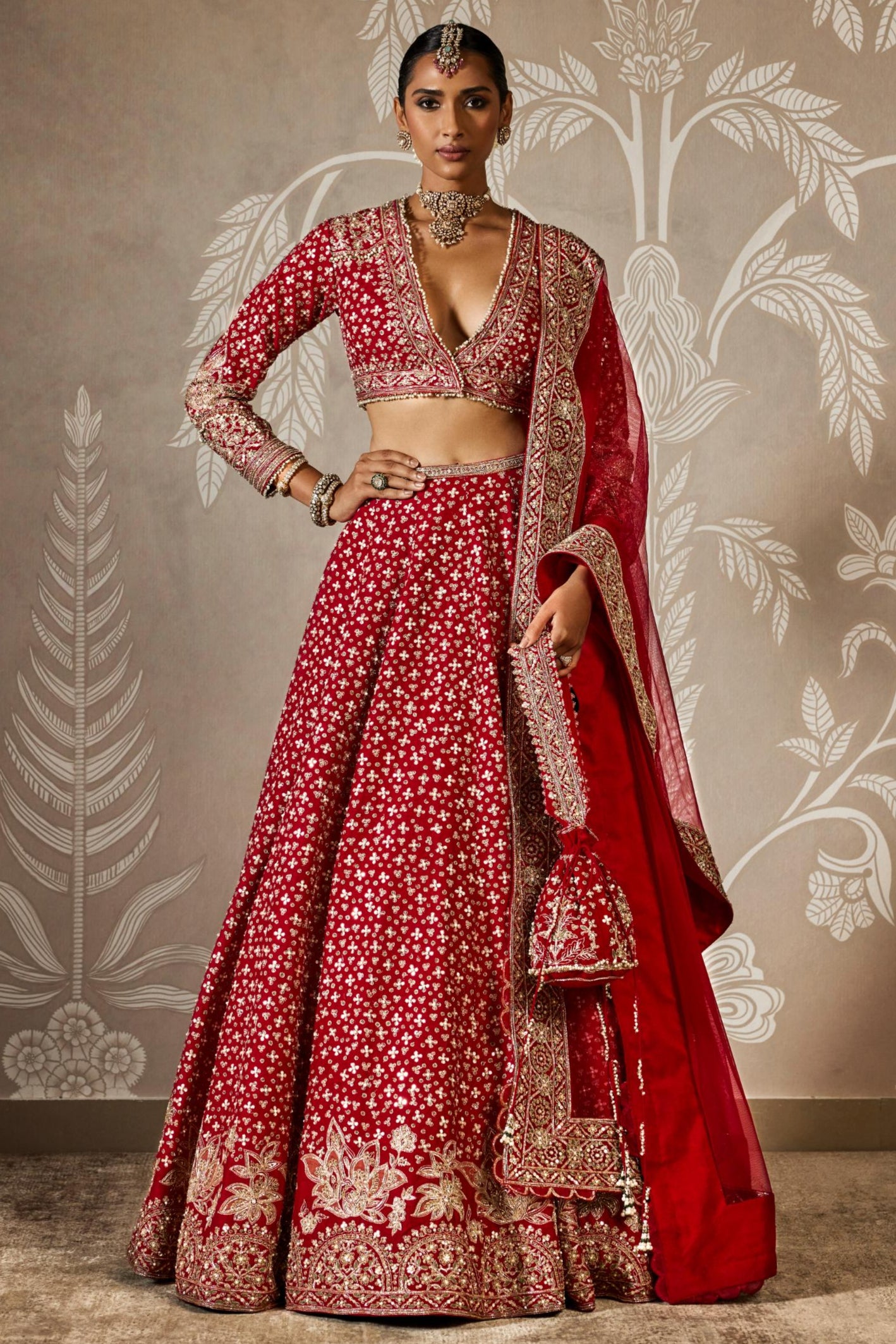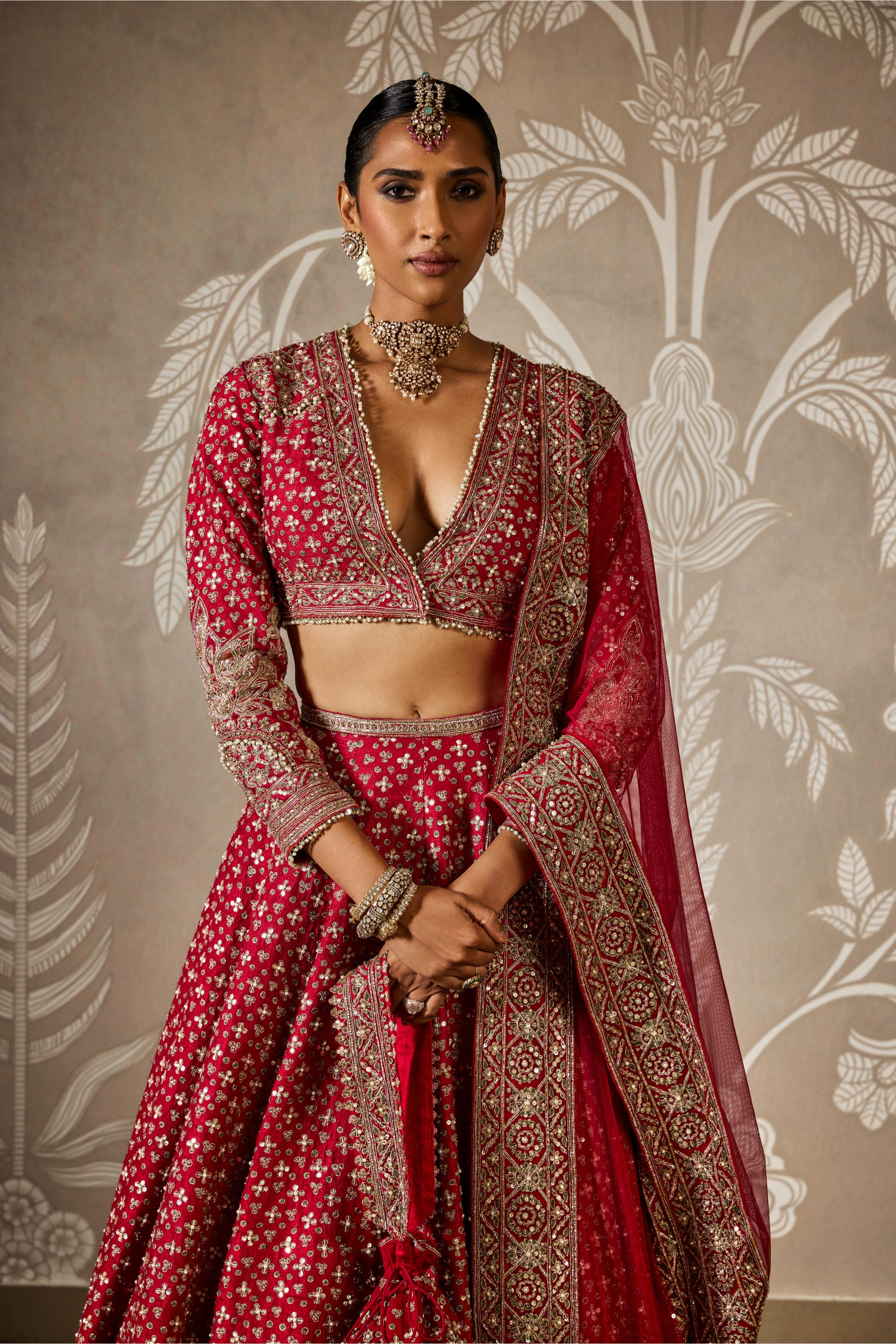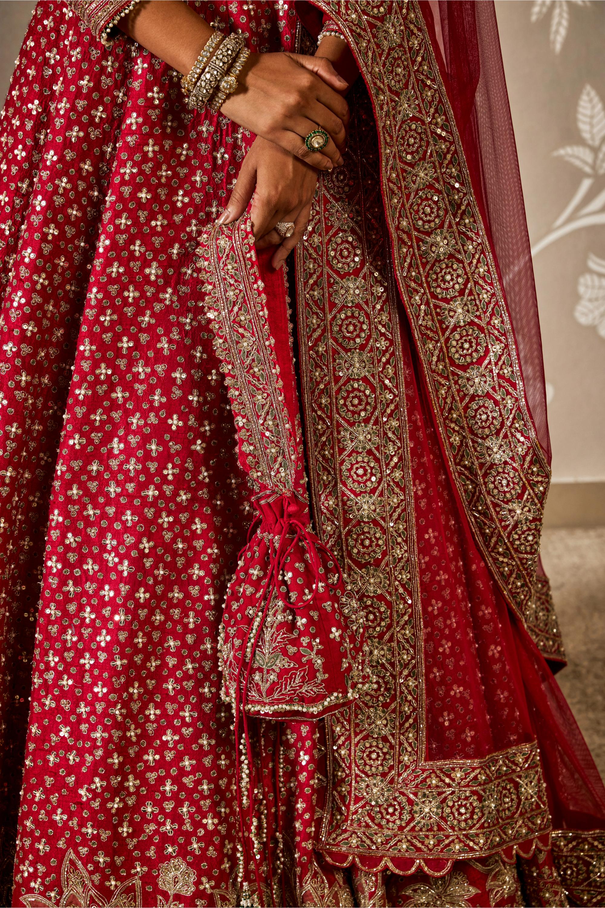 Bold, timeless, and steeped in tradition, the Red Zaraana Zar Bano Lehenga Set is a true celebration of bridal elegance. Crafted in a vivid red hue symbolizing love and prosperity, the lehenga features intricate embroidery, a beautifully structured blouse, and a flowing dupatta. Perfect for weddings and ceremonial occasions, this ensemble is designed for the modern bride who honors heritage while making a powerful statement.