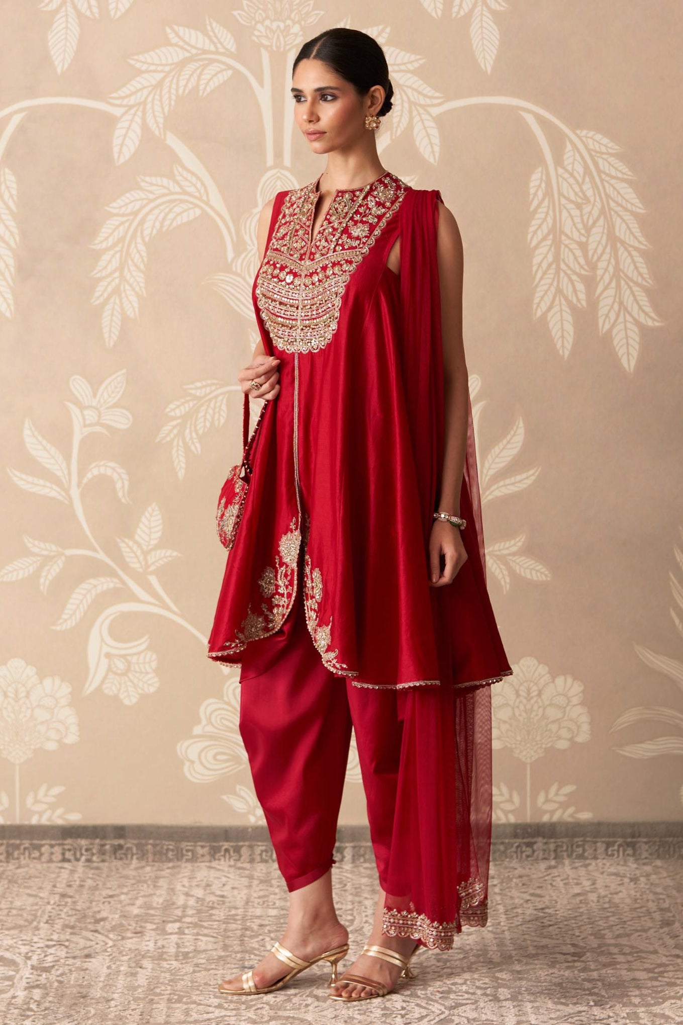 Celebrate in style with the Classic Red red kurta set from Ridhi Mehra. This stunning three-piece ensemble is defined by its vibrant red hue, a color of celebration and prosperity, making this red kurta set a must-have for all major festive events.