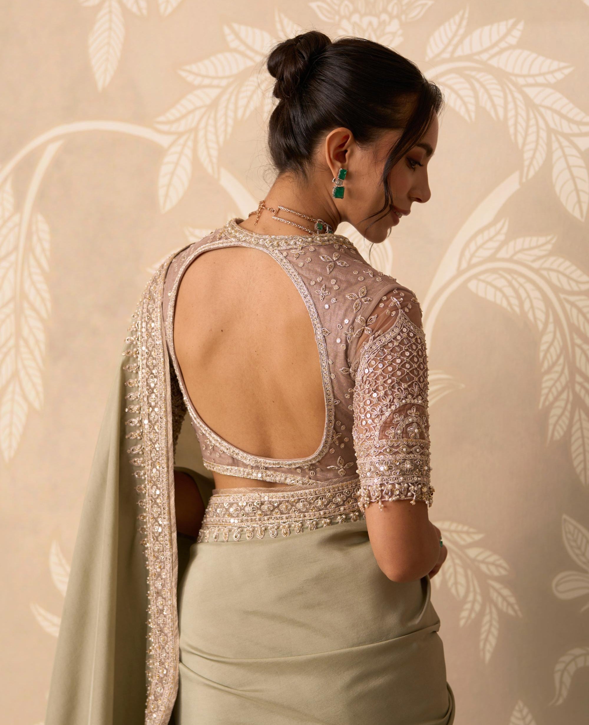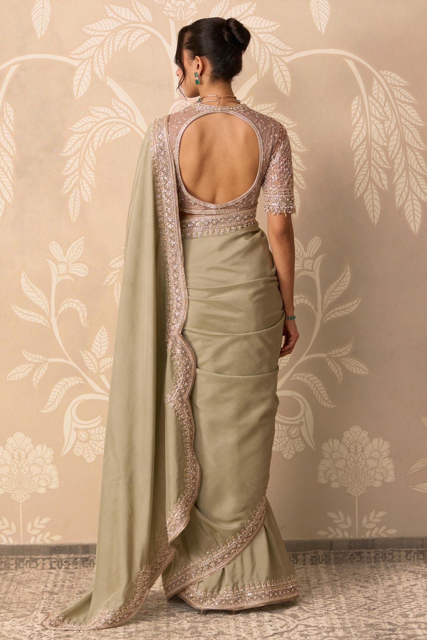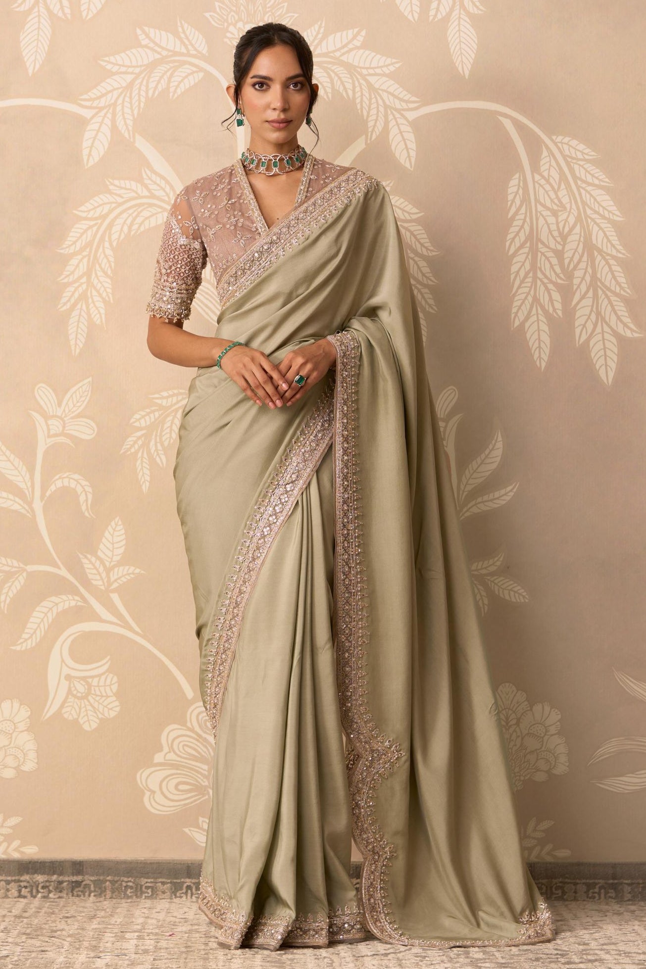Experience the prestige of owning a true designer saree with this elegant green ensemble. This complete look, featuring a perfectly matched blouse and essential crepe petticoat, ensures a flawless foundation and drape. The gorgeous green hue is both sophisticated and versatile, making it an excellent choice for destination weddings, sophisticated brunches, or exclusive festive gatherings. The tailoring reflects Ridhi Mehra's commitment to high fashion and wearability. The inclusion of the petticoat guarantees the fluid movement and beautiful silhouette expected from a premier designer saree. This is the perfect investment piece for the discerning collector who values curated, effortless luxury.