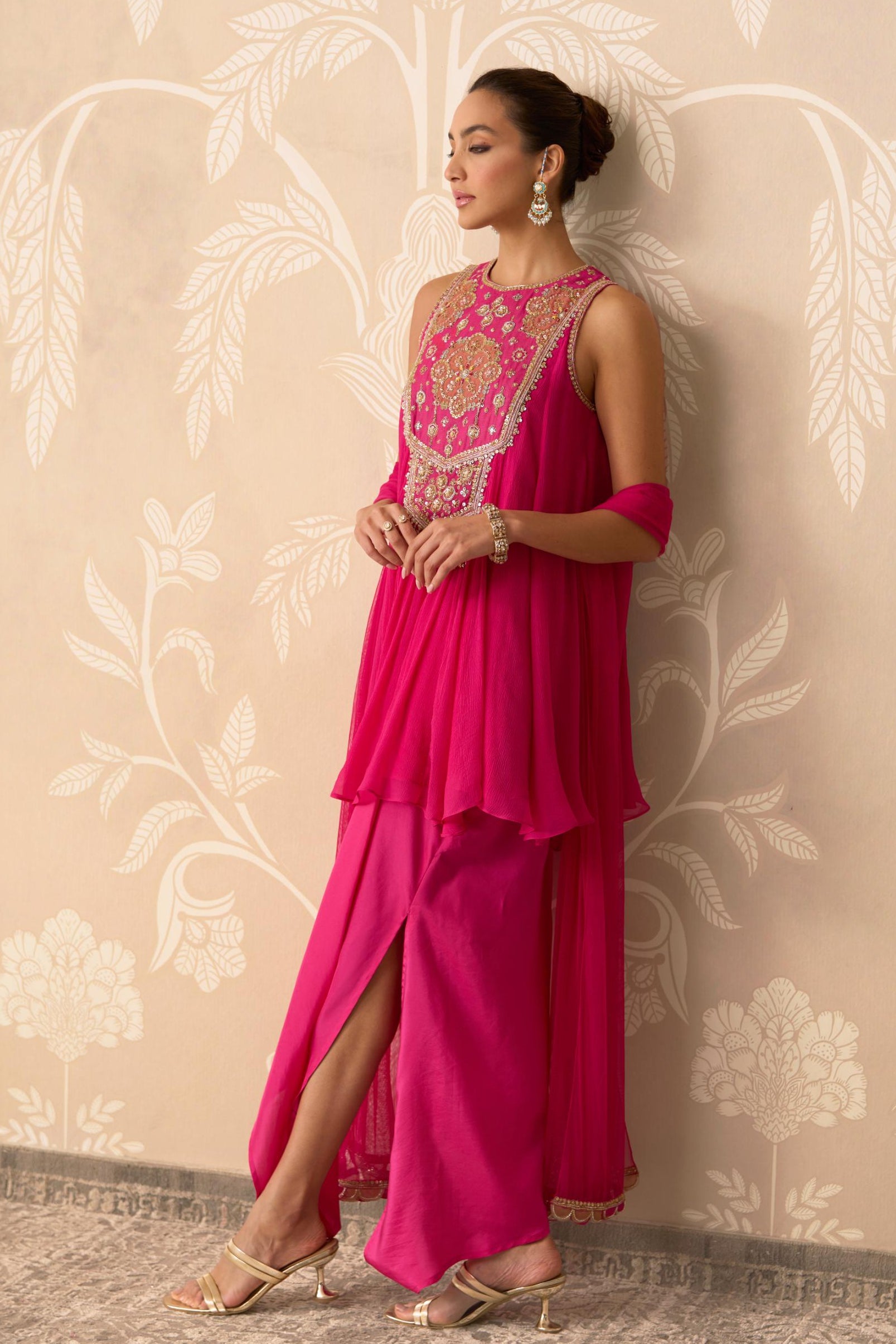 Pink naaz short kurti with draped skirt and dupatta