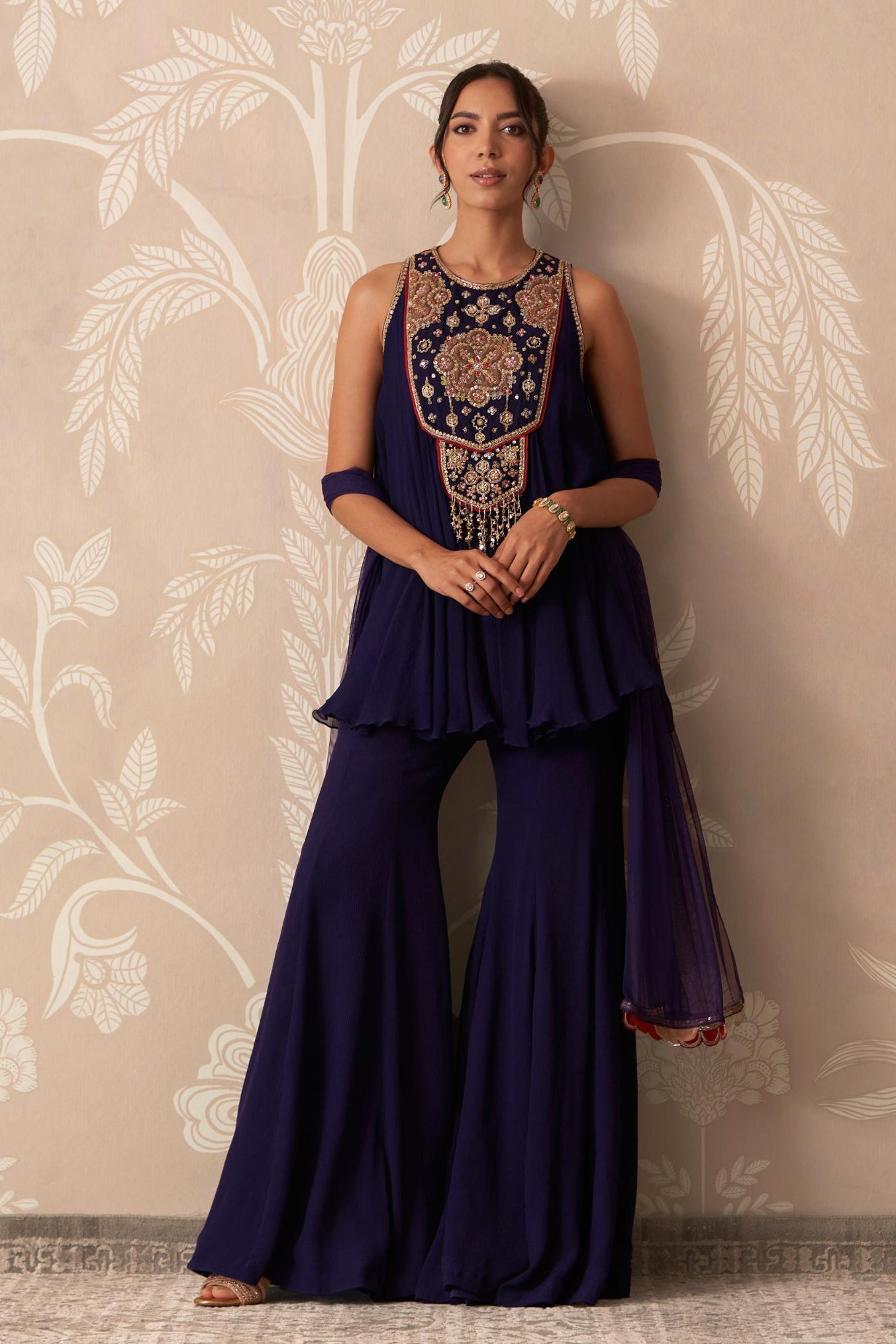 Ridhi Mehra is a New Delhi-based designer renowned for her contemporary interpretations of traditional Indian attire. Her eponymous label seamlessly blends vintage charm with modern aesthetics, incorporating European influences into classic Indian silhouettes. Established in 2012, the brand emphasizes clean lines, intricate embroidery, and refined detailing. Each piece reflects a commitment to craftsmanship and sophistication, catering to the modern woman who values both tradition and innovation.