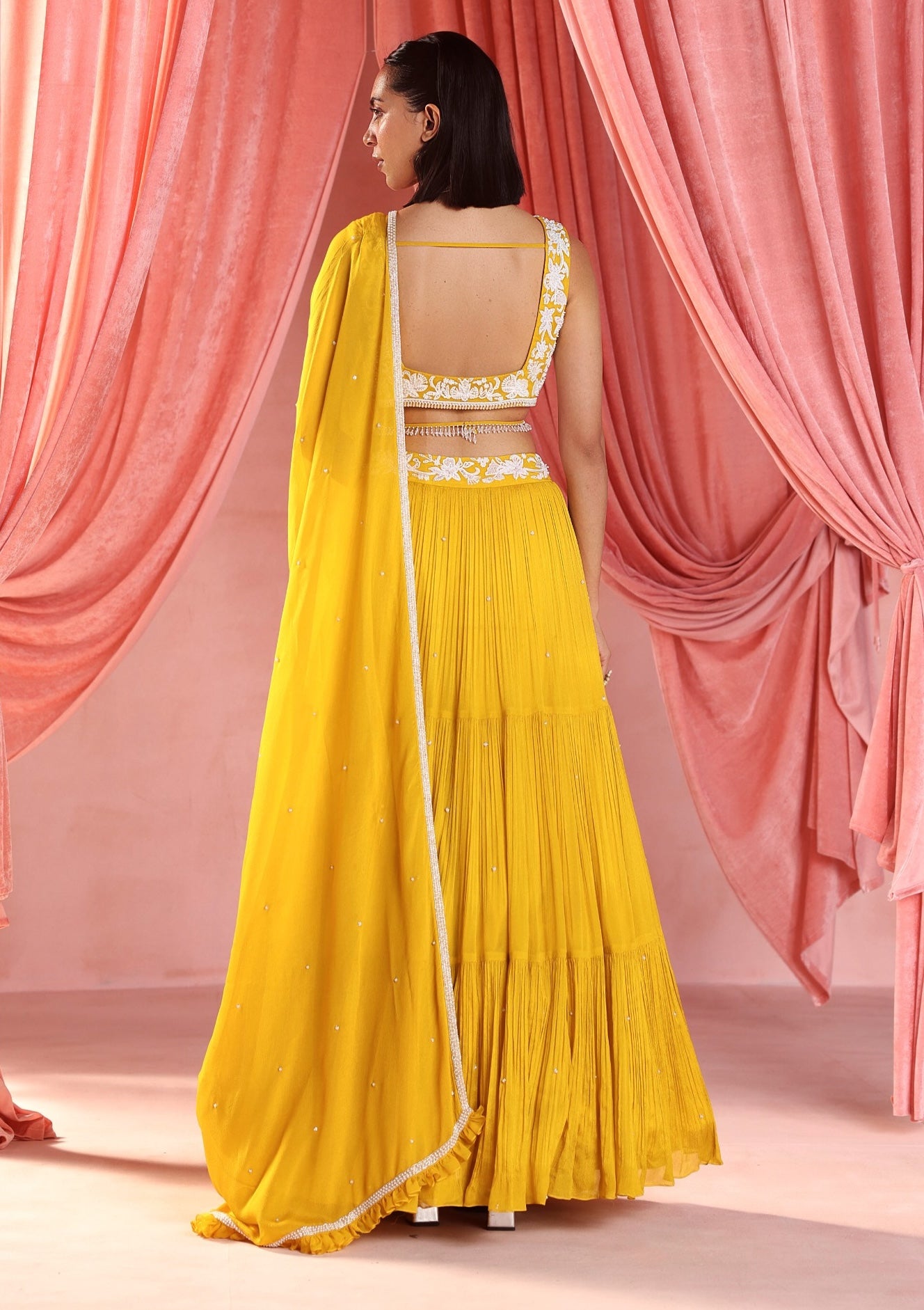 Fabric: Choli- georgette, skirt & dupatta- chiffon, satin lining