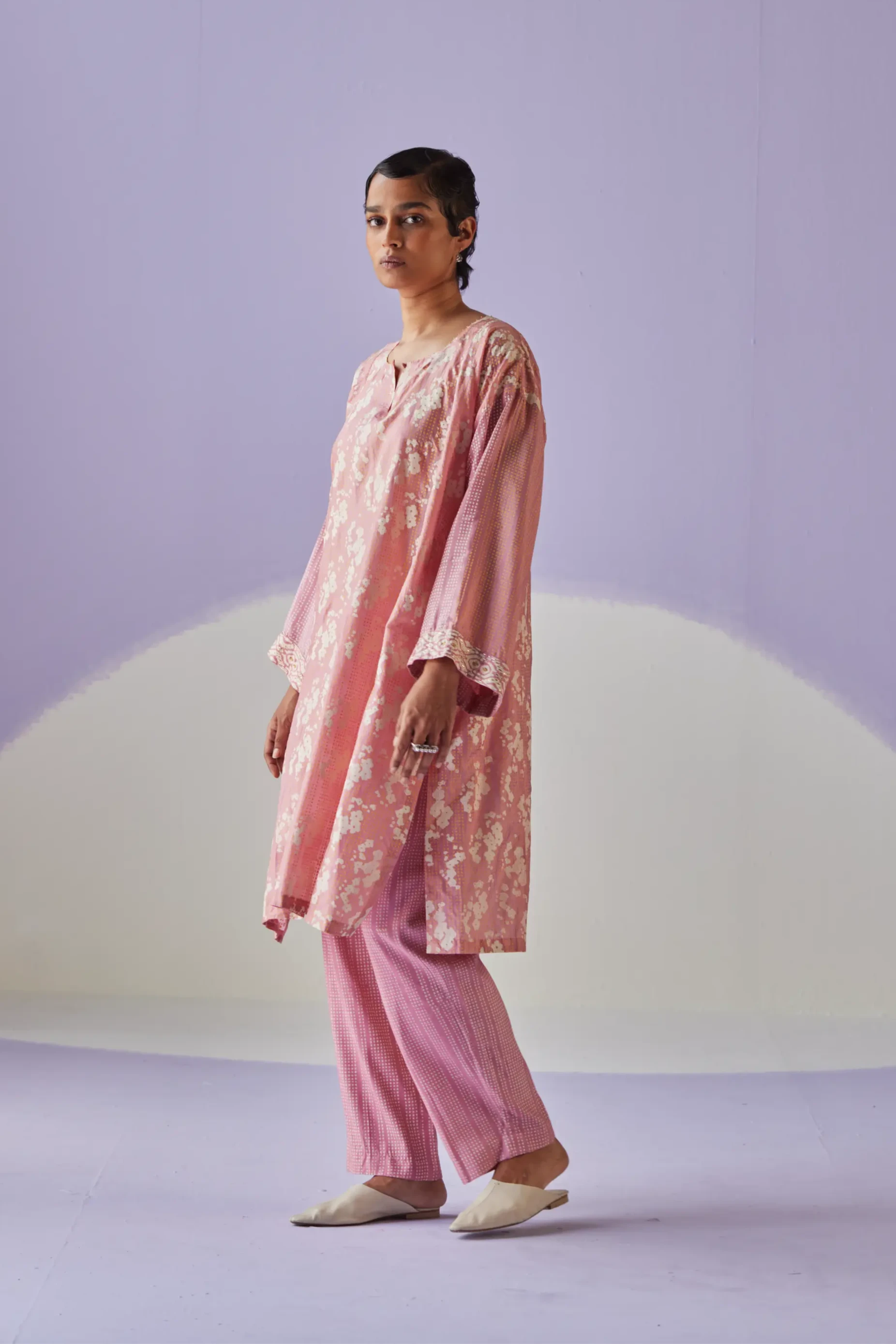Stay stylish and comfortable with this Rose pink antifit kurta & trouser set, perfect for those who appreciate a relaxed, contemporary look. The antifit kurta features a loose, flowy silhouette that combines laid-back comfort with modern elegance. Paired with tailored trousers in a matching rose pink shade, this set is both chic and easy to wear. The soft rose hue adds a feminine touch, making it an ideal choice for casual outings, relaxed gatherings, or semi-formal occasions where comfort meets style.