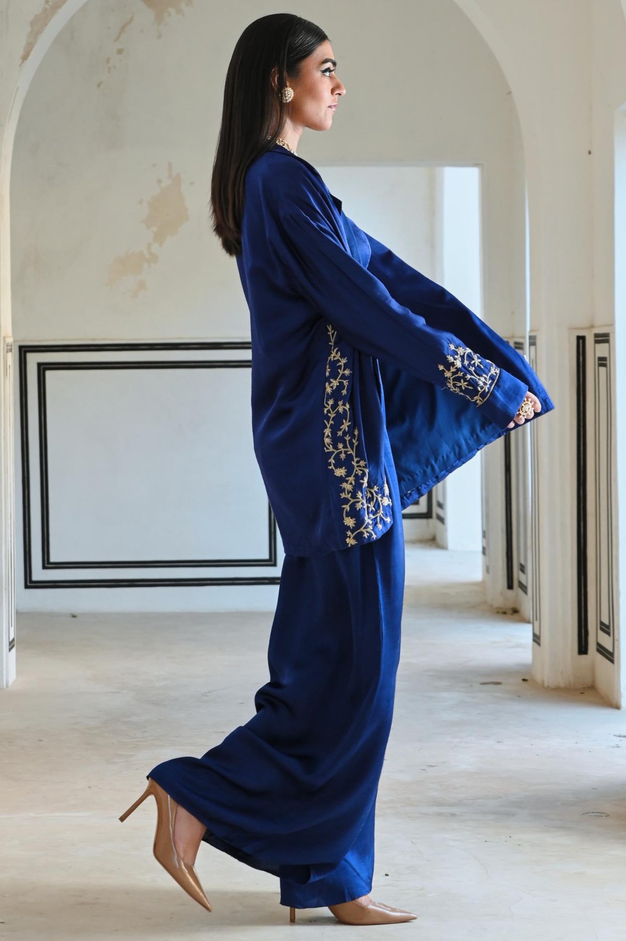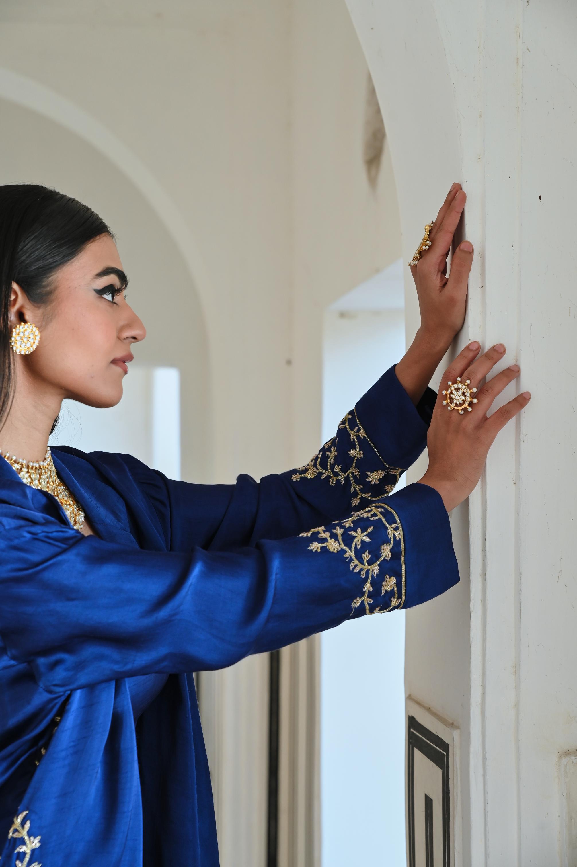 Make a powerful style statement in the Royal Blue Rahi Blazer with Bralet and Palazzo. Featuring a chic fusion of structure and flow, this ensemble is perfect for festive celebrations, evening soirees, and special occasions.