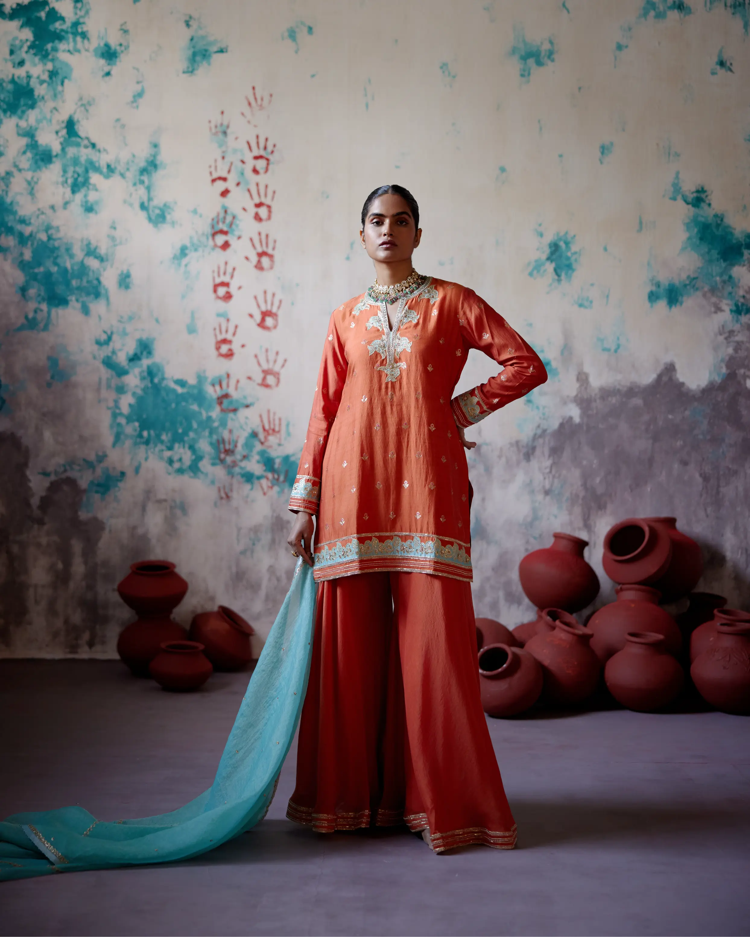 Due to the artisanal craftsmanship of our outfits, minor differences in color, embroidery, patterns, or fabric are expected and enhance their unique appeal. Actual colors may vary slightly due to screen settings and lighting.