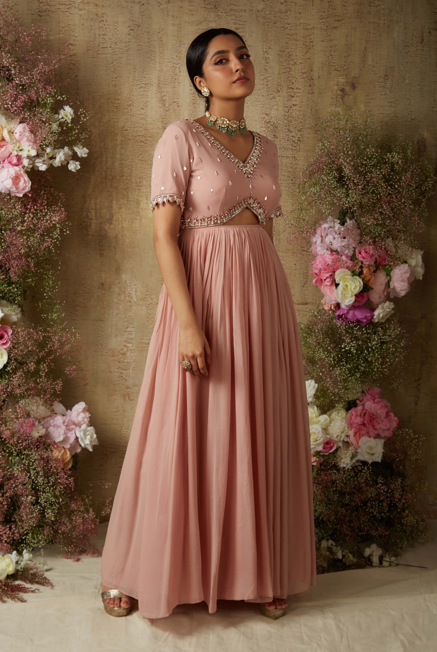 Embrace sophistication with our enchanting blush pink front cut-out anarkali, elegantly adorned with intricate back detailing. This exquisite ensemble merges classic charm with contemporary allure, showcasing a graceful silhouette and delicate craftsmanship. The blush pink hue exudes a soft and romantic vibe, perfect for special occasions and celebrations. The front cut-out design adds a modern twist, while the intricate back detailing enhances the garment's graceful appeal. Ideal for those who appreciate refined elegance and understated beauty, this anarkali promises to make a memorable statement with its timeless style and impeccable design. Flaunt your elegance with confidence in this captivating piece that captures attention effortlessly.