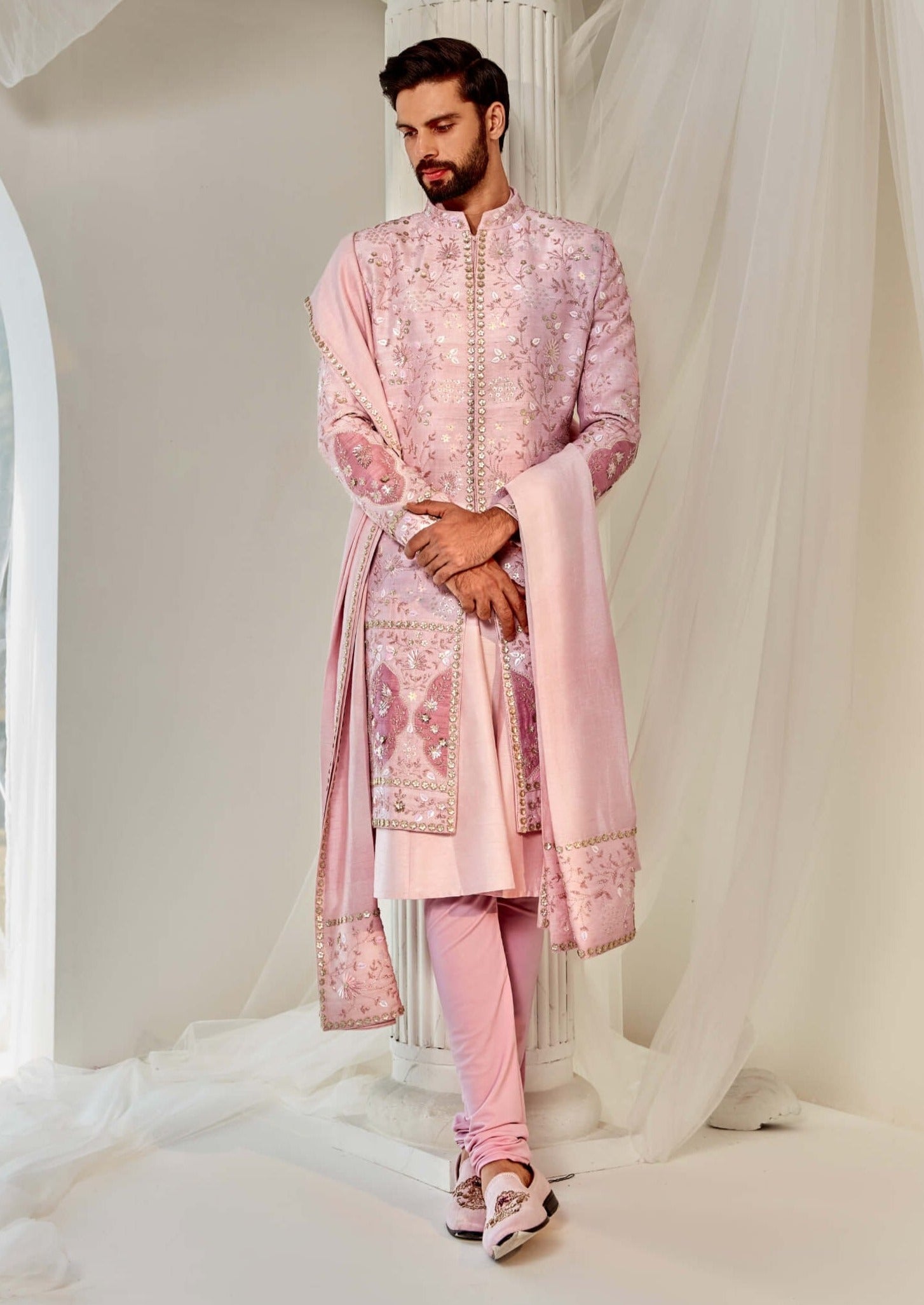 Components: 4 pieces (Sherwani, stole, kurta and churidaar)