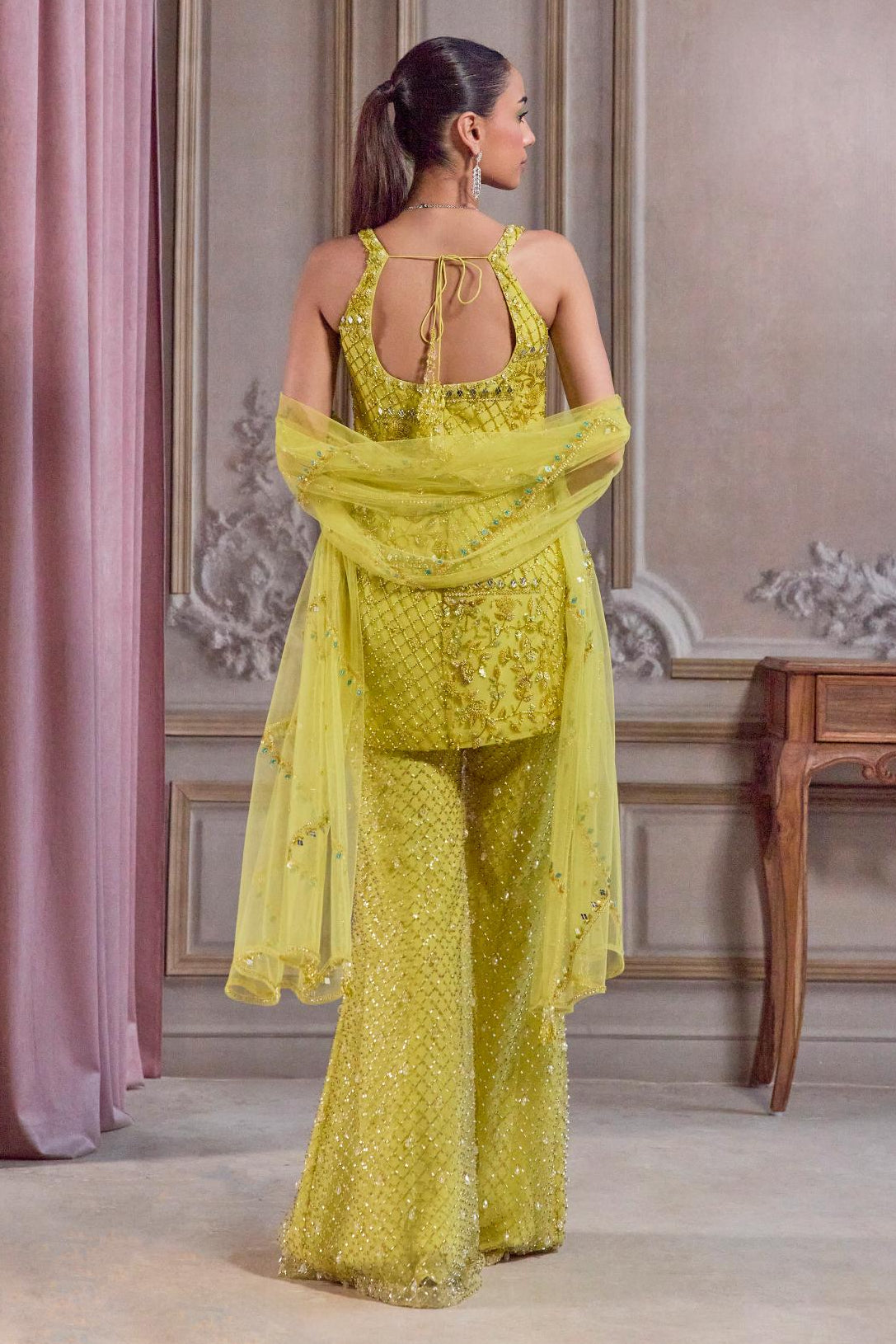 The Green Short Kurta Set with Pant by Sanya Gulati redefines festive elegance through contemporary simplicity. Crafted in a lightweight silhouette, this ensemble blends refined embroidery with a modern short-kurta design that ensures both comfort and style. Ideal for daytime celebrations, family gatherings, and pre-wedding functions, it brings together effortless sophistication and cultural charm. The minimal detailing and tailored fit make it versatile for those who appreciate understated luxury—perfect for styling with statement earrings or classic juttis to complete a polished festive look.