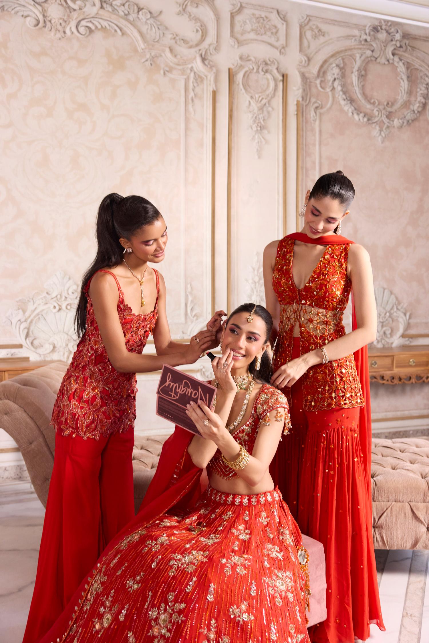 Sanya Gulati’s designs stand out with their playful elegance and a focus on versatile luxury. Her collections feature a vibrant mix of rich fabrics, intricate detailing, and contemporary silhouettes, from flowy lehengas to structured blouses. The designs are infused with a modern edge while staying deeply rooted in traditional Indian aesthetics, offering pieces that are both bold and delicate, suitable for a range of occasions. The label captures a youthful spirit while embracing a sophisticated, timeless appeal.