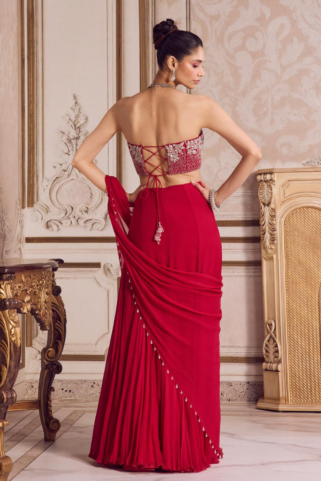 The chiffon saree set merges delicate fabric and tailored structure: a chiffon drape paired with a fitted corset bodice. This Pink Chiffon chiffon saree set is perfect for modern ceremonial evenings and contemporary wedding receptions. The chiffon saree set offers graceful movement while the corset establishes clean lines, making this chiffon saree set a great choice when you want a balance of romance and the precision of couture-inspired tailoring.