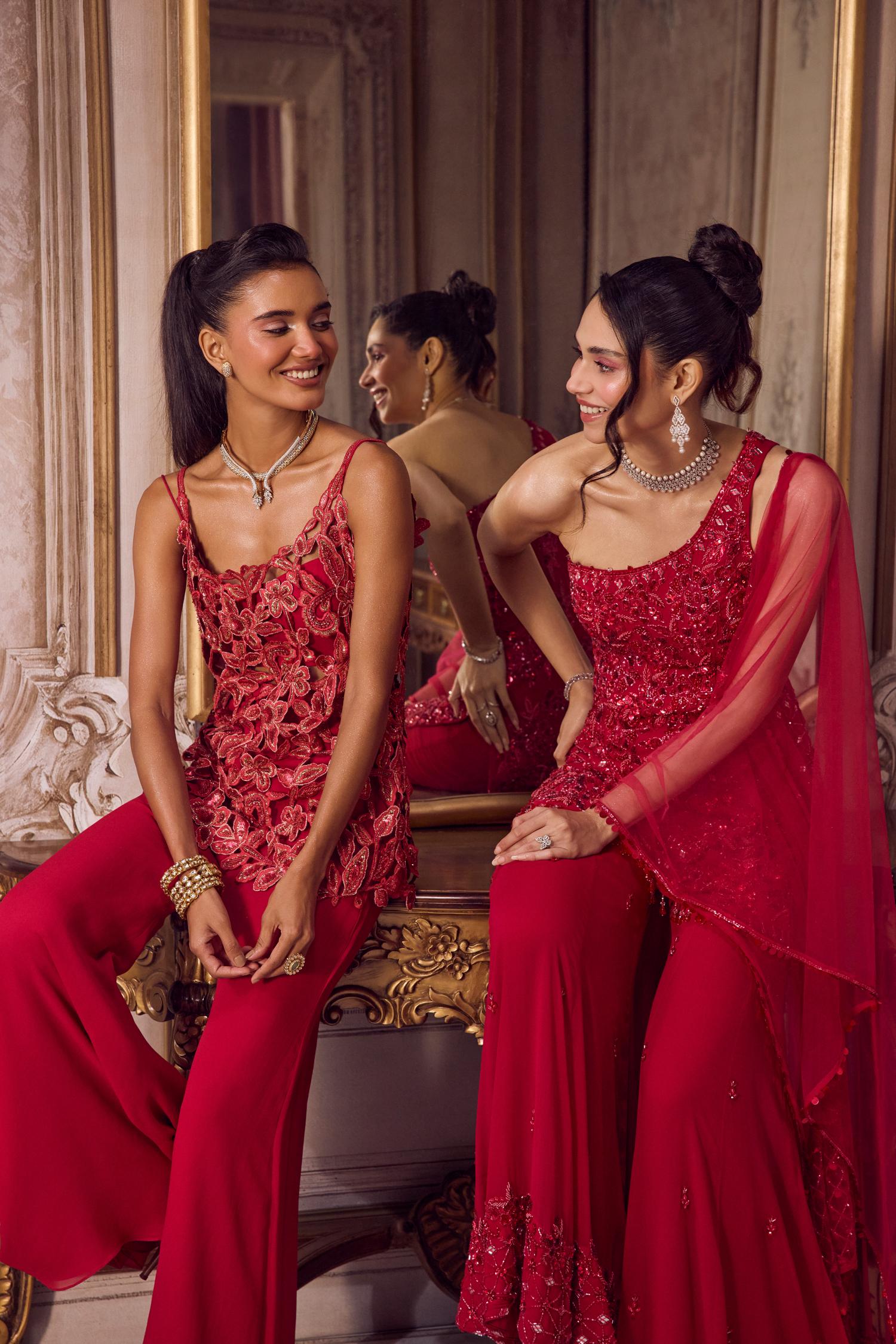 Sanya Gulati’s designs stand out with their playful elegance and a focus on versatile luxury. Her collections feature a vibrant mix of rich fabrics, intricate detailing, and contemporary silhouettes, from flowy lehengas to structured blouses. The designs are infused with a modern edge while staying deeply rooted in traditional Indian aesthetics, offering pieces that are both bold and delicate, suitable for a range of occasions. The label captures a youthful spirit while embracing a sophisticated, timeless appeal.