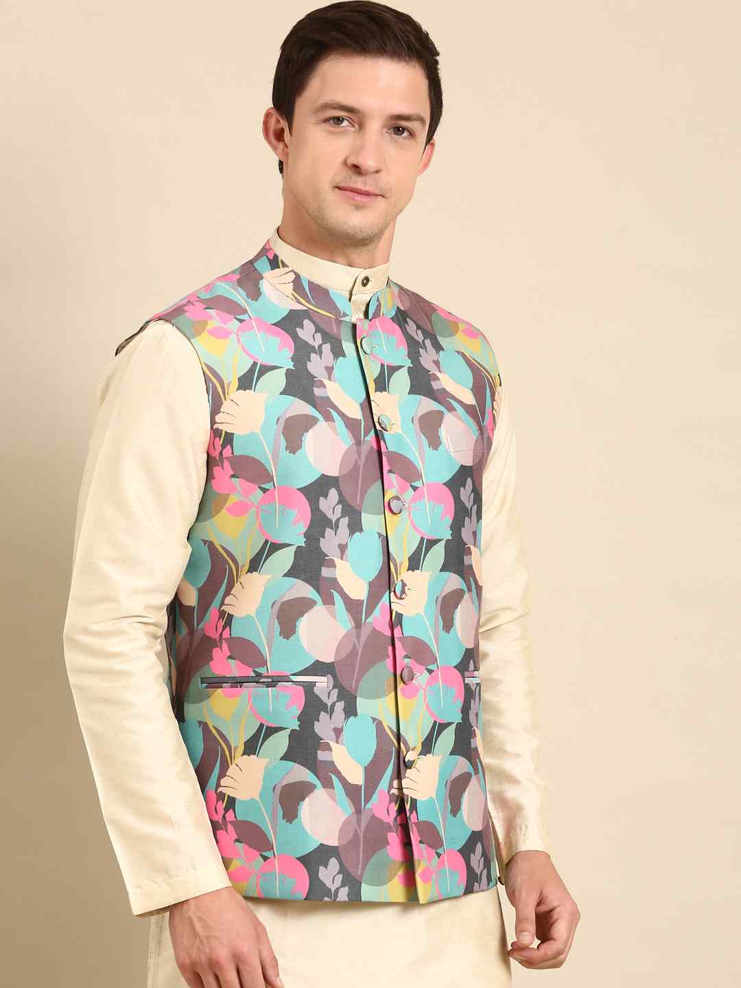 Introducing our stunning Digital Print Waistcoat Jacket, a statement piece available in three striking colors: Sapphire Blue, Taffy Pink, and Grey Muslin. Expertly designed with a contemporary digital print, this waistcoat combines modern aesthetics with classic tailoring. The vibrant hues and intricate patterns offer a unique touch, while the versatile design ensures it can be dressed up or down for any occasion. Perfect for adding a splash of color and sophistication to your ensemble, this jacket is a must-have for a fashion-forward wardrobe.