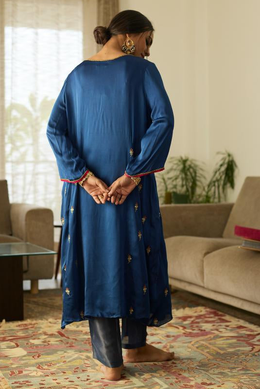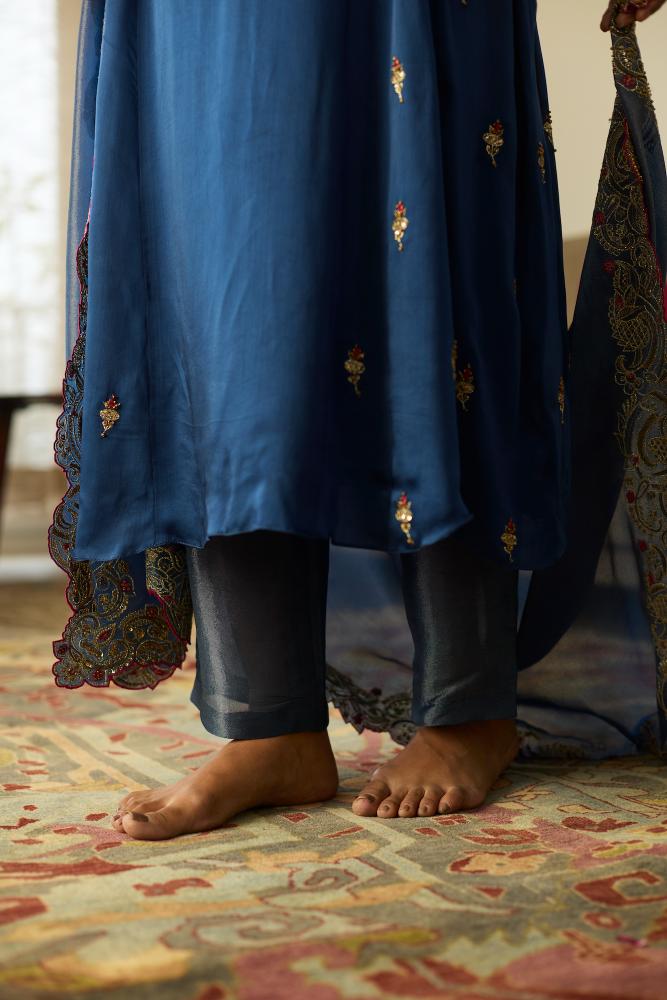 The Blue Embroidered Suit by Sarang Kaur is a refined expression of traditional craftsmanship and contemporary ease. Its soothing blue palette evokes a sense of serenity, while the intricate hand embroidery adds depth, luxury, and artisanal charm. Thoughtfully tailored for a flattering fall and effortless movement, this ensemble transitions beautifully from daytime festivities to evening celebrations. Whether you’re attending a festive gathering, a semi-formal reception, or a cultural event, this outfit promises elevated elegance without compromising comfort. Style it with statement earrings and embellished footwear for a dressed-up look, or keep it minimal for an understated yet graceful appearance. Celebrate timeless beauty with a piece designed to remain a wardrobe favourite season after season.