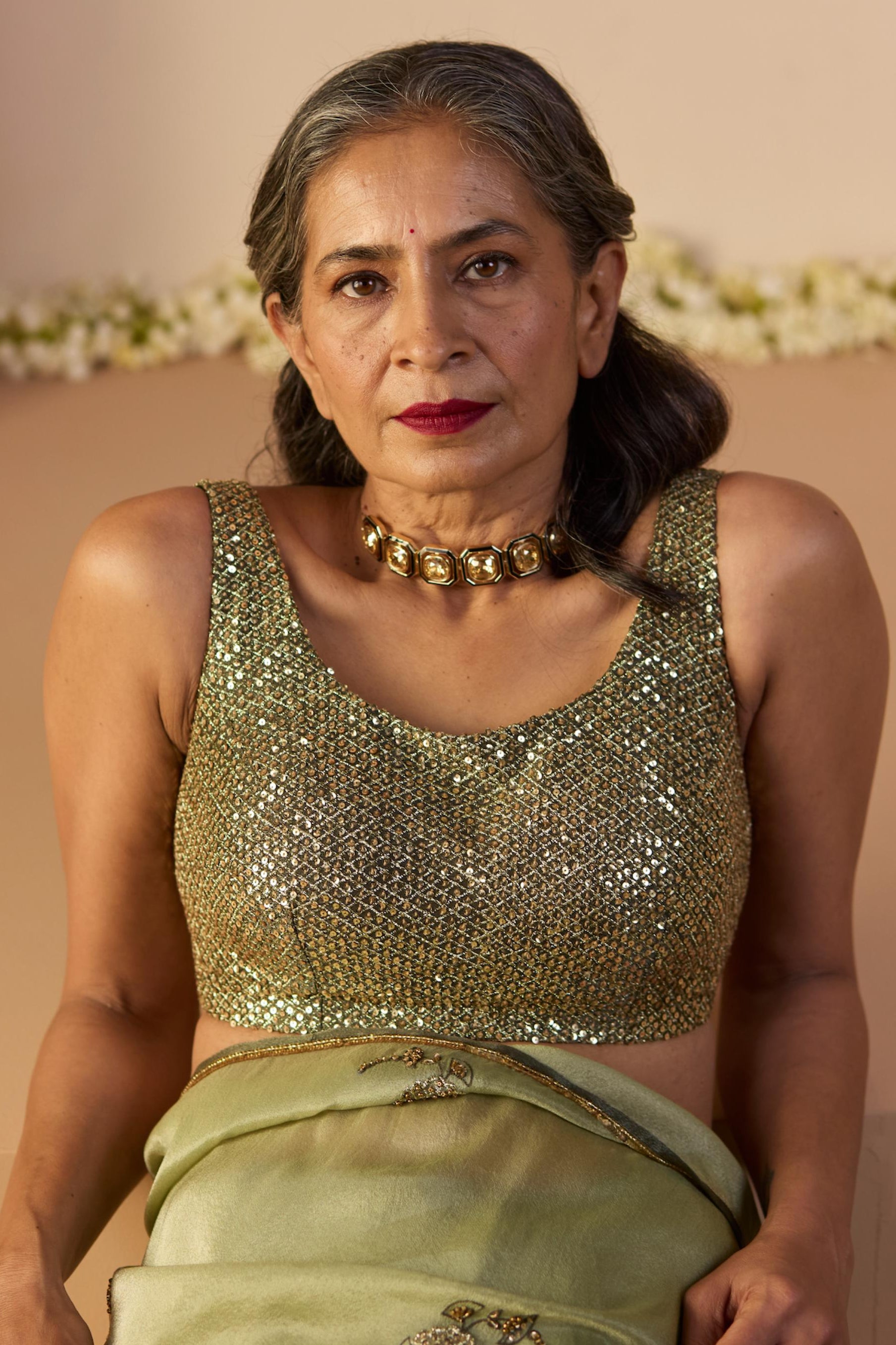 Fabric: Saree - tissue silk; blouse - tissue silk