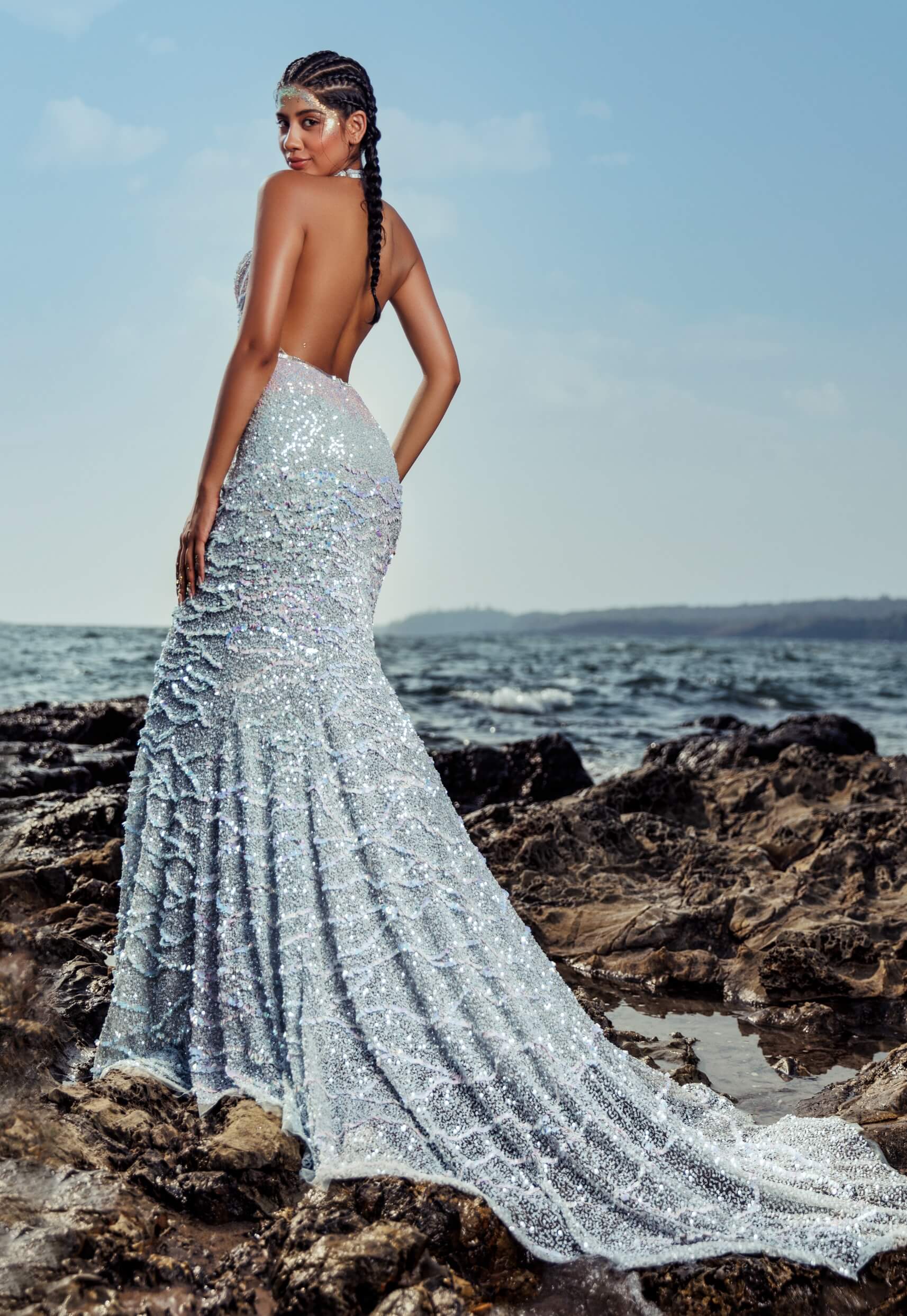 Experience unparalleled elegance with this mesmerizing halter-neck gown, crafted with exquisite attention to detail. The bodice features intricate, hand-embroidered wave patterns on luxurious Italian tulle, creating a sophisticated and graceful look. The gown’s perfect blend of pink and blue hues enhances your presence, making it an ideal choice for any cocktail party. Embrace timeless style and make a stunning impression wherever you go.