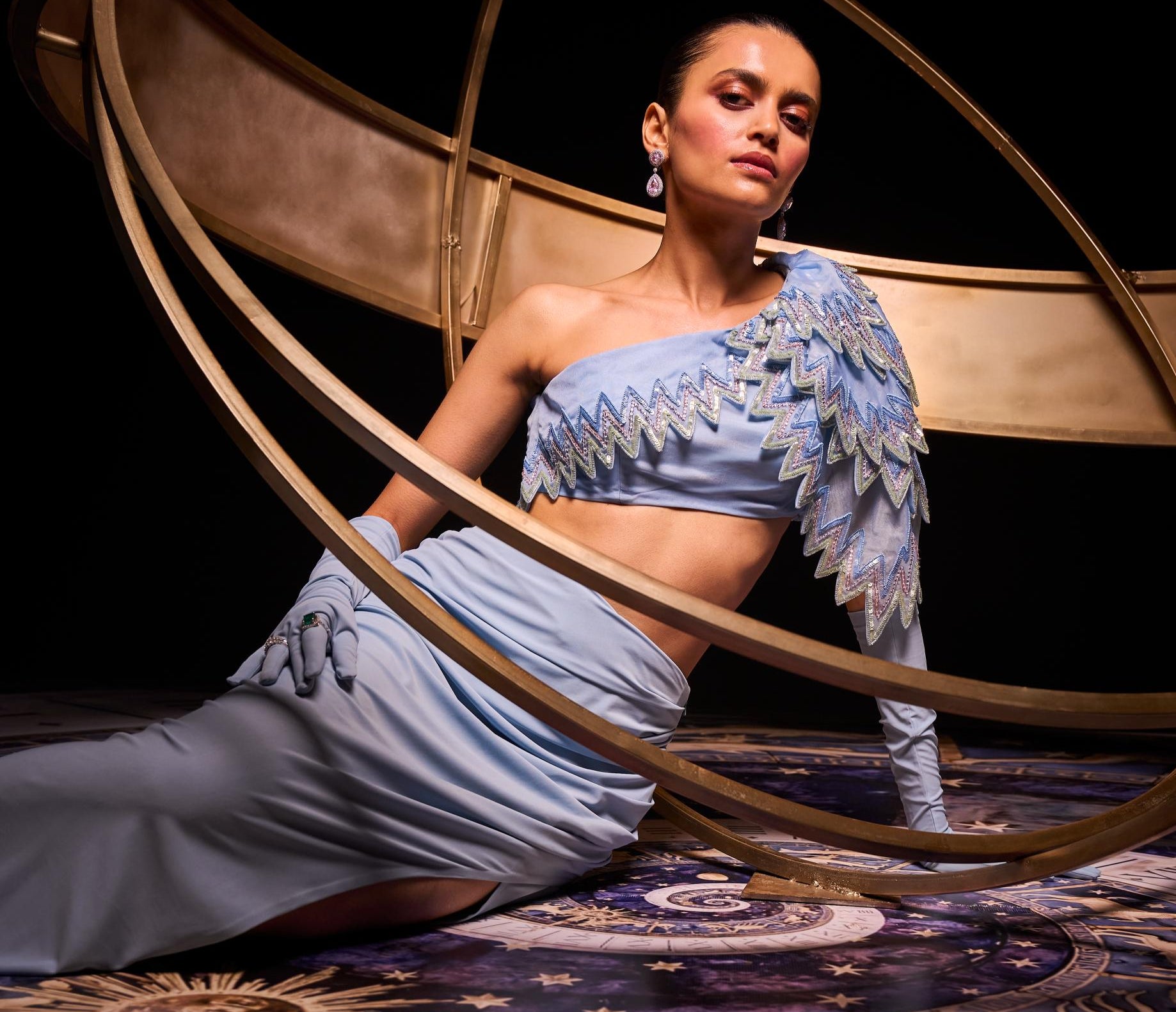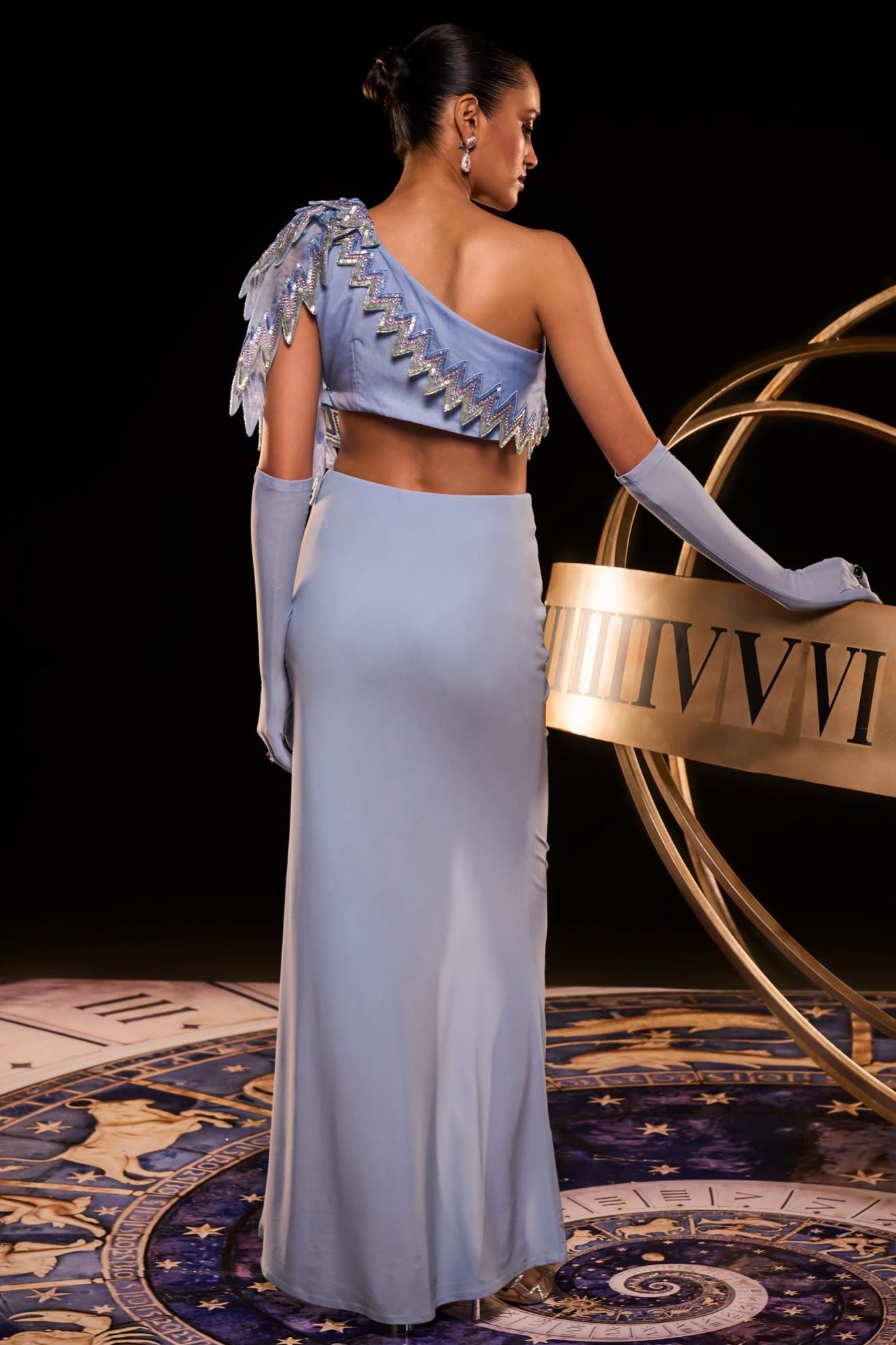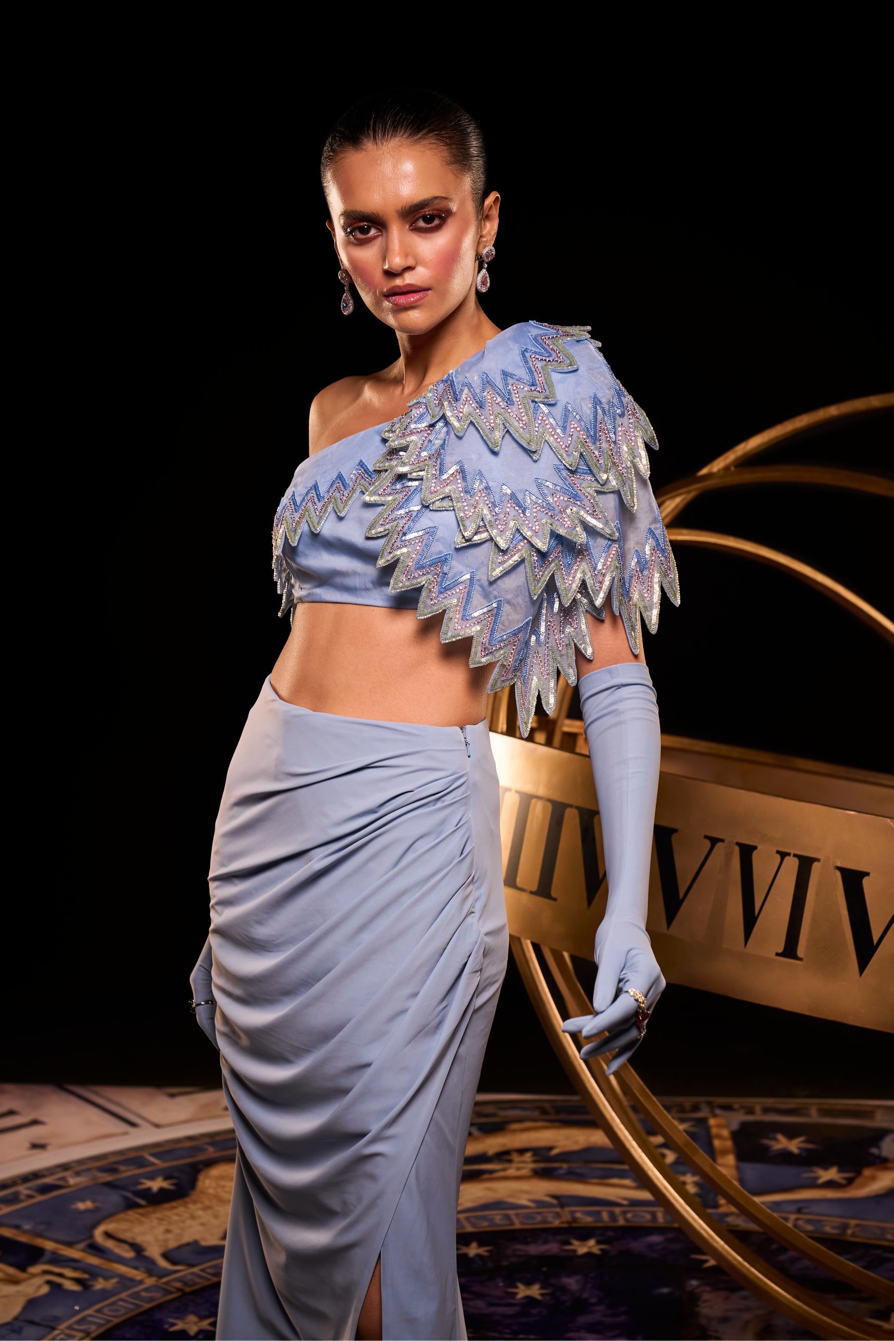 The Serenity Blue Constellation Co-Ord Set is the perfect blend of celestial inspiration and effortless chic. This set features a soft serenity blue hue inspired by the calm beauty of the night sky adorned with constellation-like embellishments that shimmer with every movement. The matching top and pants combine to create a sophisticated yet relaxed look making it ideal for a variety of occasions Ð from casual outings to evening events.