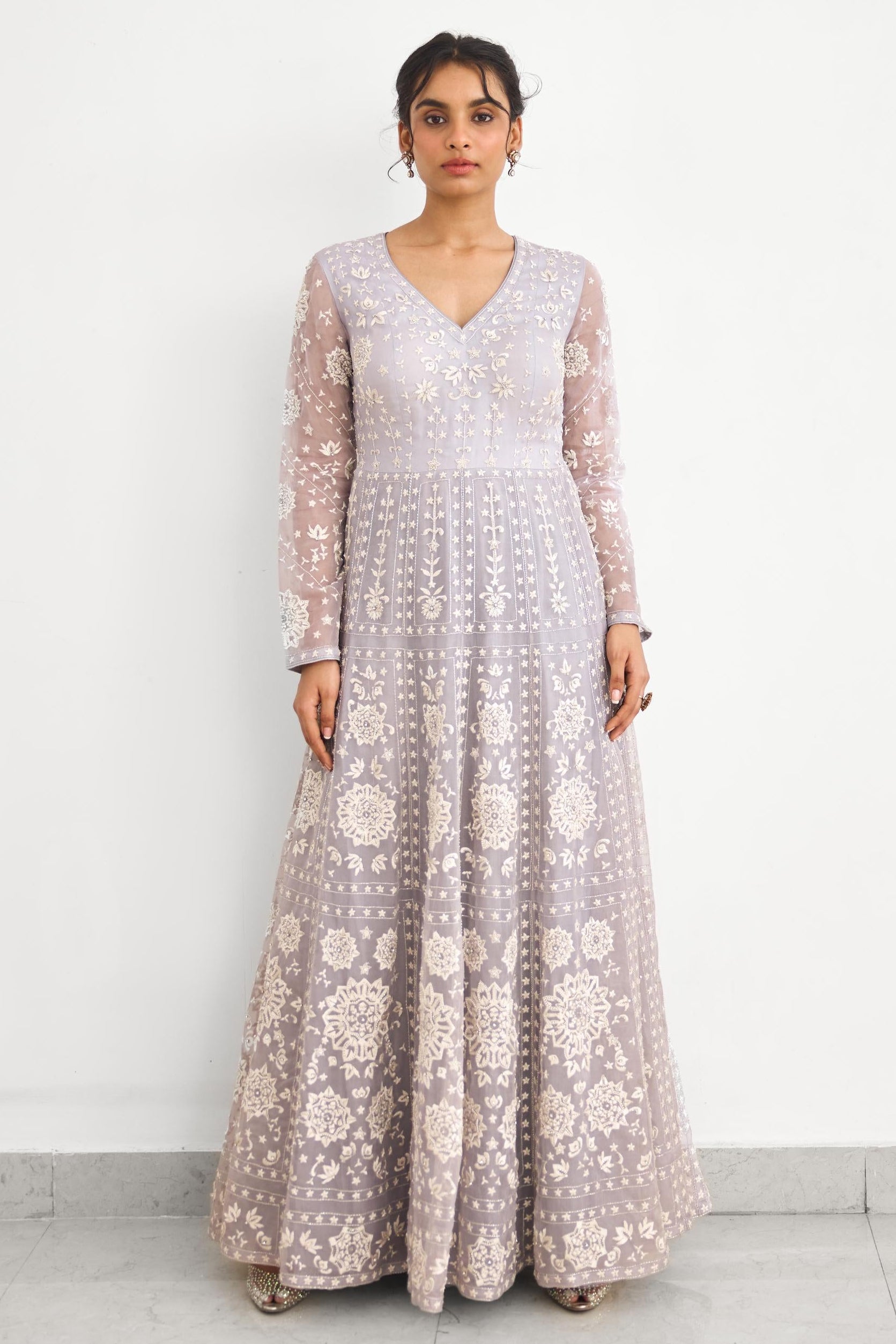 The Azure Air Rooh Rang gown is curated for refined evening celebrations and elegant occasions. With a flowing silhouette and understated design, it offers timeless sophistication for modern festive dressing.