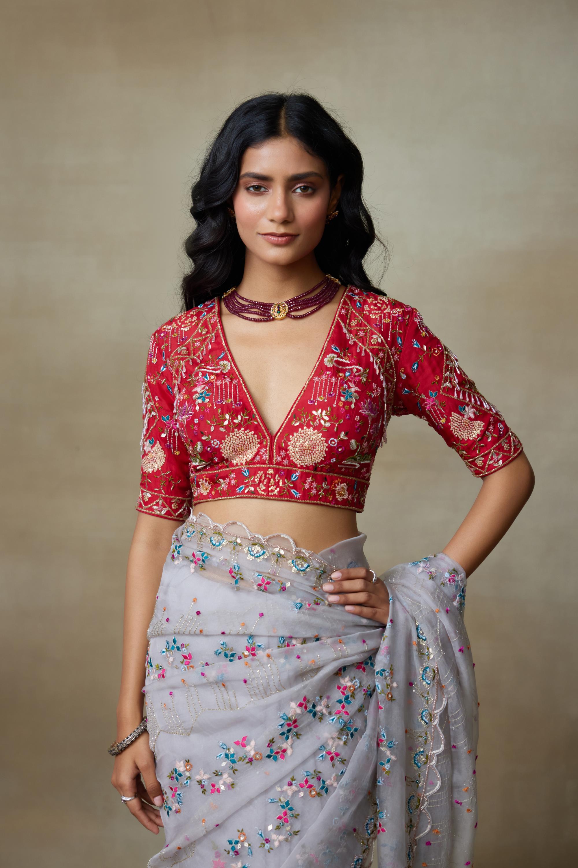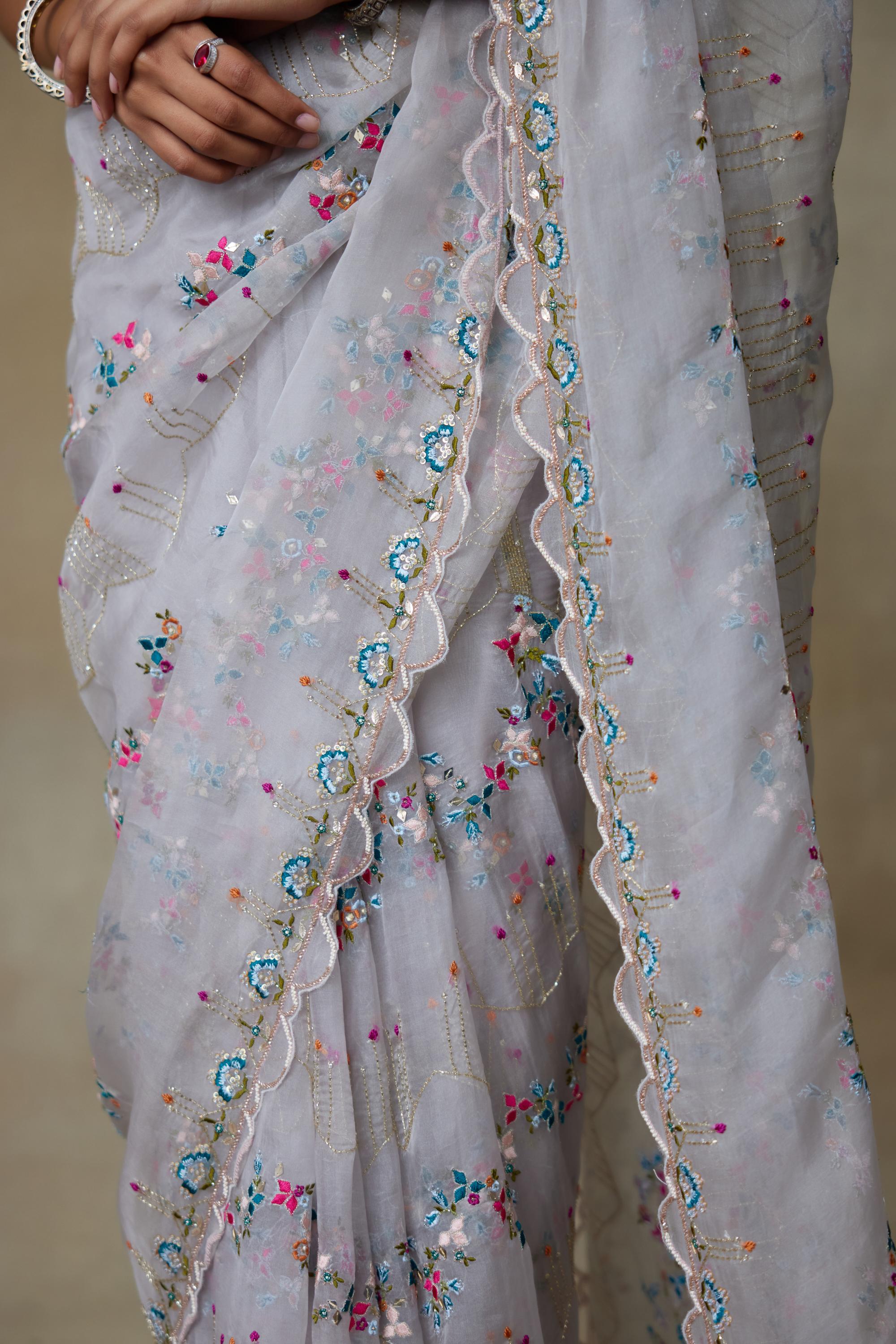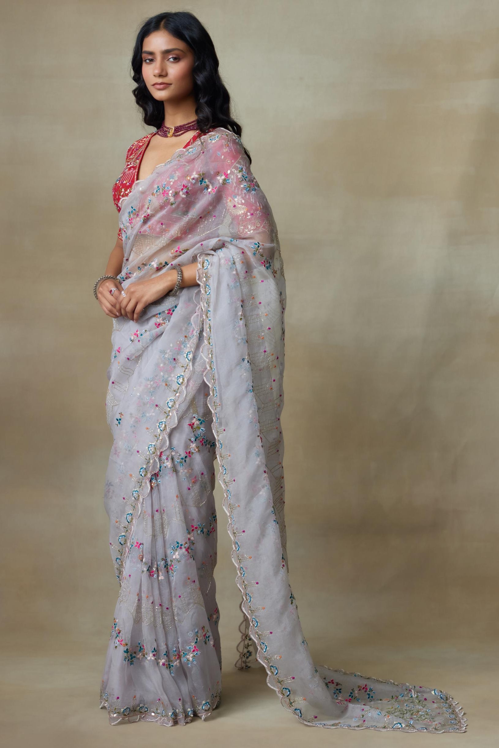 The Gray Albatross saree set by Shasha Gaba is designed for modern wedding receptions and formal festivities. This saree set showcases a refined gray palette that enhances understated elegance. Crafted with attention to silhouette, the saree set ensures fluid draping and comfort. Ideal for cocktail evenings and celebratory functions, the saree set balances tradition with contemporary styling. The detailing elevates the charm of the saree set, making it suitable for sophisticated events. Style the saree set with statement accessories to complete the look. Timeless and versatile, this saree set is a refined celebration essential.
