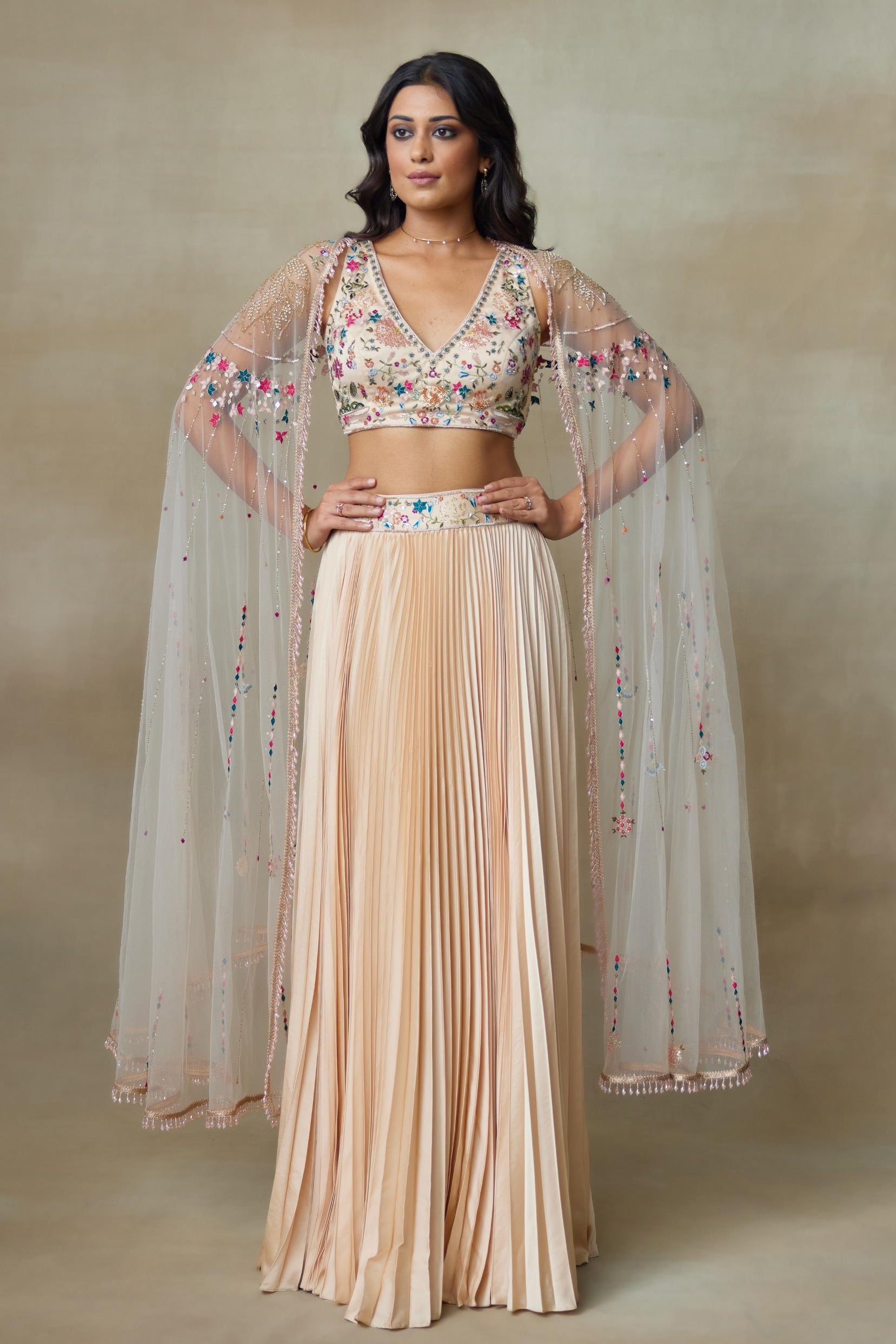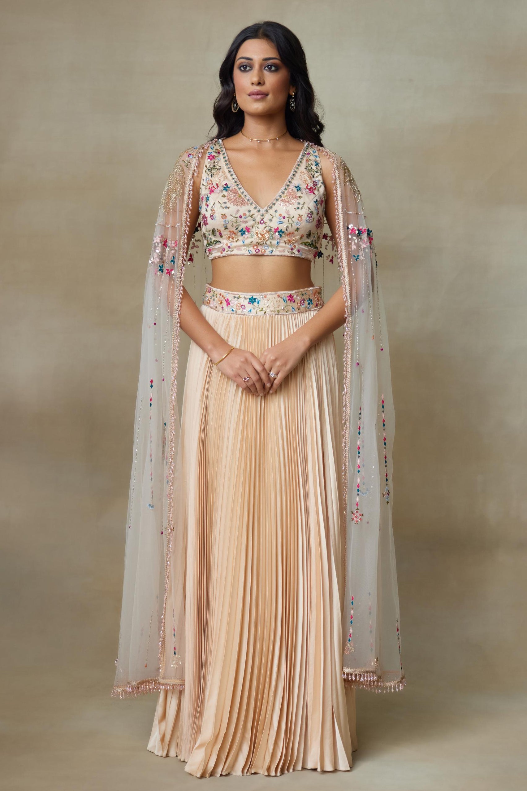 The Peach Stary Lehenga Set redefines contemporary bridal elegance with its delicate detailing and graceful structure. Designed for weddings and grand festivities, this lehenga set offers a flattering flare that enhances movement while maintaining structure. The soft peach tone elevates this lehenga set, making it ideal for engagement functions and reception evenings. Crafted with meticulous embroidery, this lehenga set balances subtle shimmer with refined craftsmanship. Whether paired with statement diamonds or classic kundan jewellery, this lehenga set adapts seamlessly to bridal styling. The blouse complements the silhouette while adding definition, ensuring this lehenga set photographs beautifully in both day and evening celebrations. For those seeking a timeless yet fashion-forward lehenga set, this design delivers sophistication, elegance, and enduring appeal.