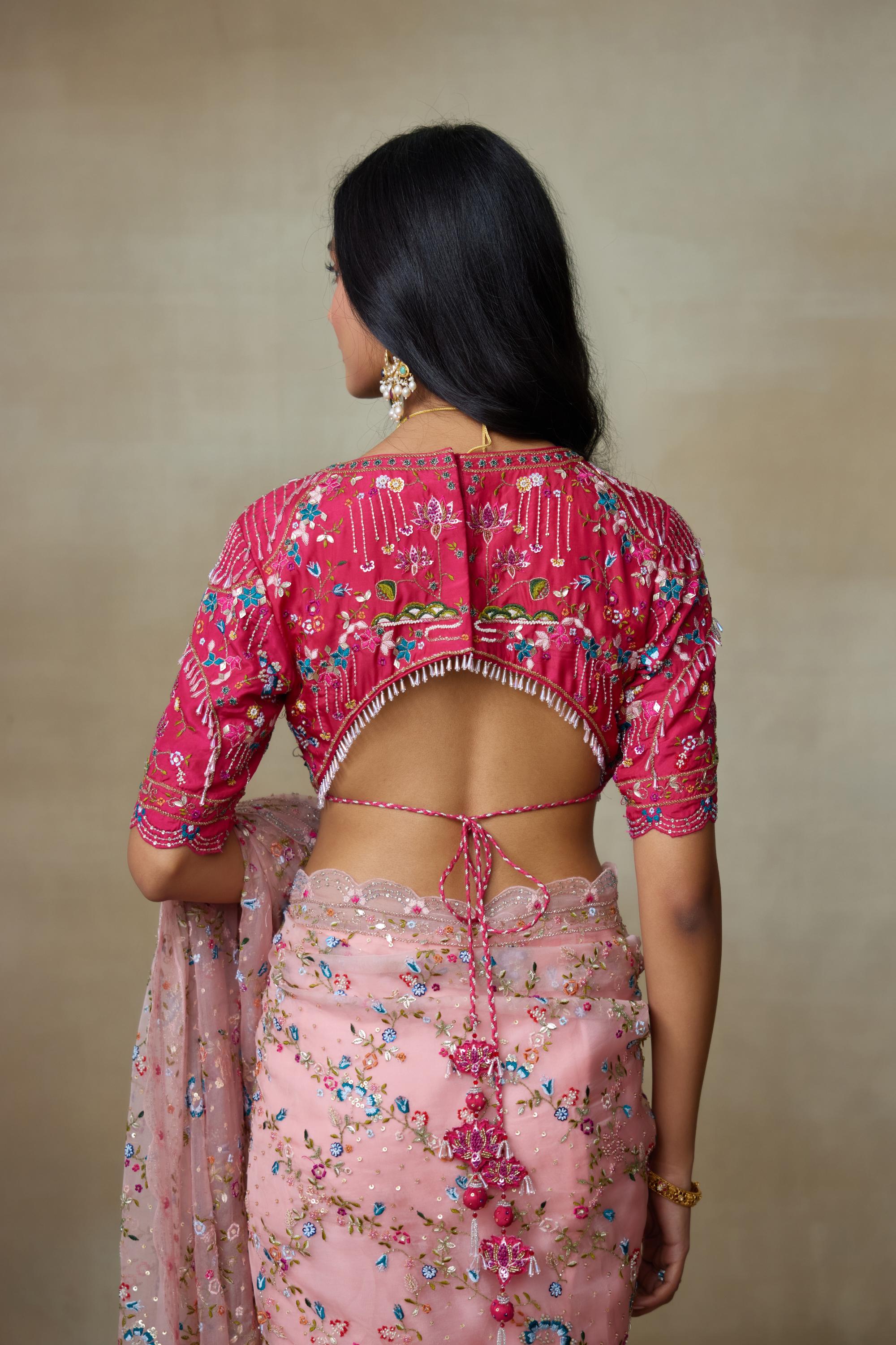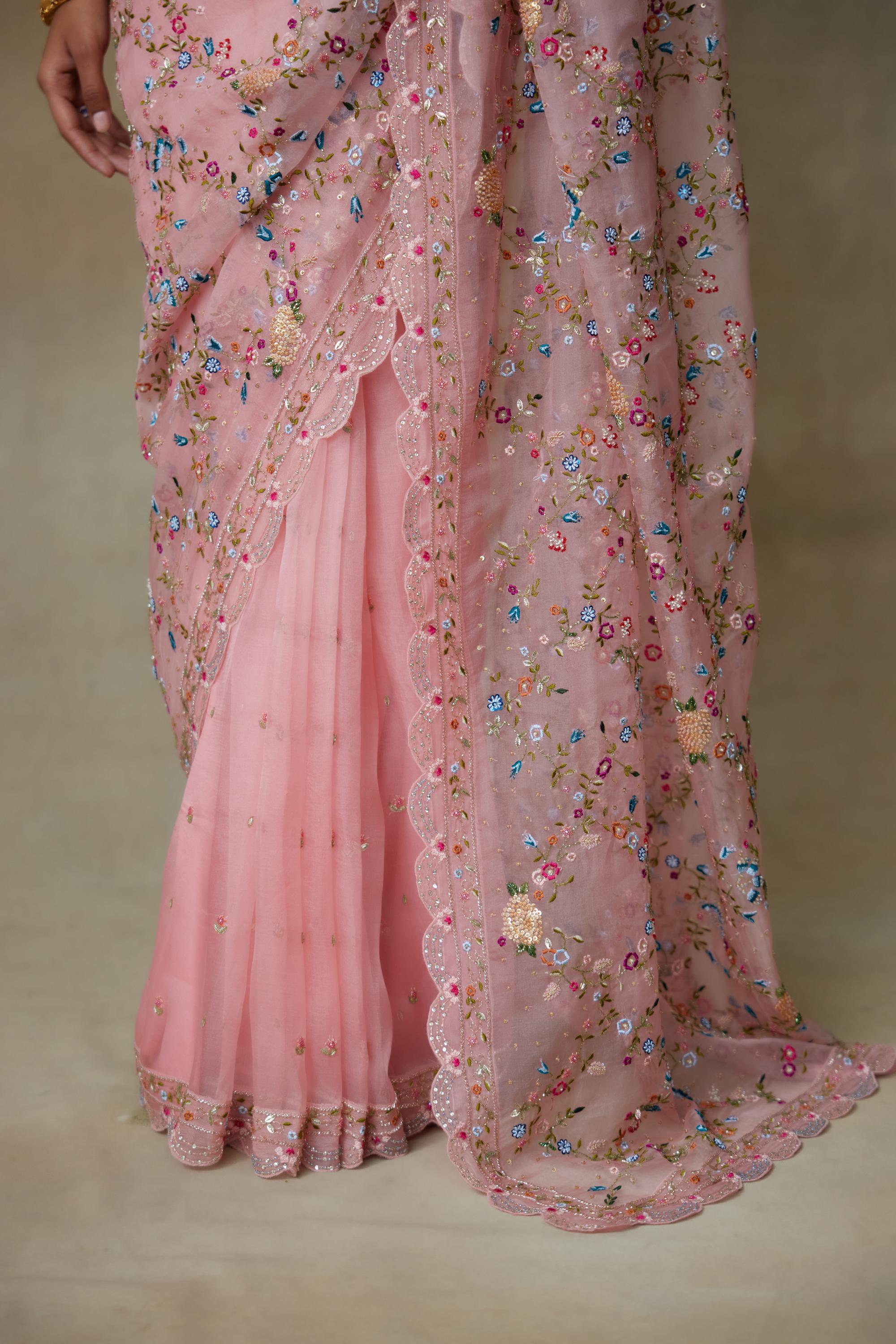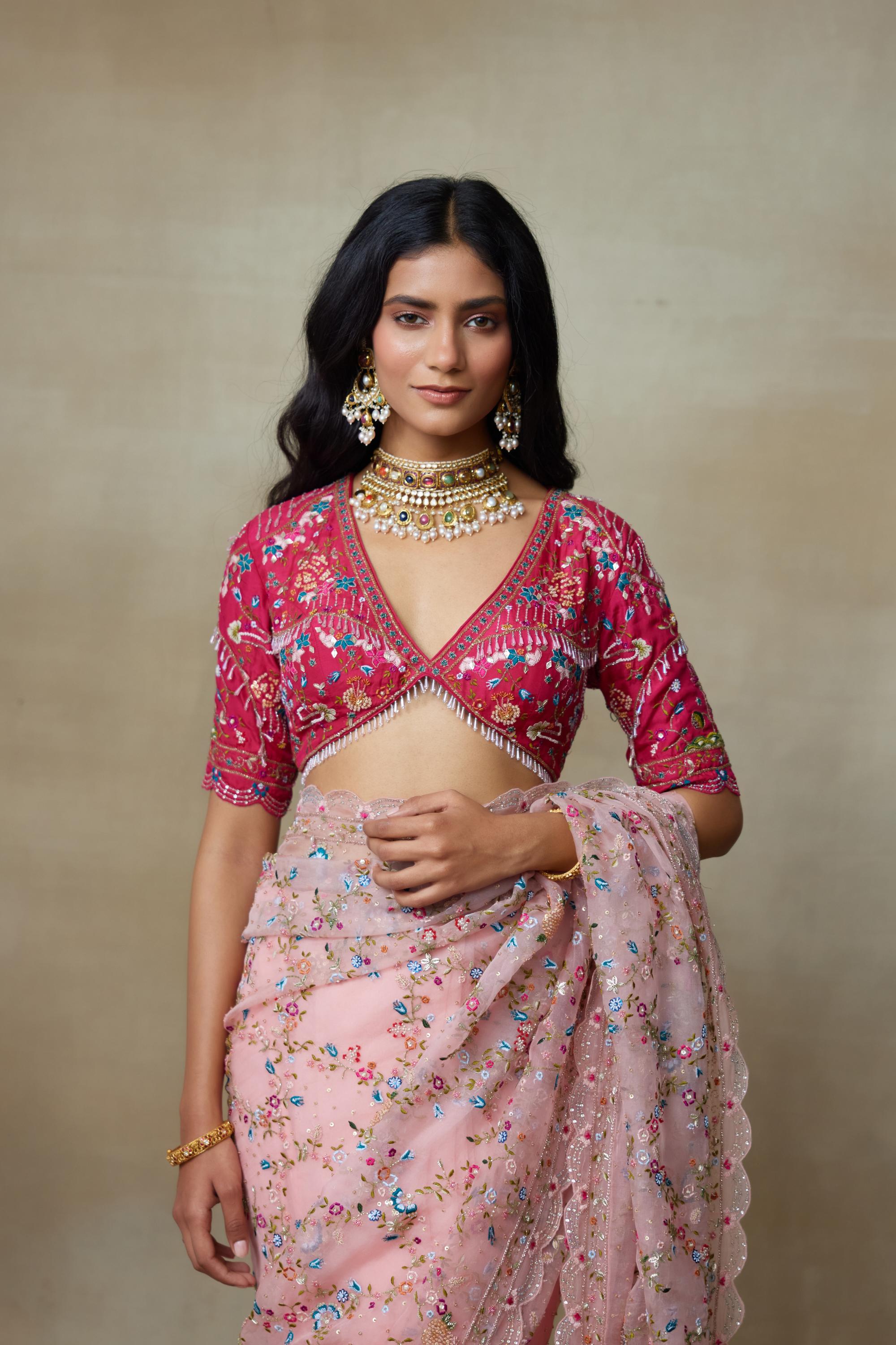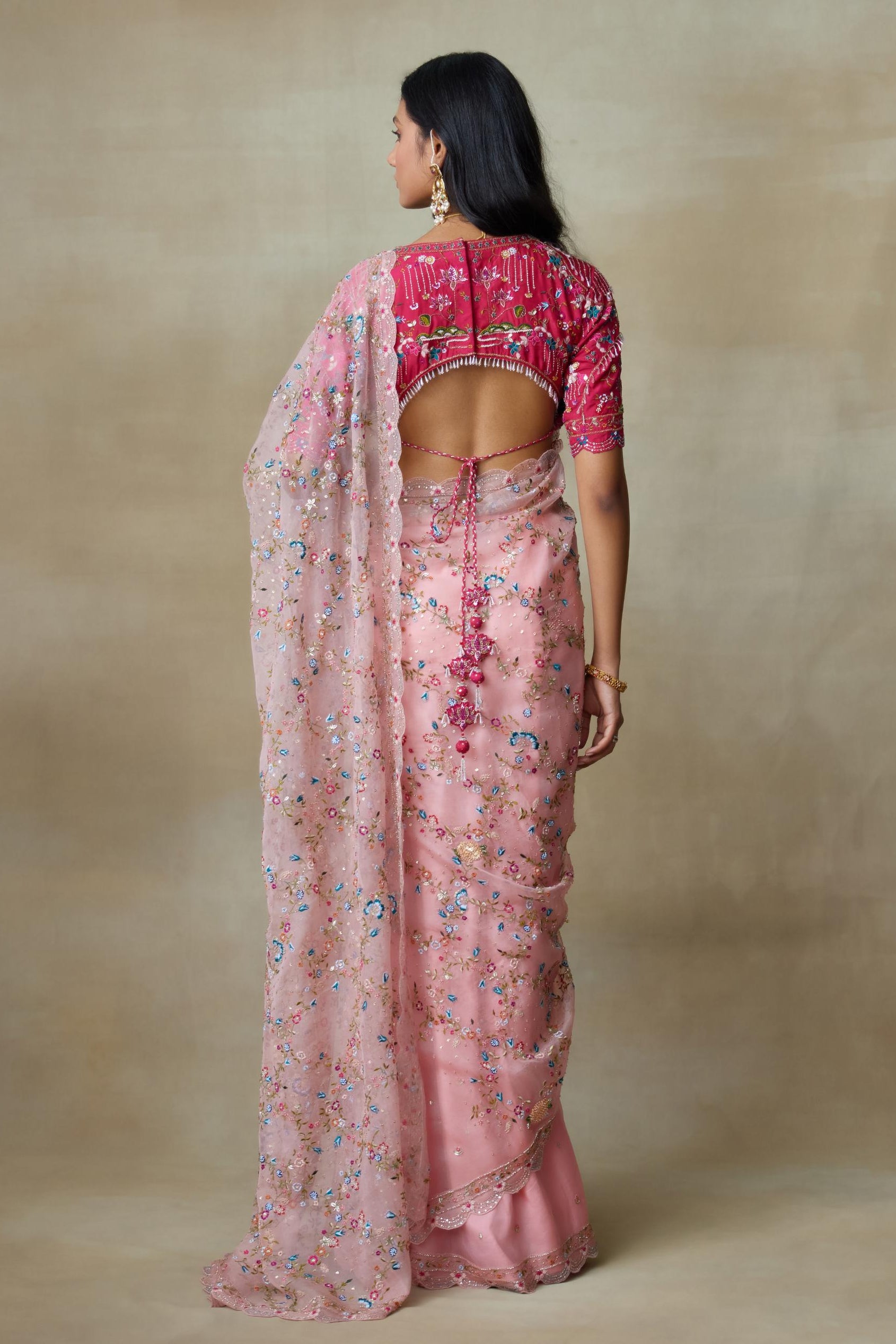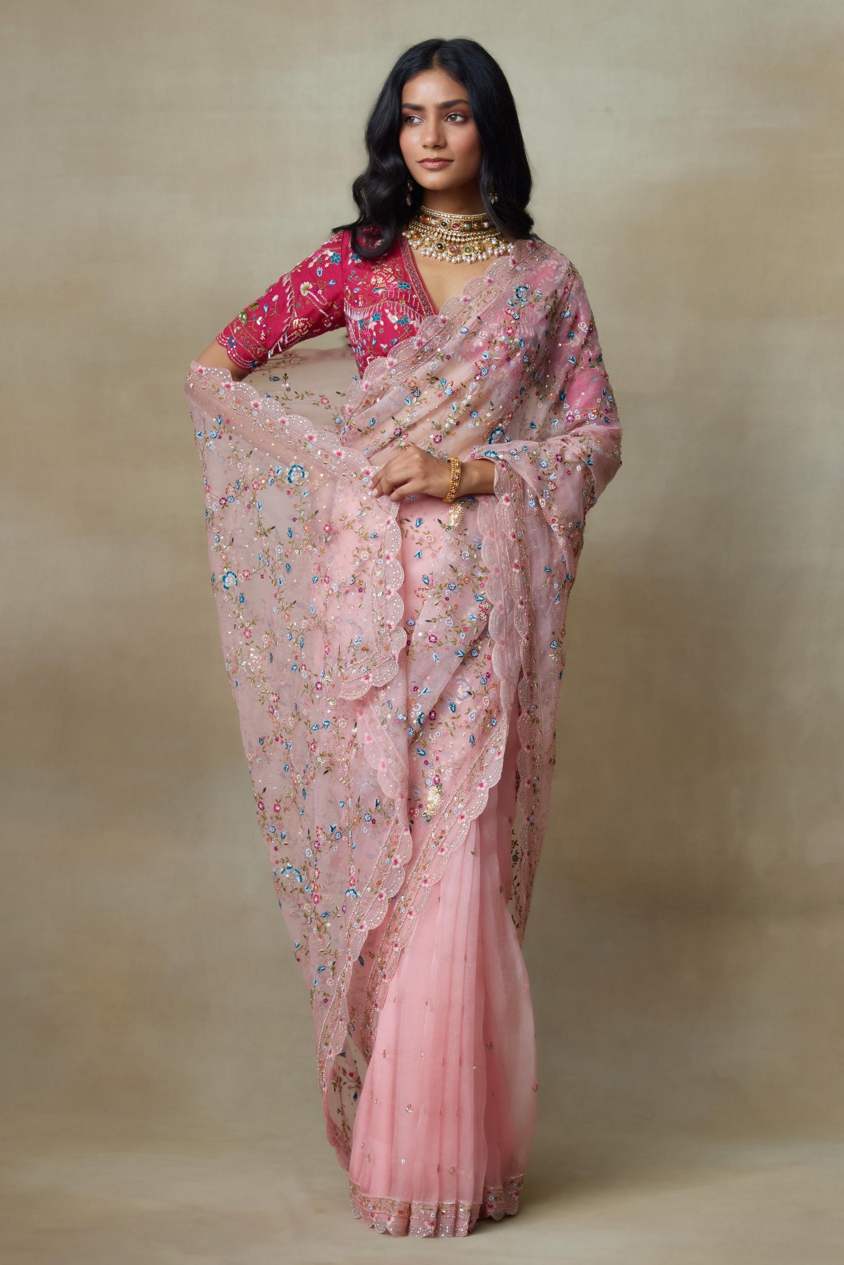 The Pink Falcon saree set by Shasha Gaba is crafted for modern wedding celebrations. This saree set showcases a soft pink tone perfect for festive gatherings. Designed for fluid draping, the saree set enhances feminine elegance. Ideal for receptions and cocktail events, this saree set combines traditional charm with contemporary styling. The detailed craftsmanship elevates the saree set, ensuring a graceful silhouette. Pair this saree set with statement accessories for a complete occasion look. Timeless and versatile, the saree set remains a refined choice for celebrations.