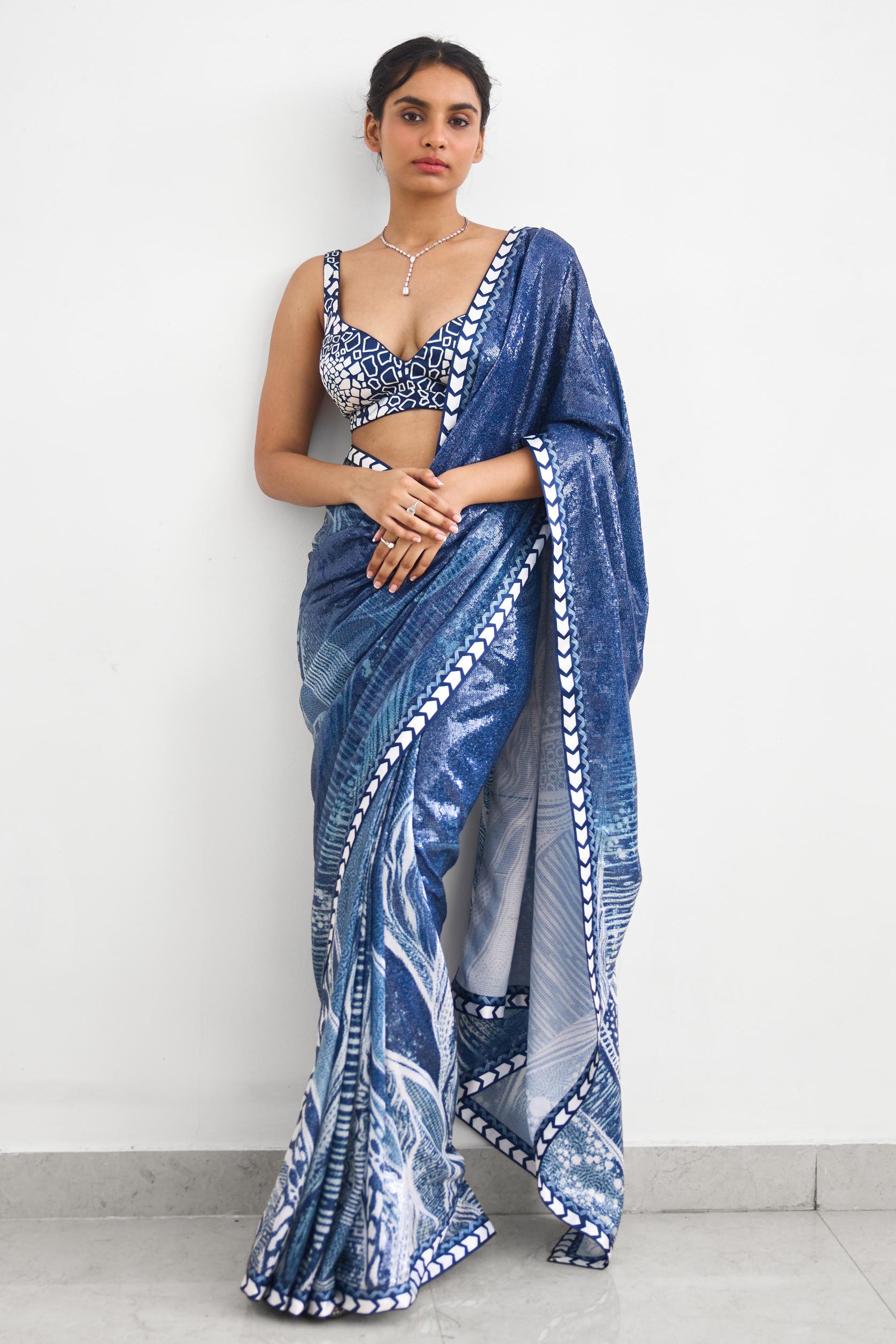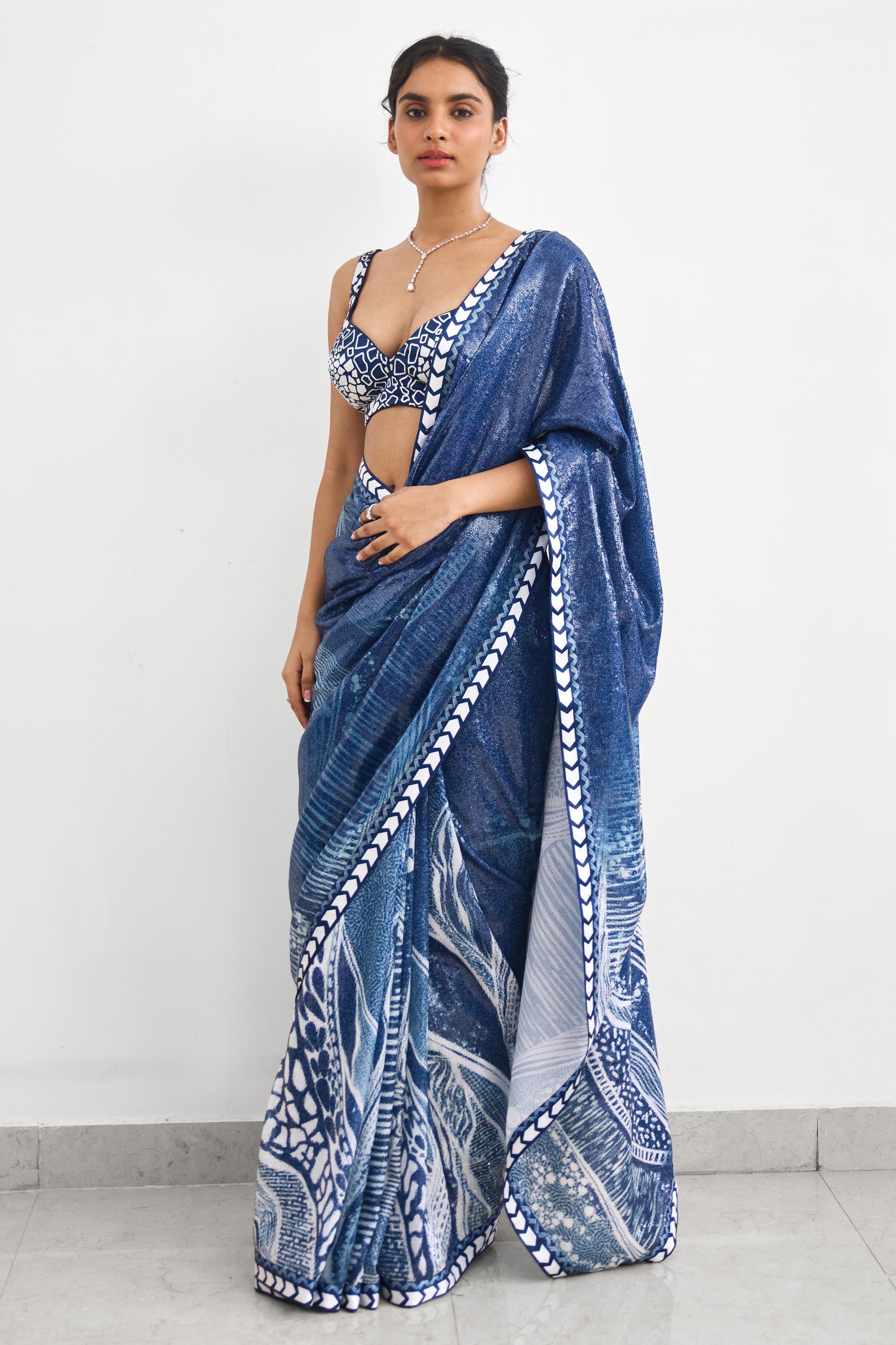 The Swirl Sequence Rooh Rang saree is curated for wedding festivities and evening celebrations that call for refined glamour. Its fluid drape and sequin detailing make it ideal for receptions, cocktail events, and celebratory nights where elegance matters.
