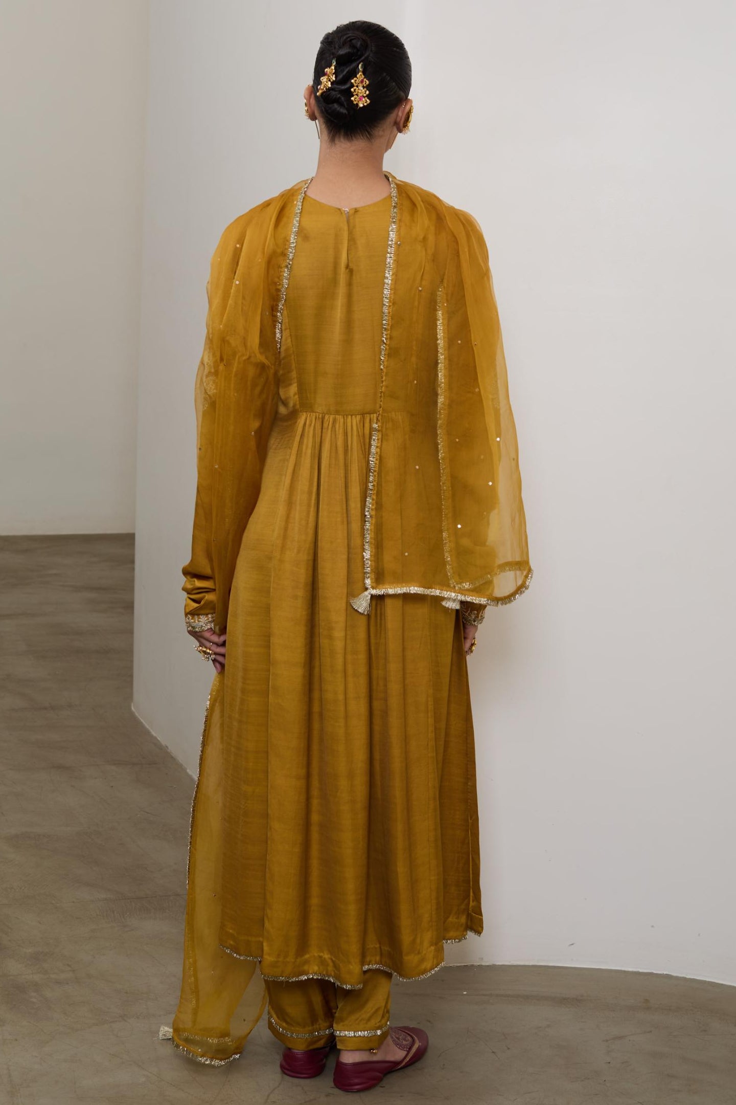 The Mustard pashmina silk kurta set is curated for festive mornings and traditional wedding functions. Its warm mustard tone brings richness and positivity, making it ideal for haldi ceremonies, family celebrations, and cultural gatherings. Designed for women who prefer classic silhouettes in elevated fabrics, this kurta set offers effortless grace with everyday luxury appeal.