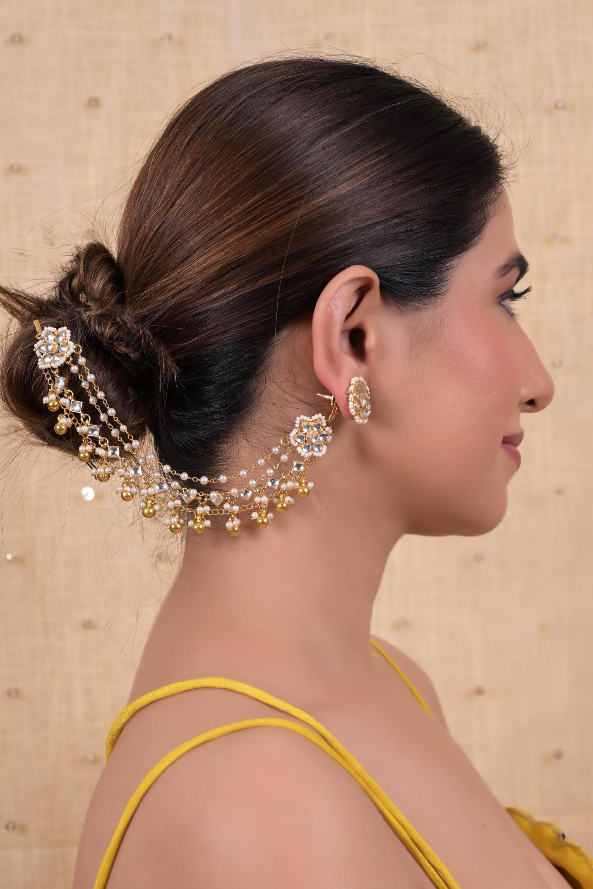The White Kanchain is a jewelry accessory that captures the essence of traditional elegance with its refined and timeless look. A kanchain has always been an important part of festive and bridal styling, used to highlight hairstyles and add a regal touch. This white kanchain embodies that legacy while offering versatility to suit modern celebrations. With its clean and sophisticated appearance, the White Kanchain pairs beautifully with richly detailed lehengas, elegant sarees, or flowy anarkalis. The pure white tone of this kanchain makes it a versatile choice, complementing bright festive outfits as well as softer pastel palettes. Whether worn by brides to highlight their hairstyles or by guests to create a chic festive look, this kanchain adds instant refinement. Designed with delicate craftsmanship, the White Kanchain is lightweight and comfortable, ensuring ease of wear during long events such as weddings or receptions. The intricate design reflects heritage artistry while keeping functionality in mind, making it a practical yet elegant choice. This kanchain is perfect for brides who prefer understated sophistication in their jewelry but still want to honor tradition. Its pure white shade allows it to work with both vibrant and subtle outfits, enhancing hairstyles with grace. It also works beautifully for pre-wedding functions like sangeet or mehendi, adding a traditional finishing touch. The White Kanchain is more than just a festive ornament—it is a symbol of purity, grace, and timeless cultural artistry. Perfect for creating a balanced look, it ensures your festive styling feels complete. For anyone seeking a heritage-inspired yet modern accessory, the White Kanchain stands as an essential piece. Elegant, versatile, and deeply traditional, it deserves a place in every festive jewelry collection.