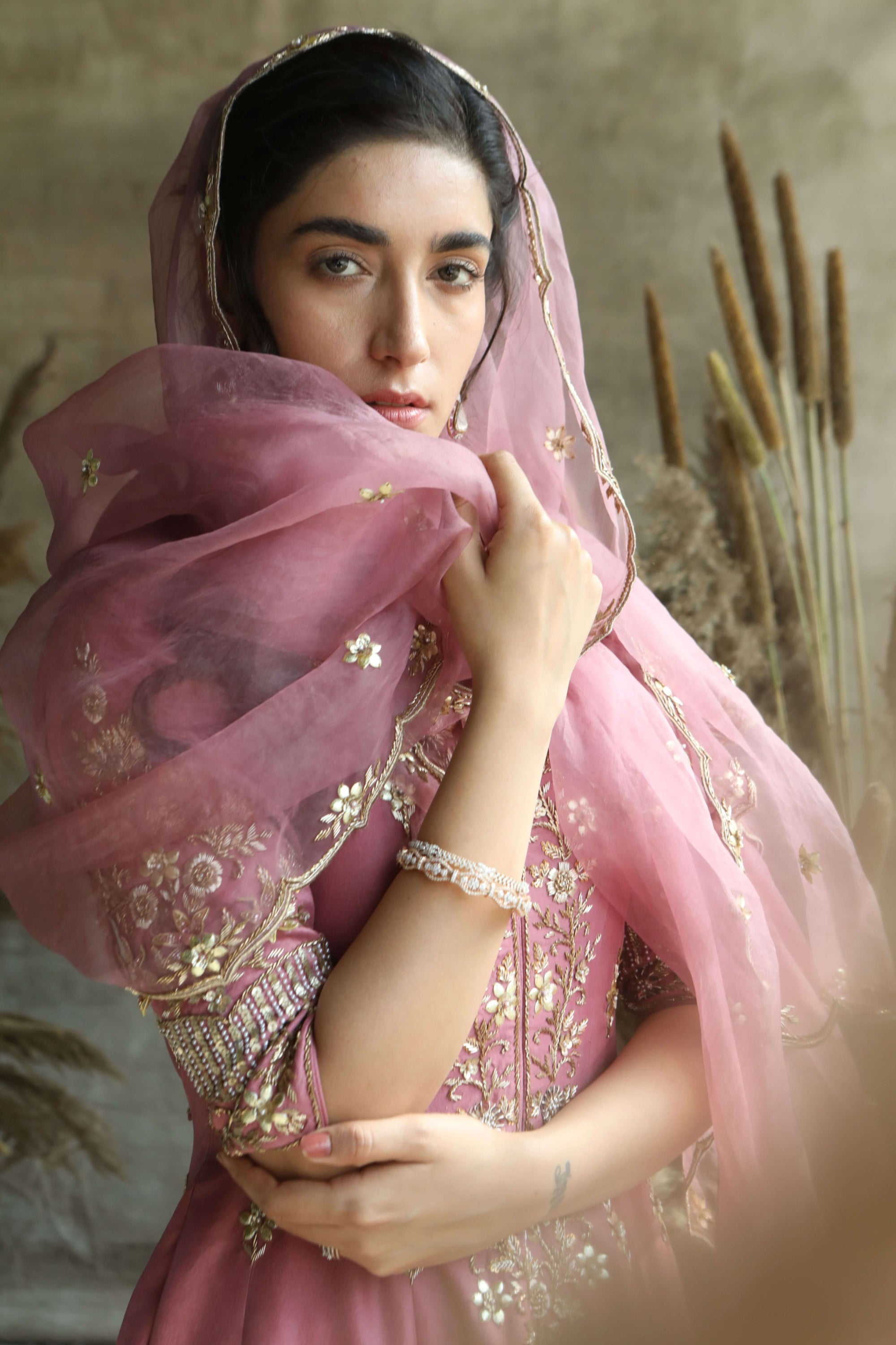 Embrace refined elegance with our short onion silk anarkali suit, crafted from luxurious silk. This graceful ensemble features a short onion-hued anarkali adorned with subtle detailing, offering a sophisticated yet modern silhouette. It is complemented by a delicate organza dupatta that drapes beautifully, adding an airy touch to the outfit. The look is completed with a matching potli bag, which enhances the ensemble's classic charm. Ideal for special occasions and festive events, this suit ensures you make a stunning impression with its elegant color and exquisite craftsmanship.