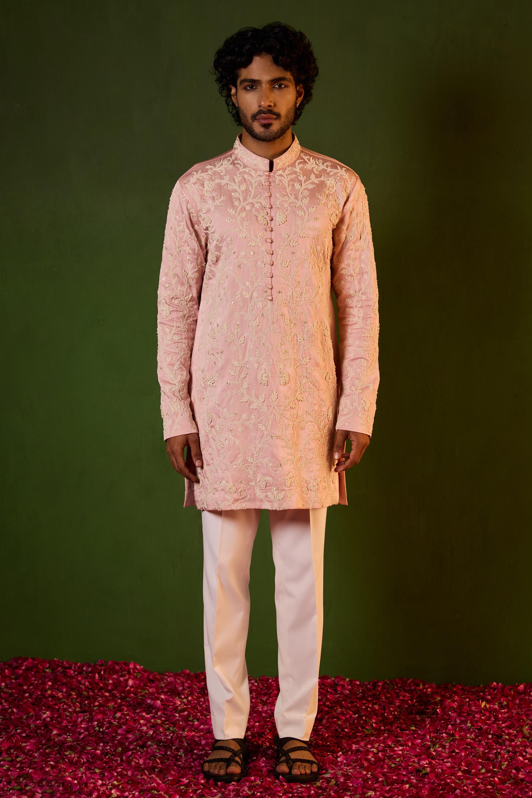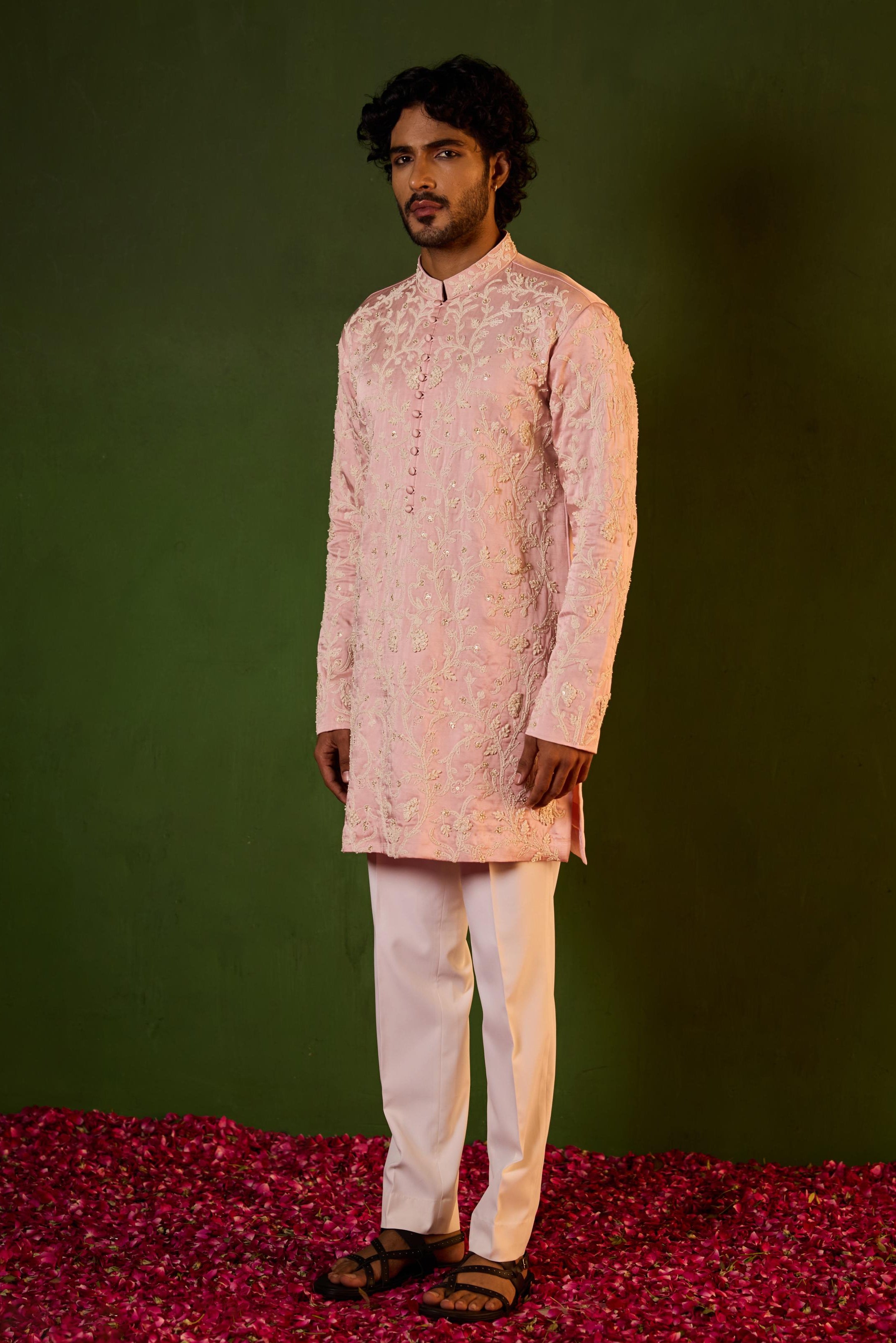 The Pink Prem kurta set is curated for festive mornings, wedding functions, and celebratory gatherings. The soft pink tone adds a refreshing elegance, making it ideal for daytime ceremonies. Designed for men who enjoy lighter festive palettes, this kurta set delivers charm with sophistication.