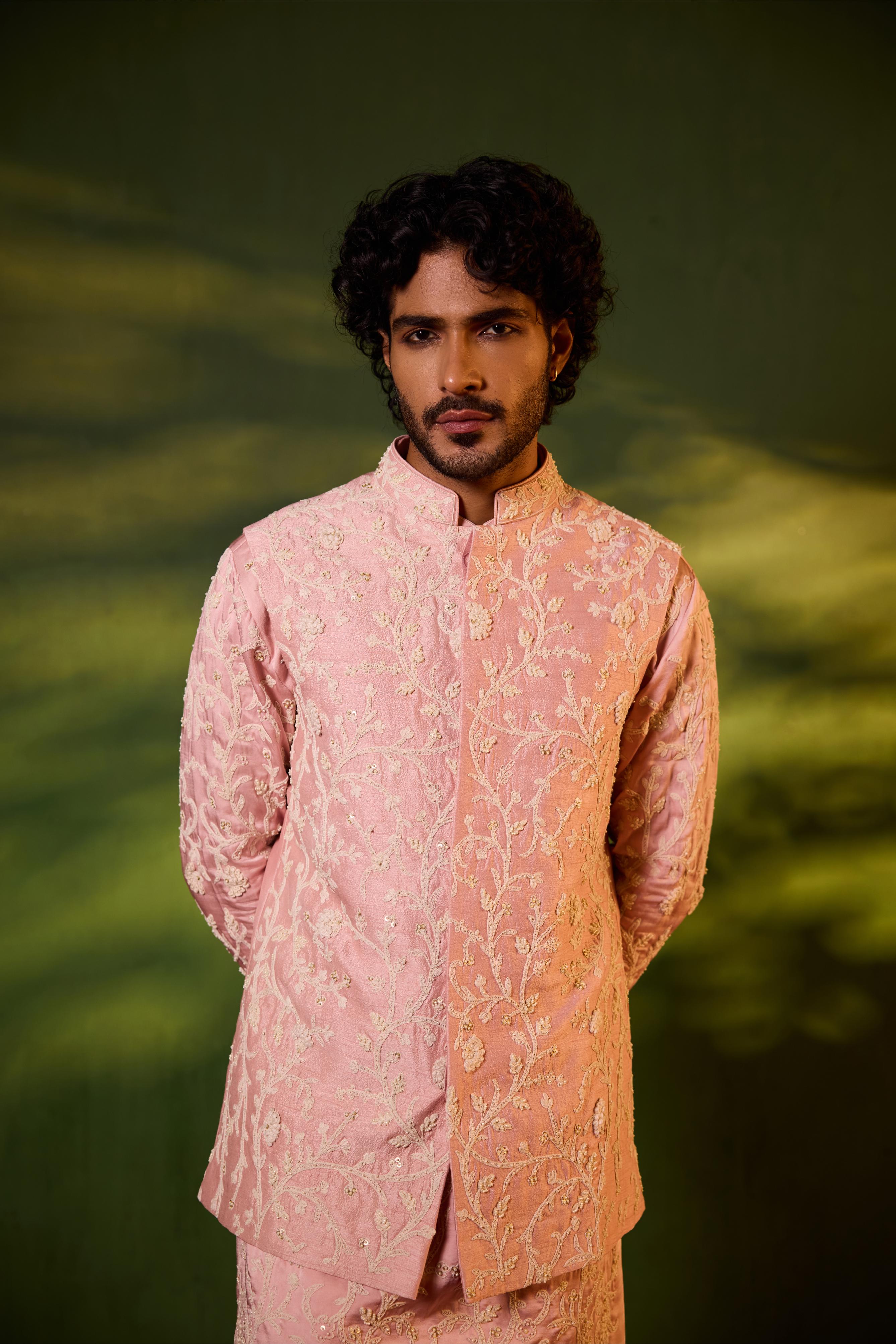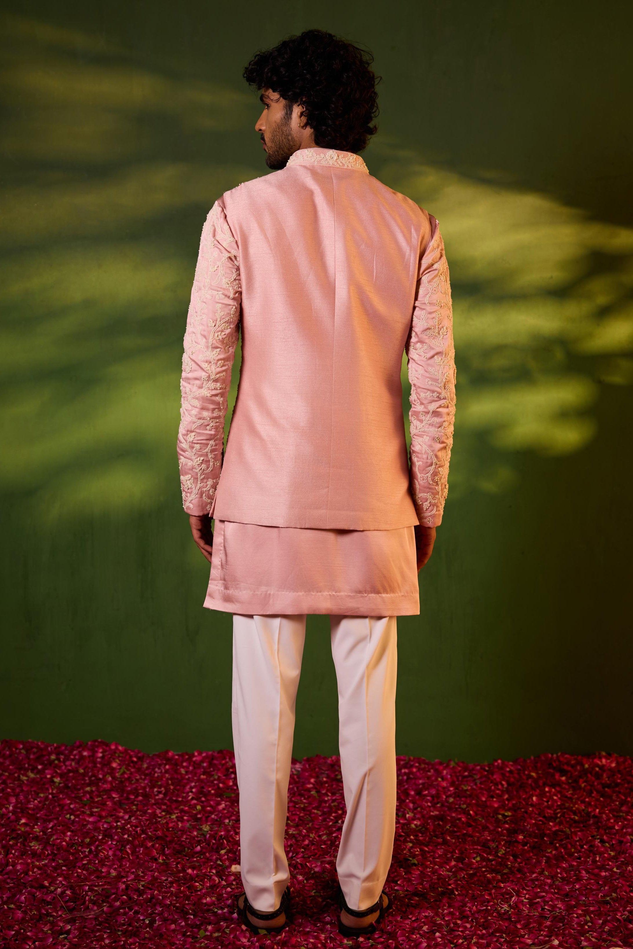 The Pink Sarvaprem bandi set is curated for daytime wedding functions and festive celebrations. Its soft pink tone brings a fresh, graceful presence, making it ideal for haldi ceremonies, family gatherings, and cultural events. Designed for men who enjoy lighter festive hues, this kurta set balances elegance with comfort for extended wear.