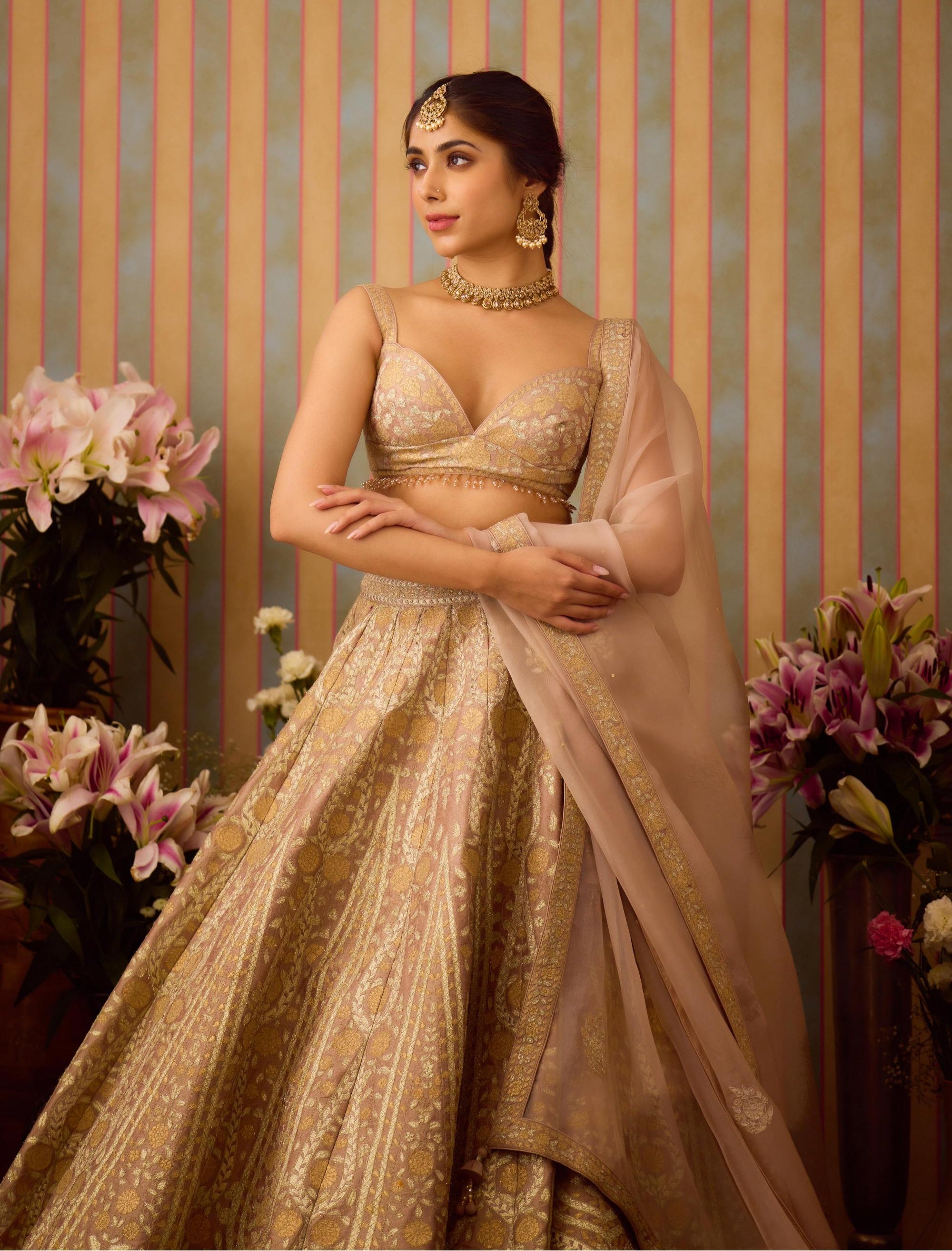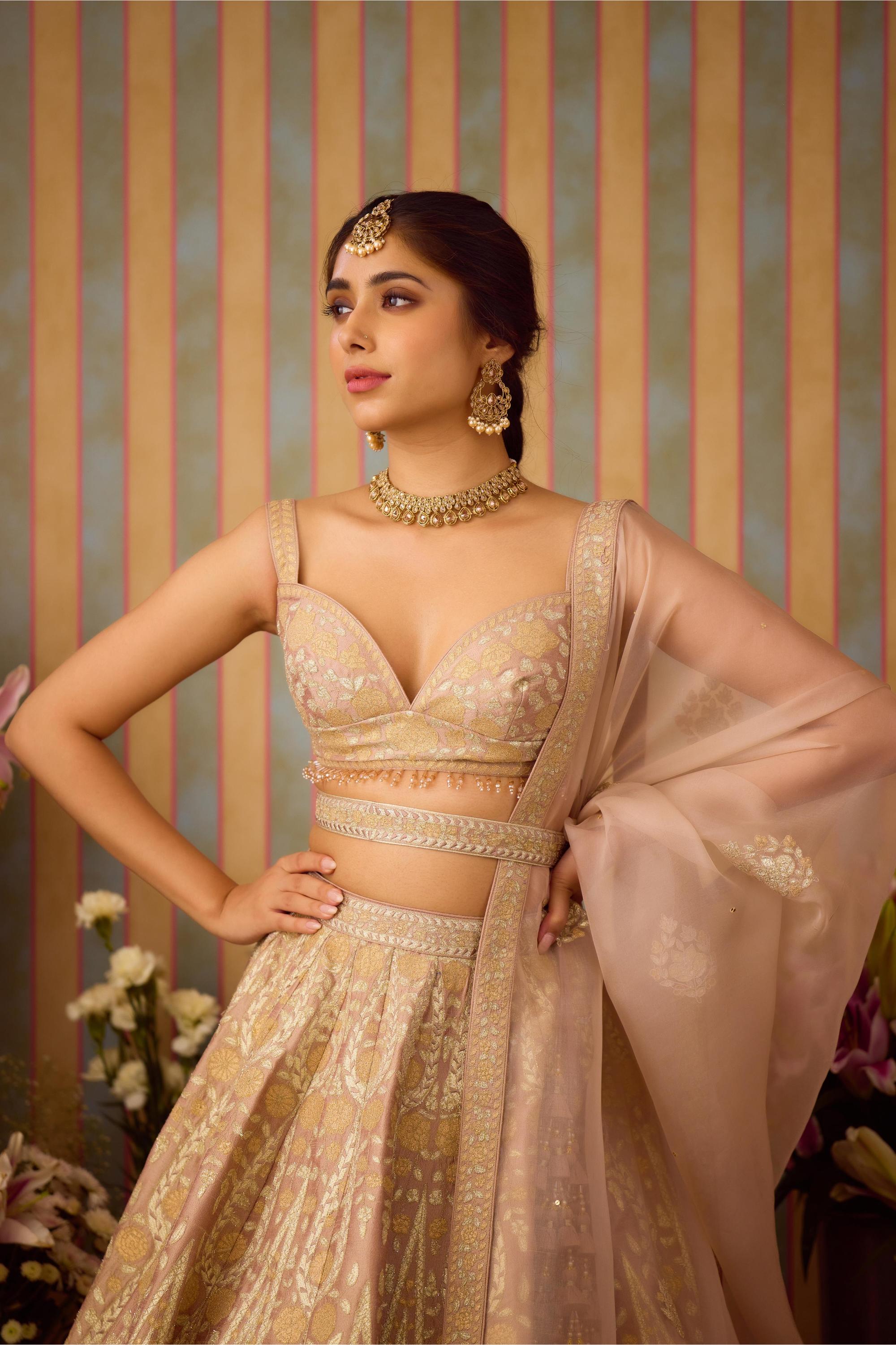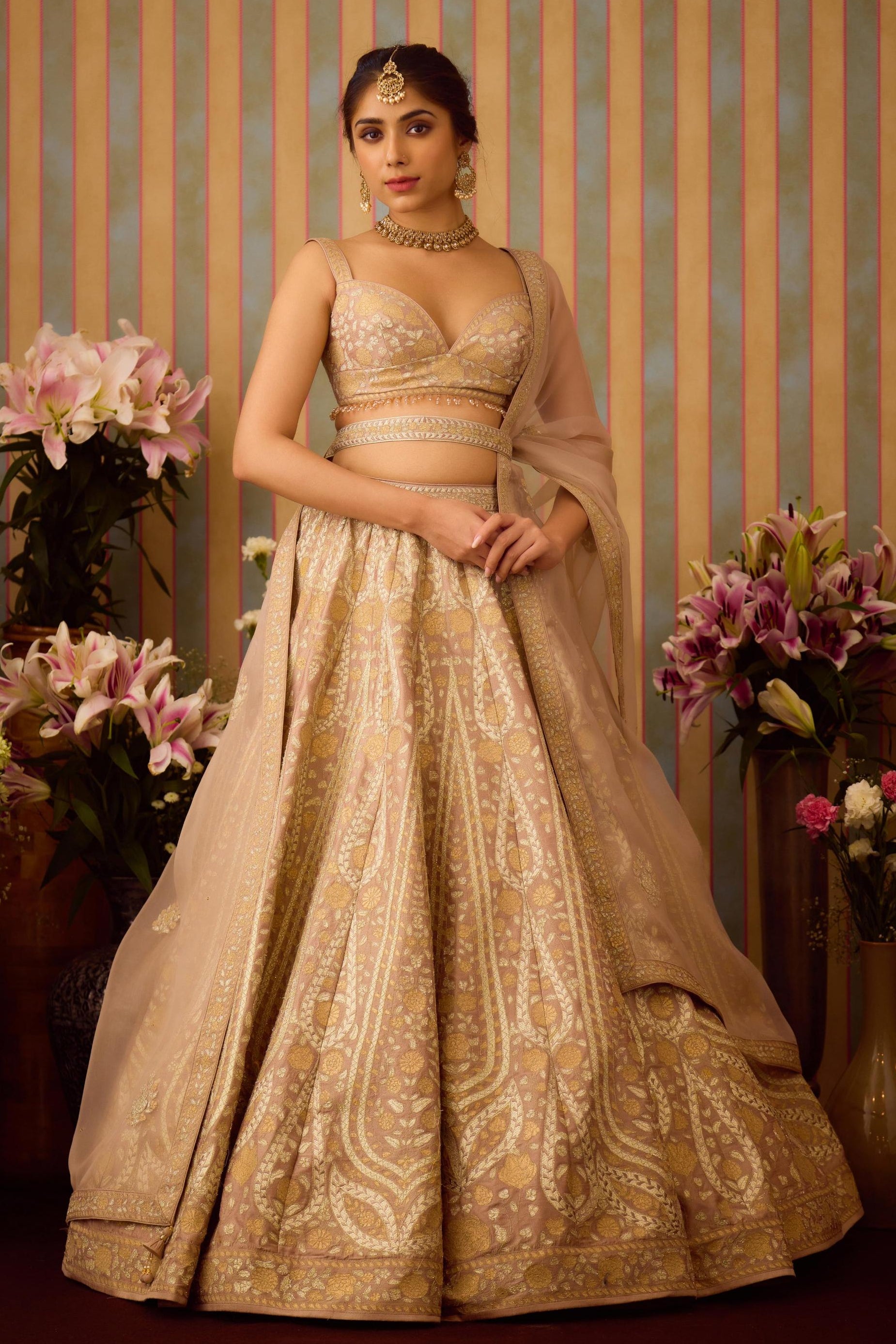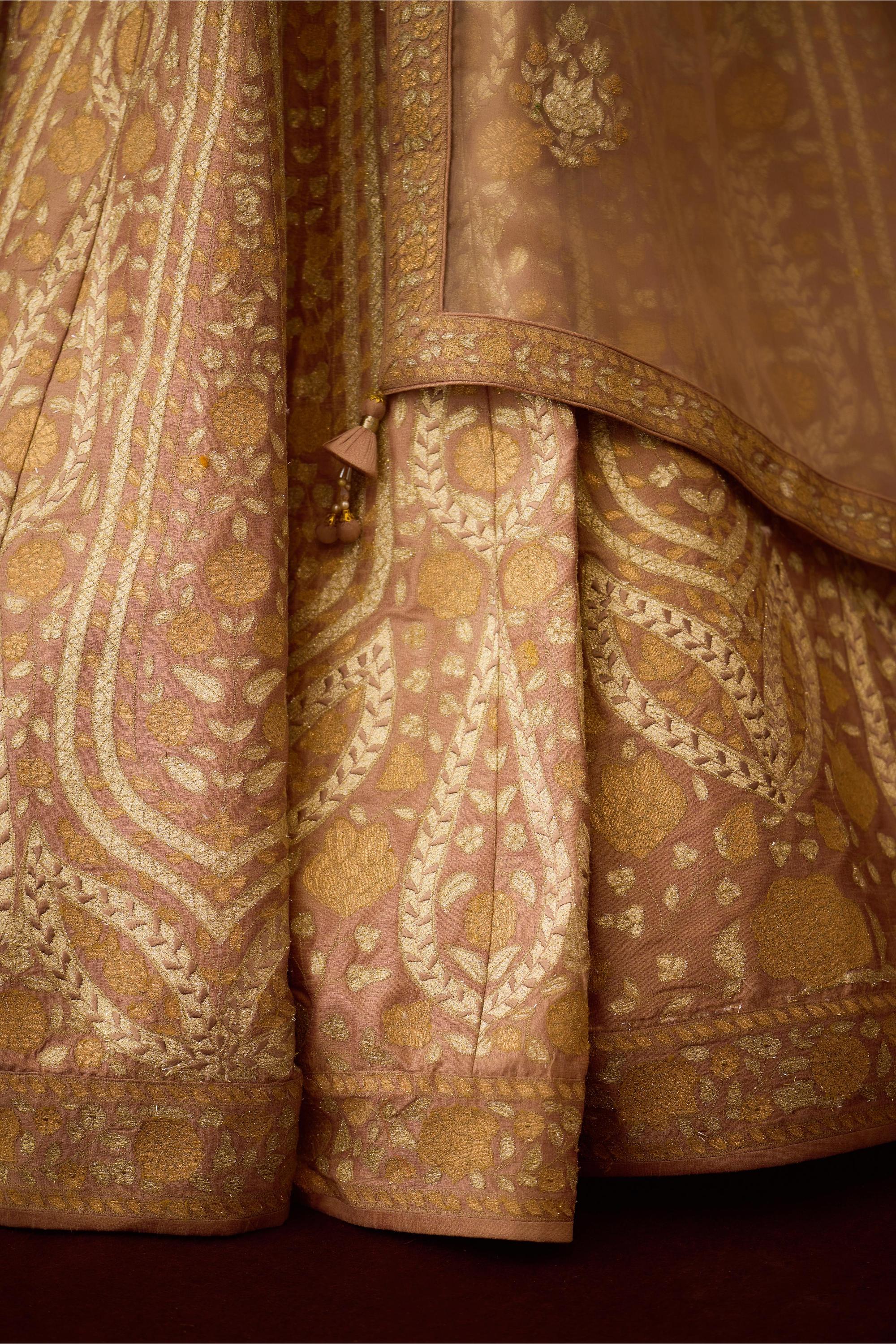 The gray festive wedding lehenga set by Shyam Narayan Prasad redefines pre-wedding elegance with its refined tone and timeless design. Perfect for Engagement and Roka ceremonies, this lehenga set balances traditional craftsmanship with modern aesthetics. The lehenga skirt features a graceful flare, paired with a beautifully detailed blouse and a coordinating dupatta. The muted gray shade provides a sophisticated canvas for intricate embroidery that enhances the richness of the outfit. Designed to ensure comfort without compromising on style, this lehenga set allows the wearer to move with ease during extended celebrations. What makes this lehenga set unique is its subtle charm. While many festive ensembles rely on bright colors, the gray hue provides a chic alternative that radiates elegance. It photographs beautifully in both natural and artificial light, making it ideal for Engagement or Roka functions. Styling this lehenga set offers versatility—pair it with silver or diamond jewelry for a modern touch, or with traditional ornaments for a regal finish. Its balanced silhouette ensures that it suits a wide range of occasions beyond weddings, making it a timeless wardrobe addition. Crafted with precision, this lehenga set embodies Shyam Narayan Prasad’s philosophy of merging heritage artistry with modern design sensibilities. Perfect for brides-to-be or family members who want to embrace understated luxury, it is an elegant choice for memorable celebrations.
