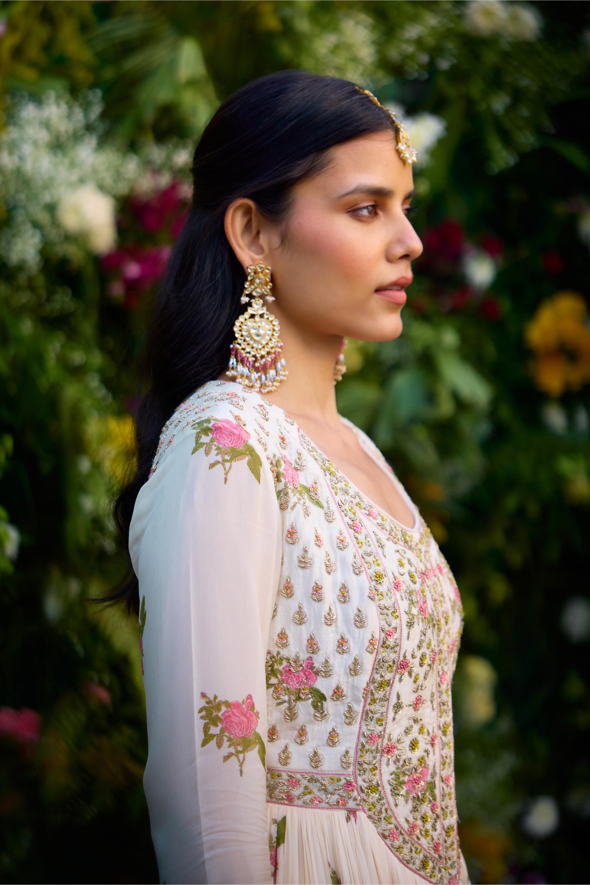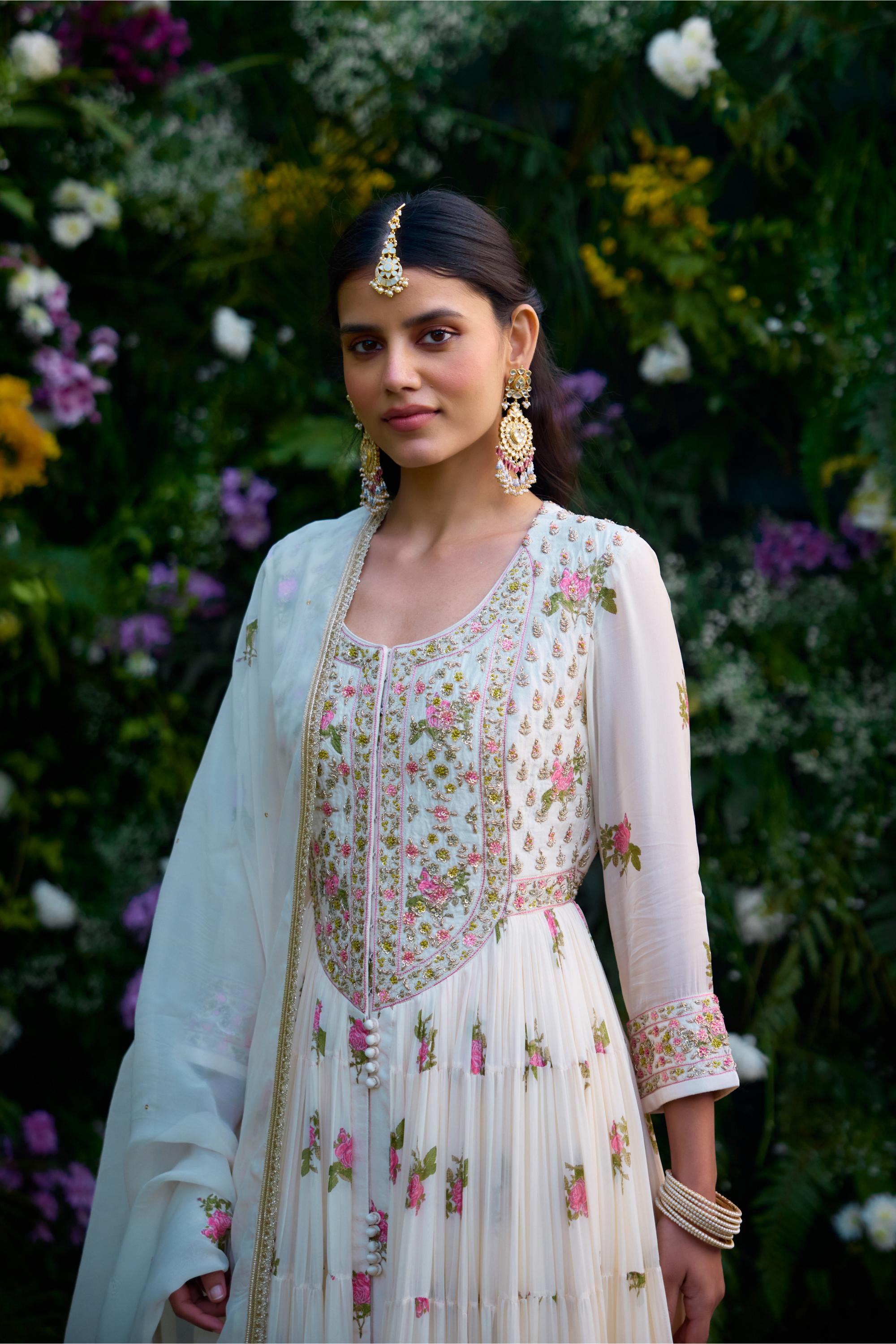Elevate your festive style with this ivory hand block printed embroidered anarkali set, adorned with delicate zardozi embroidery. Ideal for weddings, receptions, or cultural events, this anarkali set balances traditional charm with modern wearability. Comfortable yet regal, it’s perfect for bridesmaids or guests who appreciate artisanal craftsmanship and timeless elegance.