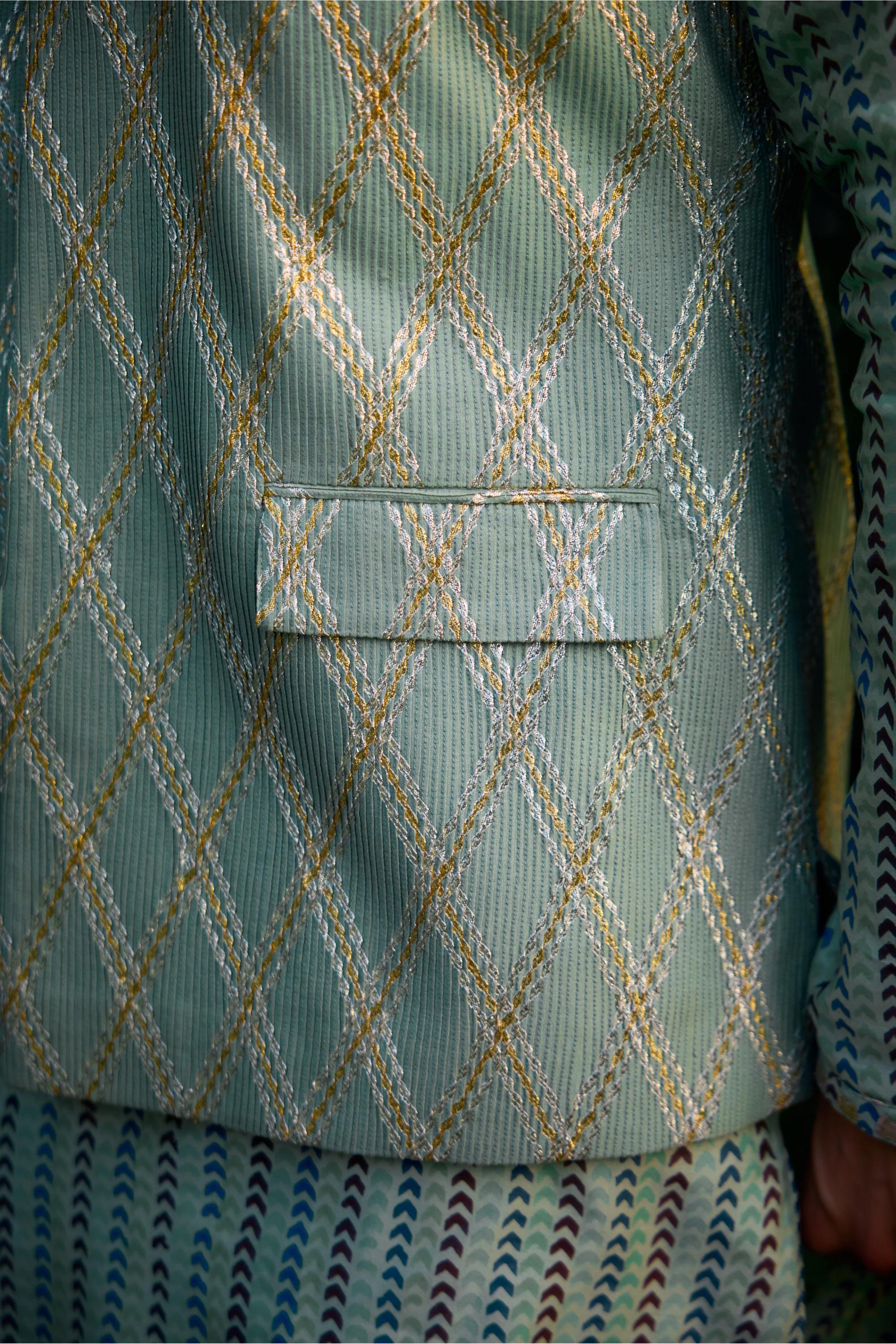 Green summer wedding gota quilted cotton silk waistcoat with kurta set