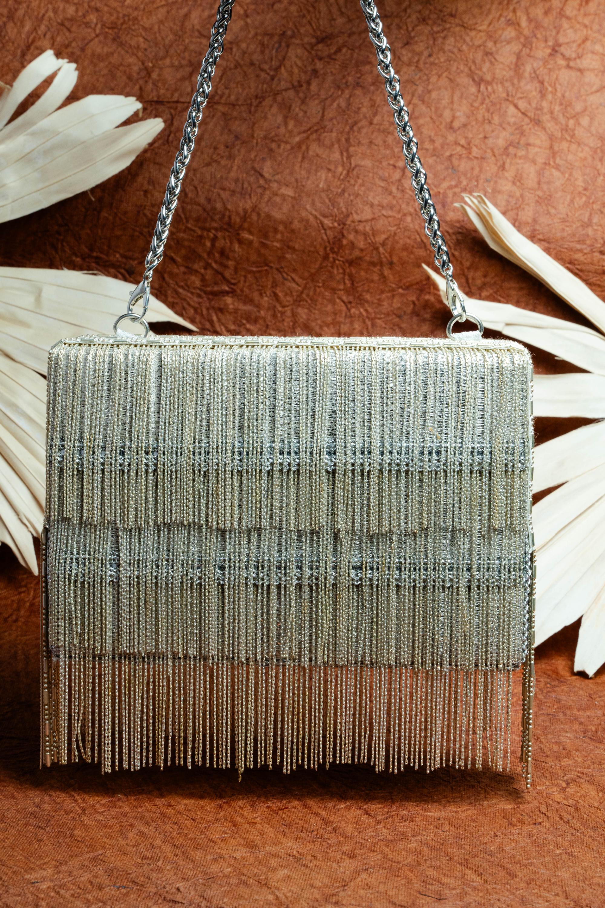 Sleek and contemporary, the Silver Hinted Kasse Bag brings a refined shimmer to your look. Designed in a structured box silhouette with subtle silver hints, this versatile piece adds just the right amount of glamour. Perfect for intimate celebrations, cocktail evenings, or upscale brunches, the Silver Hinted Kasse Bag is an understated statement accessory for the modern woman who prefers elegance with a minimalist edge.