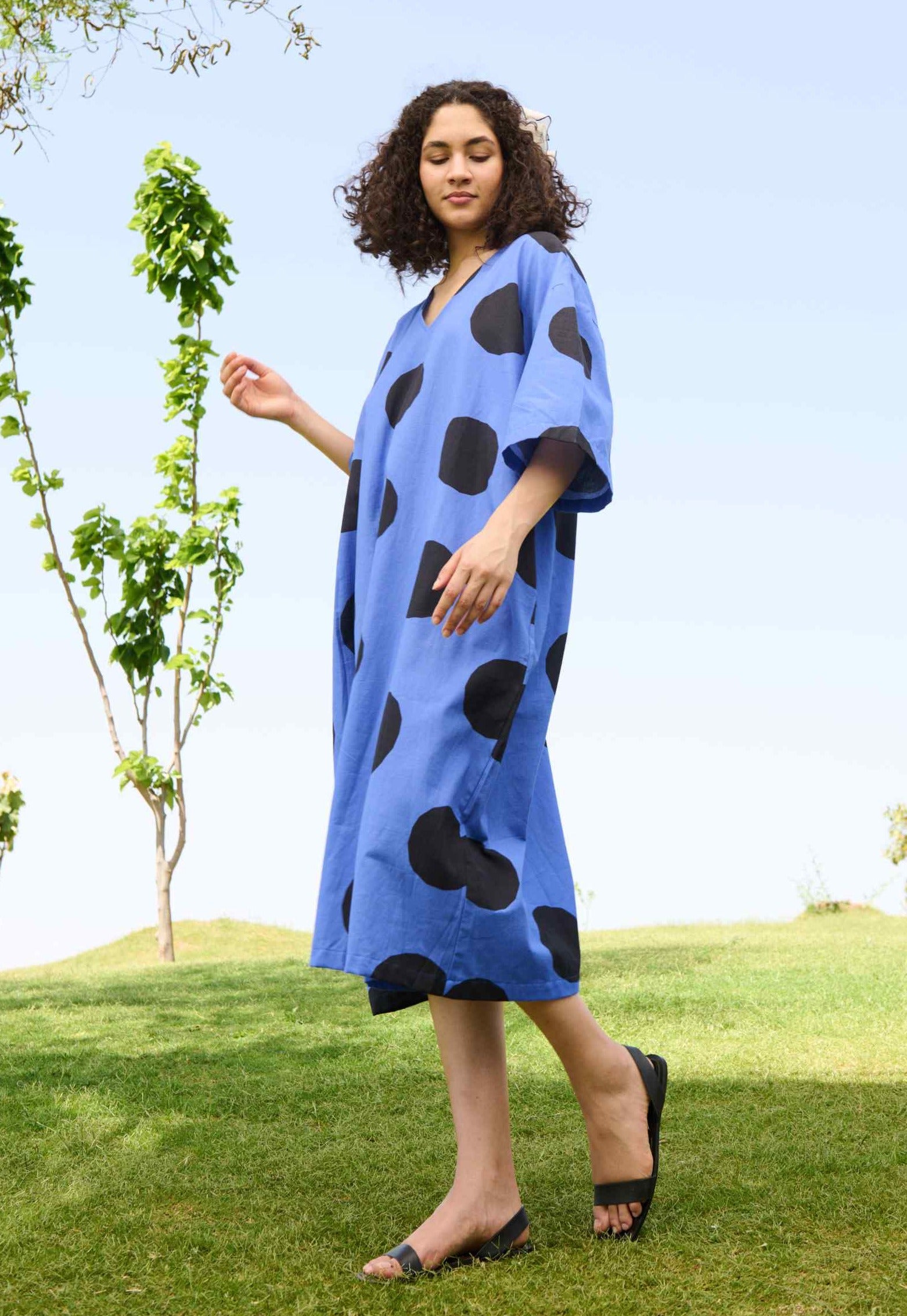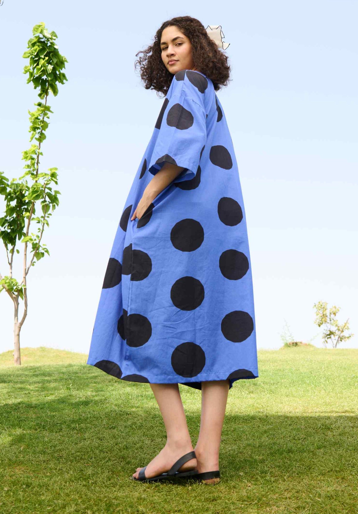 Embrace effortless style with the Marie Dress, a sophisticated addition to your wardrobe. Crafted from our high-quality linen-cotton blend, this dress features a charming small polka blue print that adds a touch of whimsy and elegance. The V-neckline enhances its flattering silhouette, while the oversized fit ensures both comfort and a chic, relaxed look. Practical pockets add functionality without sacrificing style. Whether you're dressing up for a special occasion or keeping it casual, the Marie Dress offers a versatile and fashionable option that blends classic design with modern comfort.