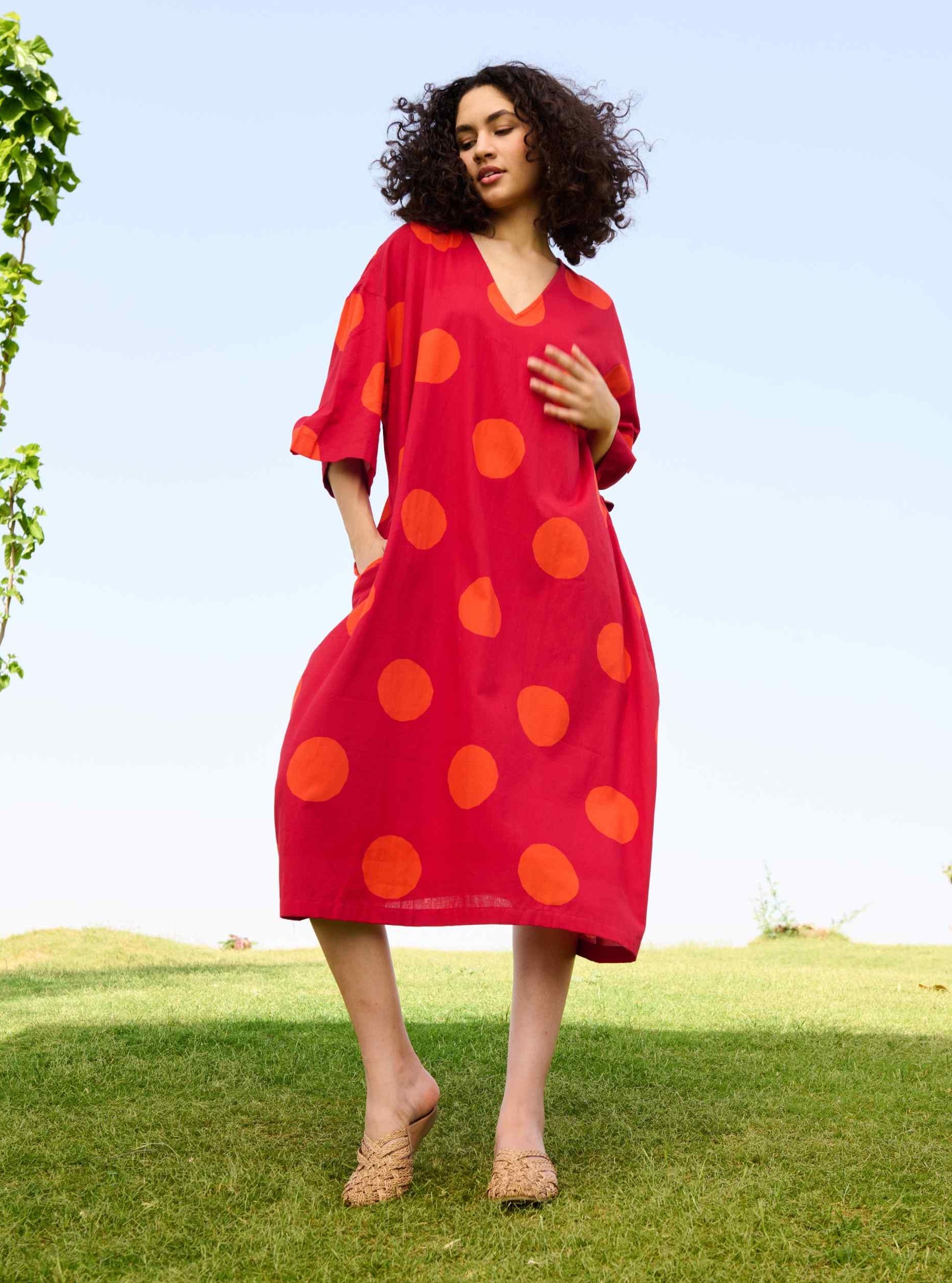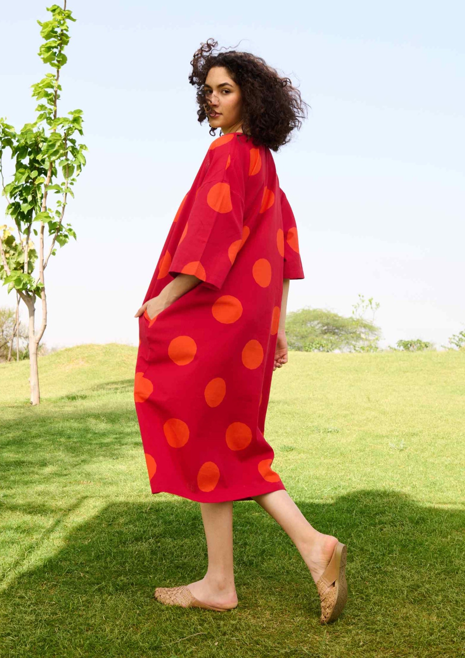 Elevate your wardrobe with the Marie Dress, meticulously crafted from our high-quality linen cotton fabric in a charming small polka red print. This oversized V-neck dress is designed for effortless style and comfort, featuring practical pockets for added convenience. Perfect for both casual outings and relaxed gatherings, the Marie Dress combines a flattering V-neckline with a spacious, breezy fit. The playful polka dot pattern adds a touch of whimsy, making it a versatile and eye-catching addition to your seasonal wardrobe.