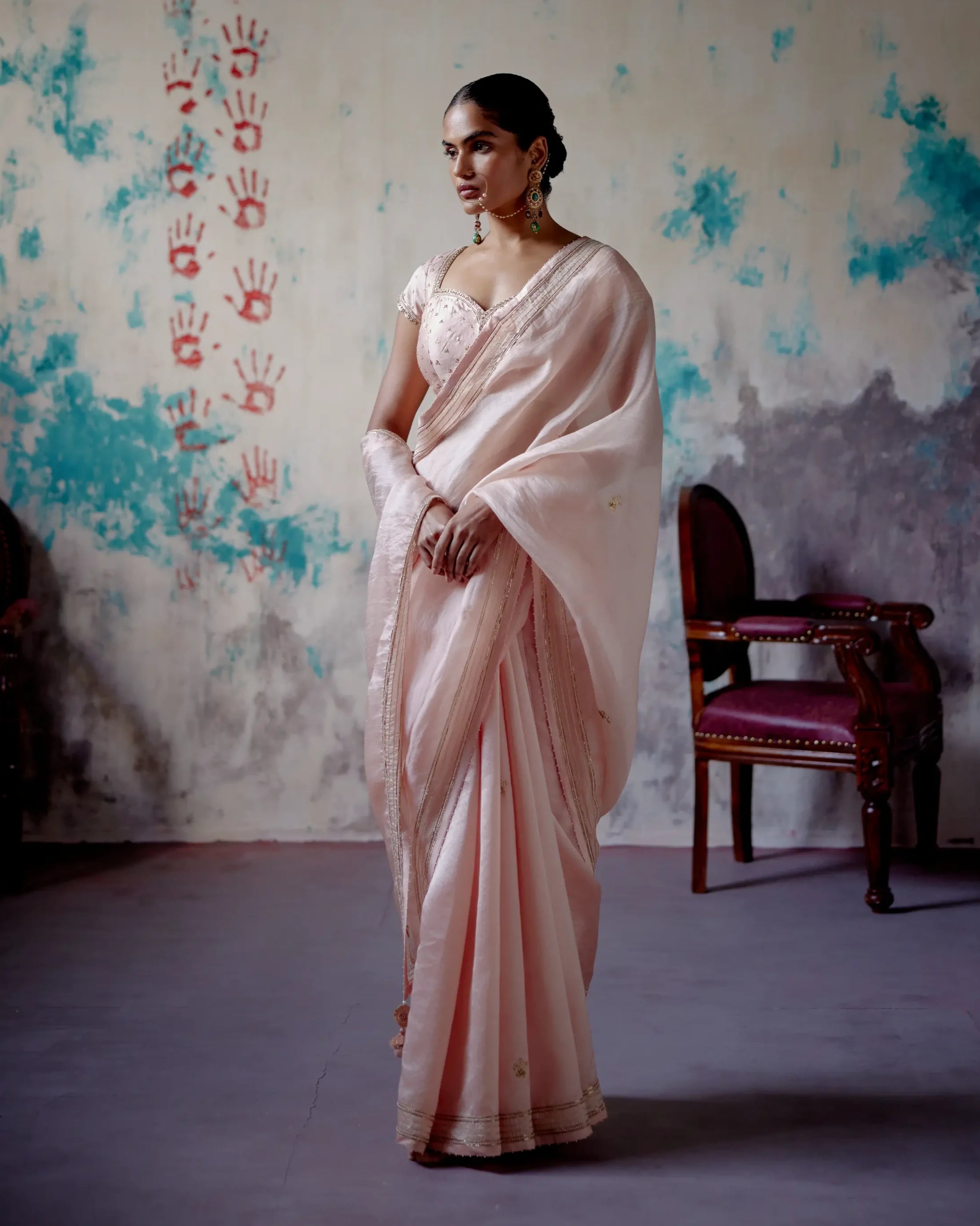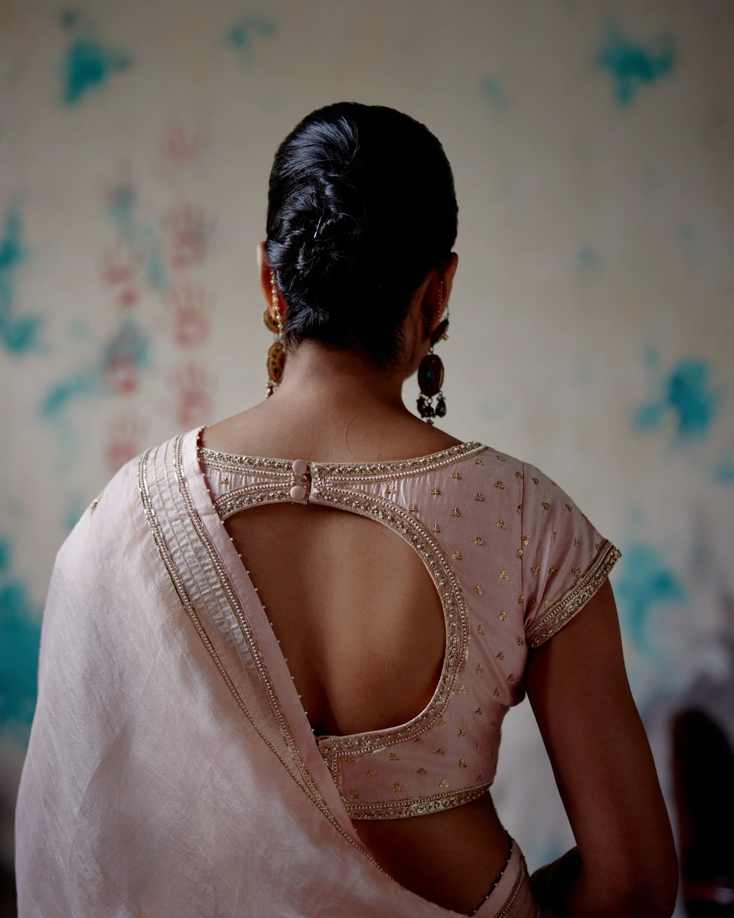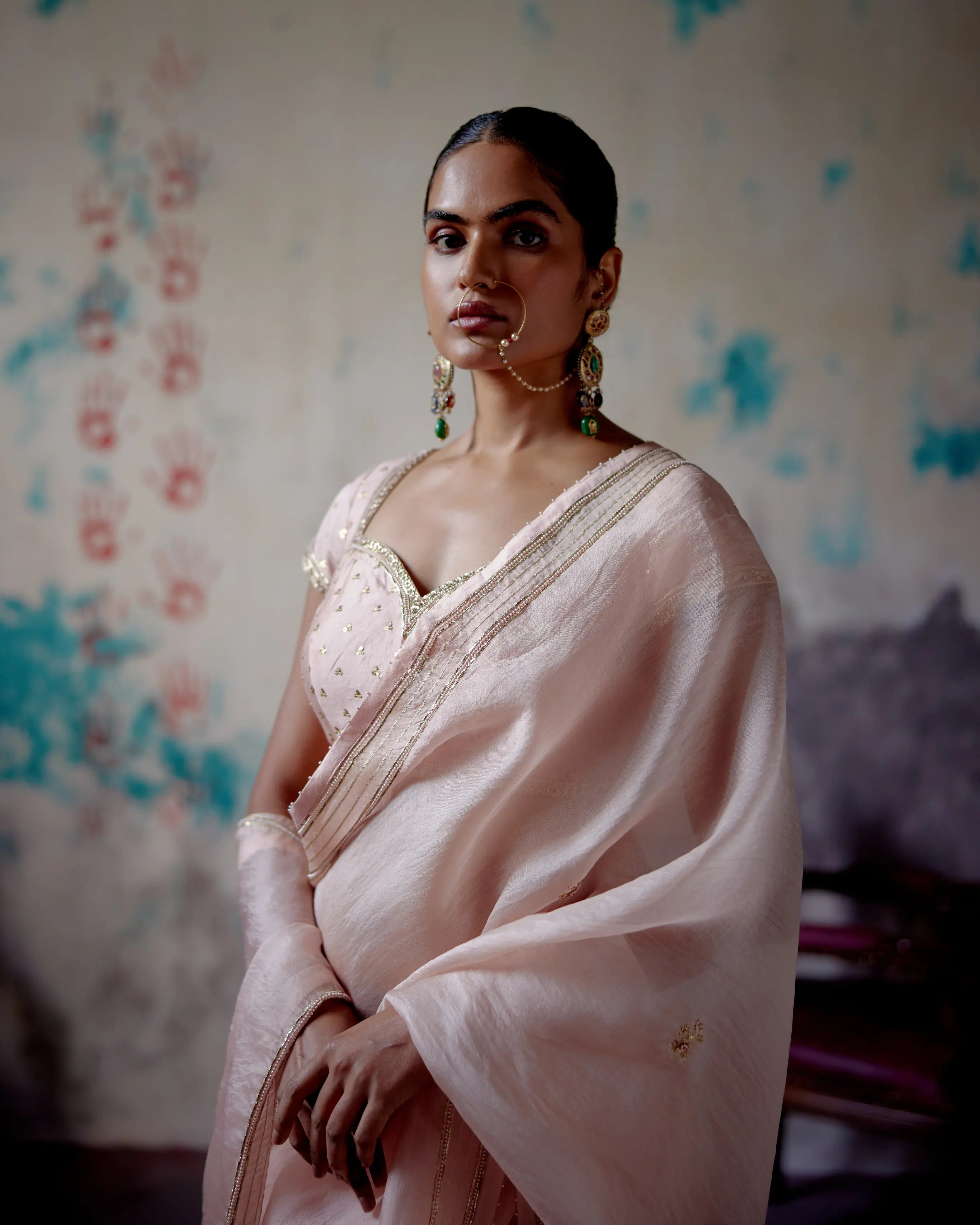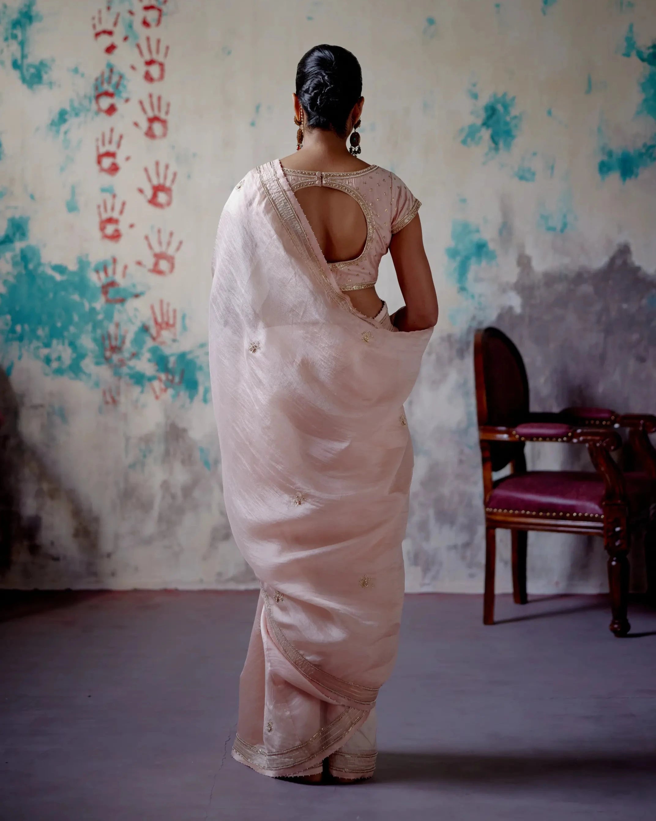 Embrace elegance with our Soft Peach Half and Half Saree, featuring a stunning mega sleeve blouse. This exquisite saree combines delicate peach tones with intricate patterns, creating a fresh and contemporary look that perfect for any occasion. The unique half and half design adds a playful twist, while the luxurious fabric drapes beautifully.