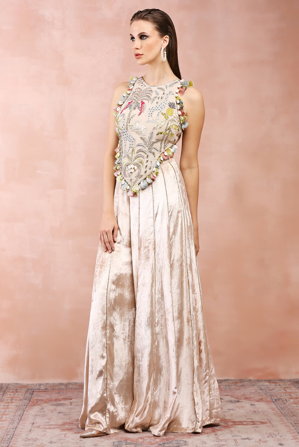 Indulge in timeless sophistication with our Stone Georgette Safari Embroidered Choli paired with a luxurious Velvet Sharara. The choli, crafted from elegant stone georgette, features intricate safari-inspired embroidery that adds a touch of classic charm and refined detail. The ensemble is complemented by a richly textured velvet sharara, which enhances the overall look with its opulent feel and graceful drape. Perfect for festive occasions and special events, this outfit seamlessly blends traditional elegance with contemporary style, ensuring you stand out with unparalleled grace and poise.