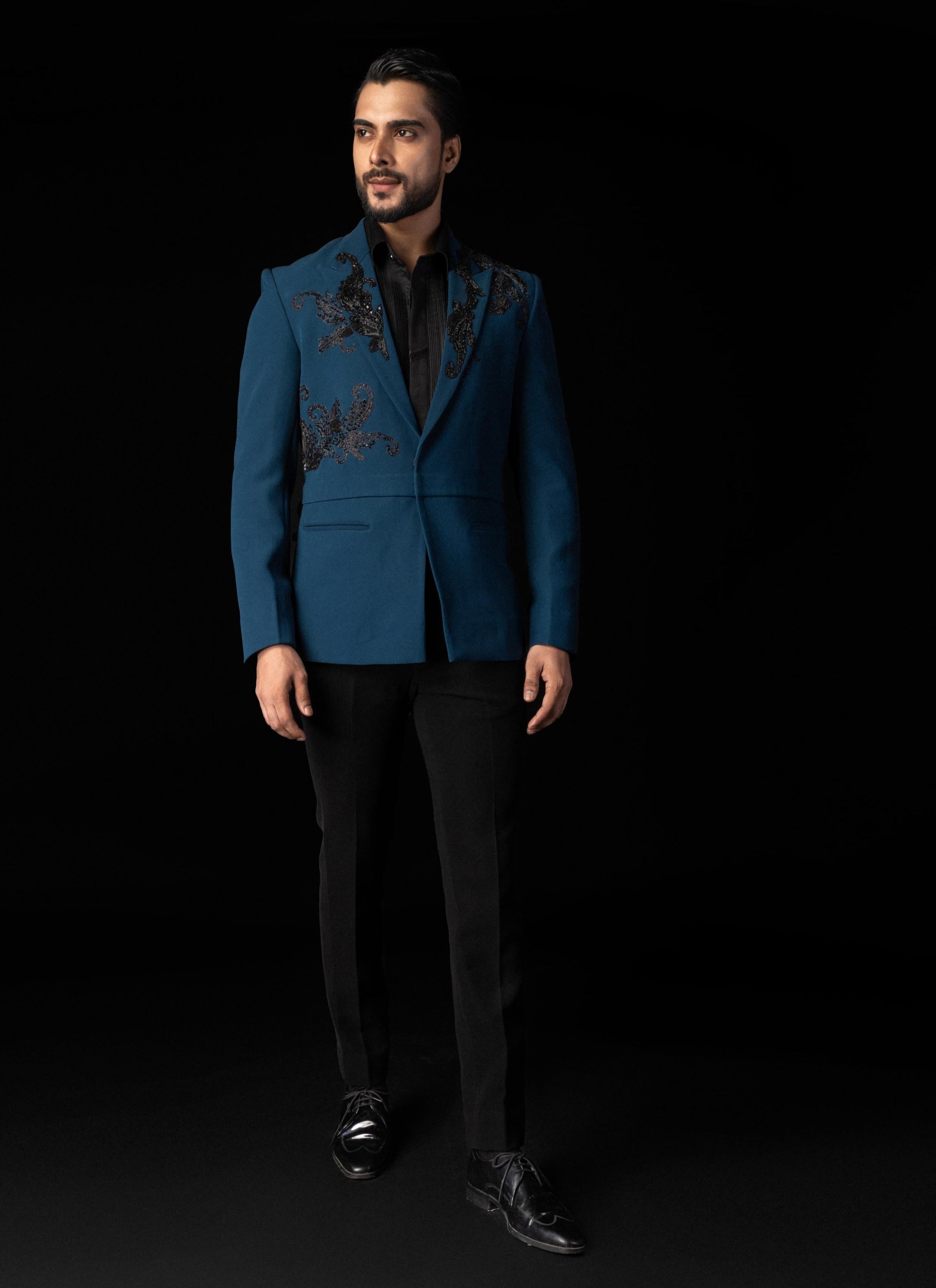 Make a bold fashion statement with the Teal Zeal Double Panelled Tuxedo, a striking blend of modern design and classic elegance. Featuring a rich teal hue and unique double-panel detailing, this tuxedo exudes sophistication and individuality. The carefully tailored fit and contemporary design make it a standout choice for formal events, weddings, and upscale galas. Whether you're attending a black-tie affair or a special celebration, the Teal Zeal Tuxedo offers a refined and dynamic look that ensures you'll make a lasting impression.