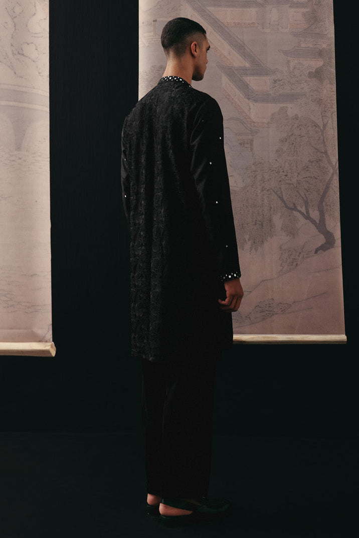 The Black Mirrorwork kurta set by Twenty Nine is designed for evenings that call for quiet drama. Whether you're attending a cocktail sangeet, festive dinner, or an intimate celebration, this ensemble delivers refined glamour. The intricate mirror detailing reflects light beautifully, making it ideal for night events and statement appearances. Pair it with classic mojaris or sleek footwear to complete the look. This kurta set offers a balance of heritage craftsmanship and modern tailoring, ensuring you stand out effortlessly while maintaining timeless elegance.