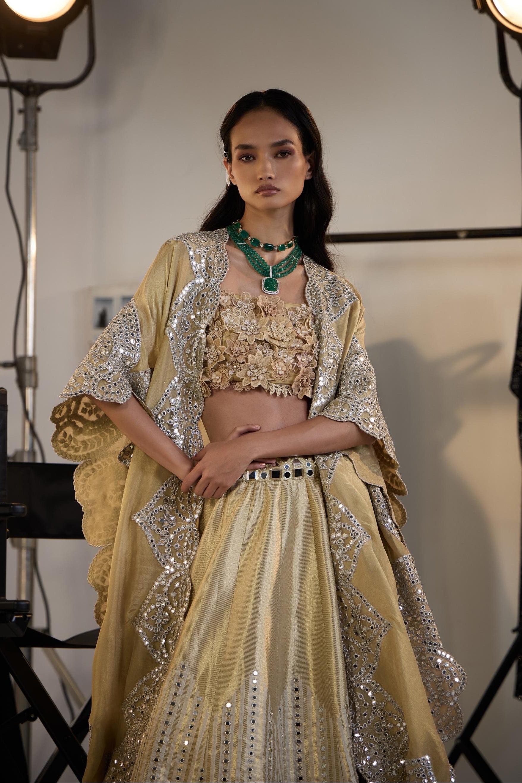 Components: 3 pieces (Lehenga, blouse, cape)