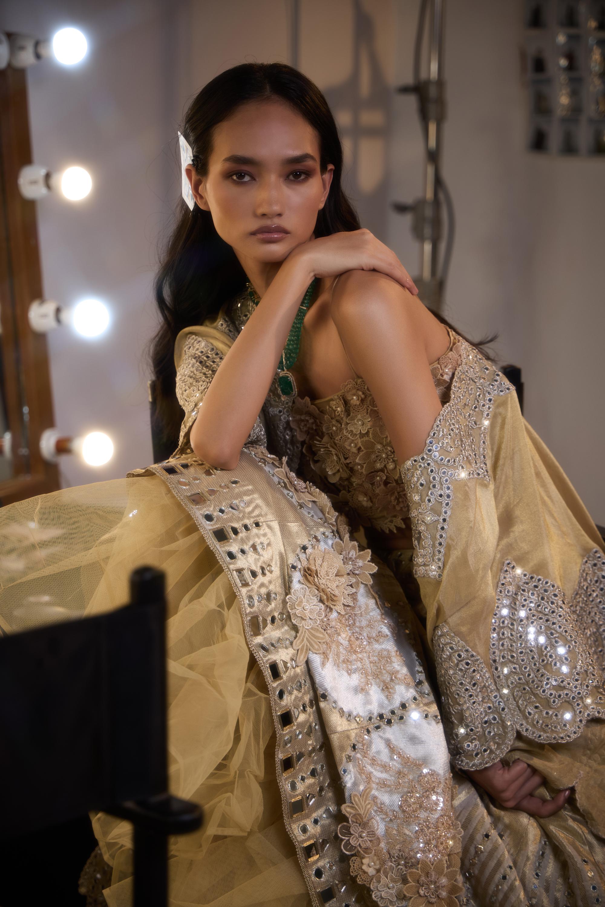 The gold banarasi brocade lehenga set by Twenty Nine is designed for traditional wedding celebrations. This gold banarasi brocade lehenga set features luxurious Banarasi brocade fabric. Crafted for grandeur, the gold banarasi brocade lehenga set offers a structured and elegant silhouette. Ideal for ceremonial functions, the gold banarasi brocade lehenga set reflects heritage artistry. Styled traditionally, the gold banarasi brocade lehenga set delivers classic festive elegance.