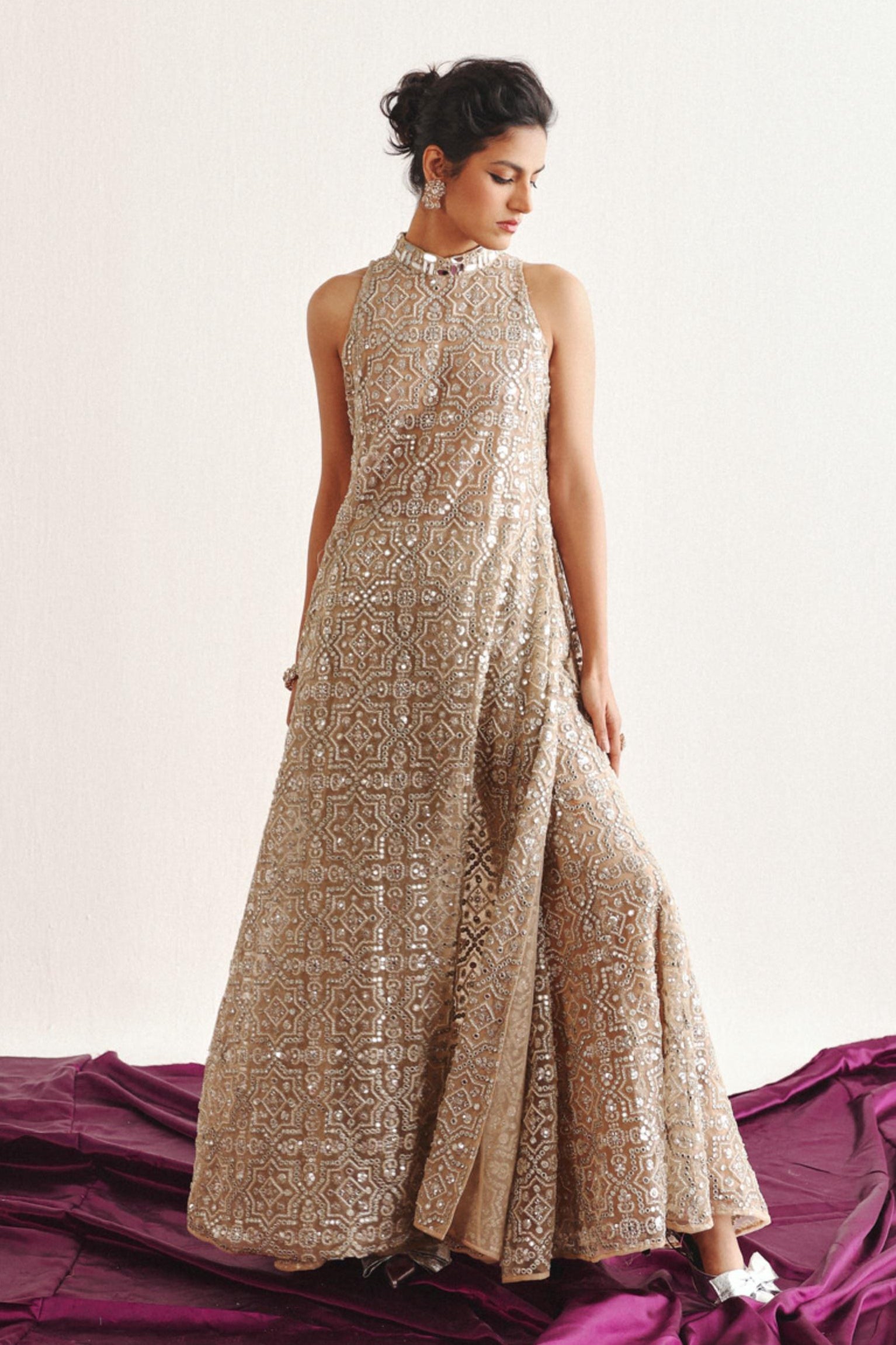 Designed for modern festive dressing, the pink sleeveless dress with sharara offers effortless elegance. The sleeveless silhouette adds ease, while the sharara brings festive volume and movement. Ideal for wedding functions, sangeet nights, or celebratory evenings, this ensemble blends comfort with contemporary charm.