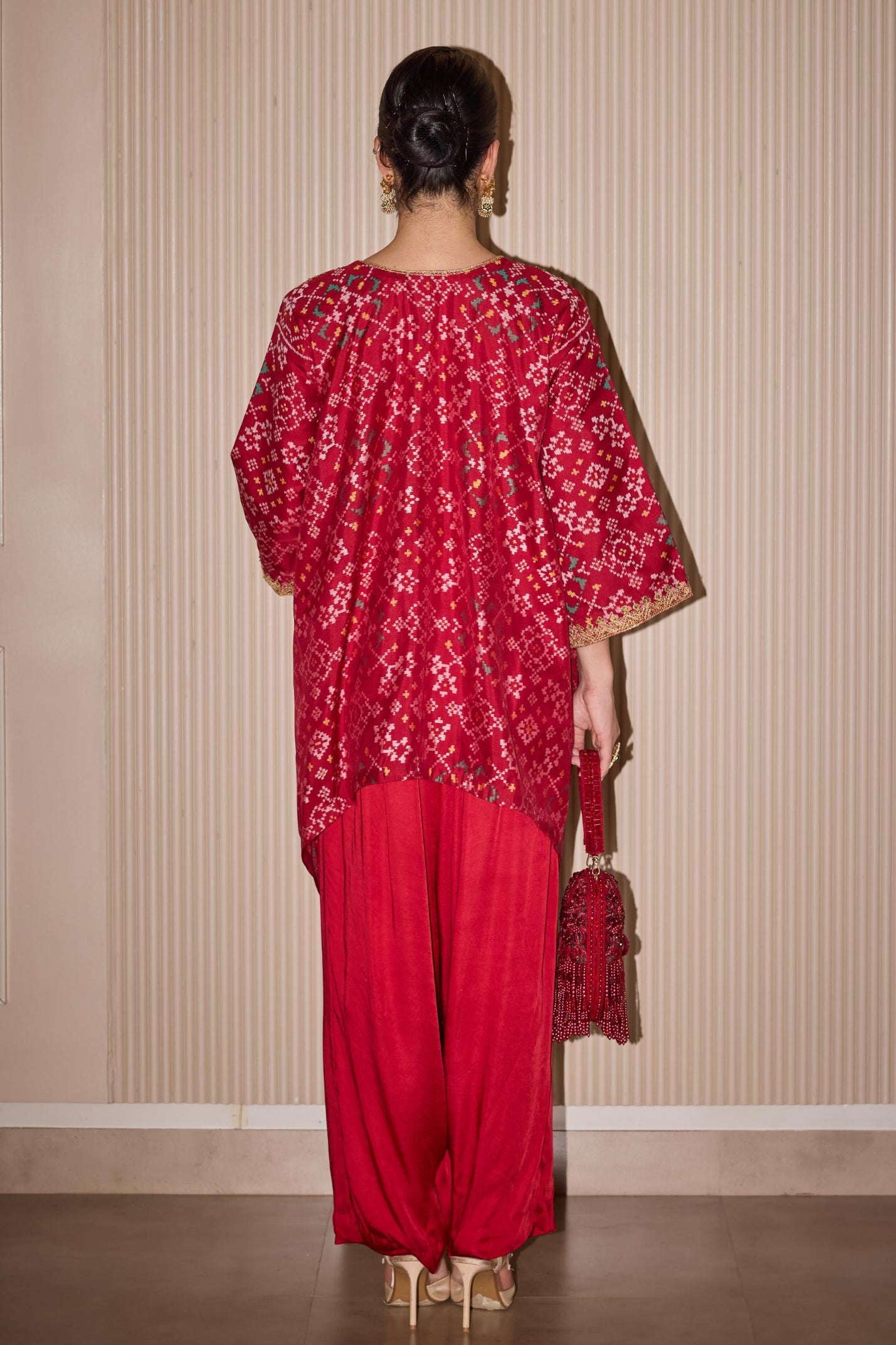 This red short A-line top with dhoti salwar co ord set by Twenty Nine is crafted for modern festive wear. The co ord set combines a structured top with a fluid dhoti salwar, offering comfort without compromising style. Designed for contemporary celebrations, this co ord set allows ease of movement during long events. The bold red hue enhances the festive appeal of the co ord set, making it ideal for evening occasions. Styled together, the co ord set creates a balanced silhouette that flatters effortlessly. This co ord set is perfect for cocktail parties, festive dinners, and modern gatherings where relaxed elegance is key.