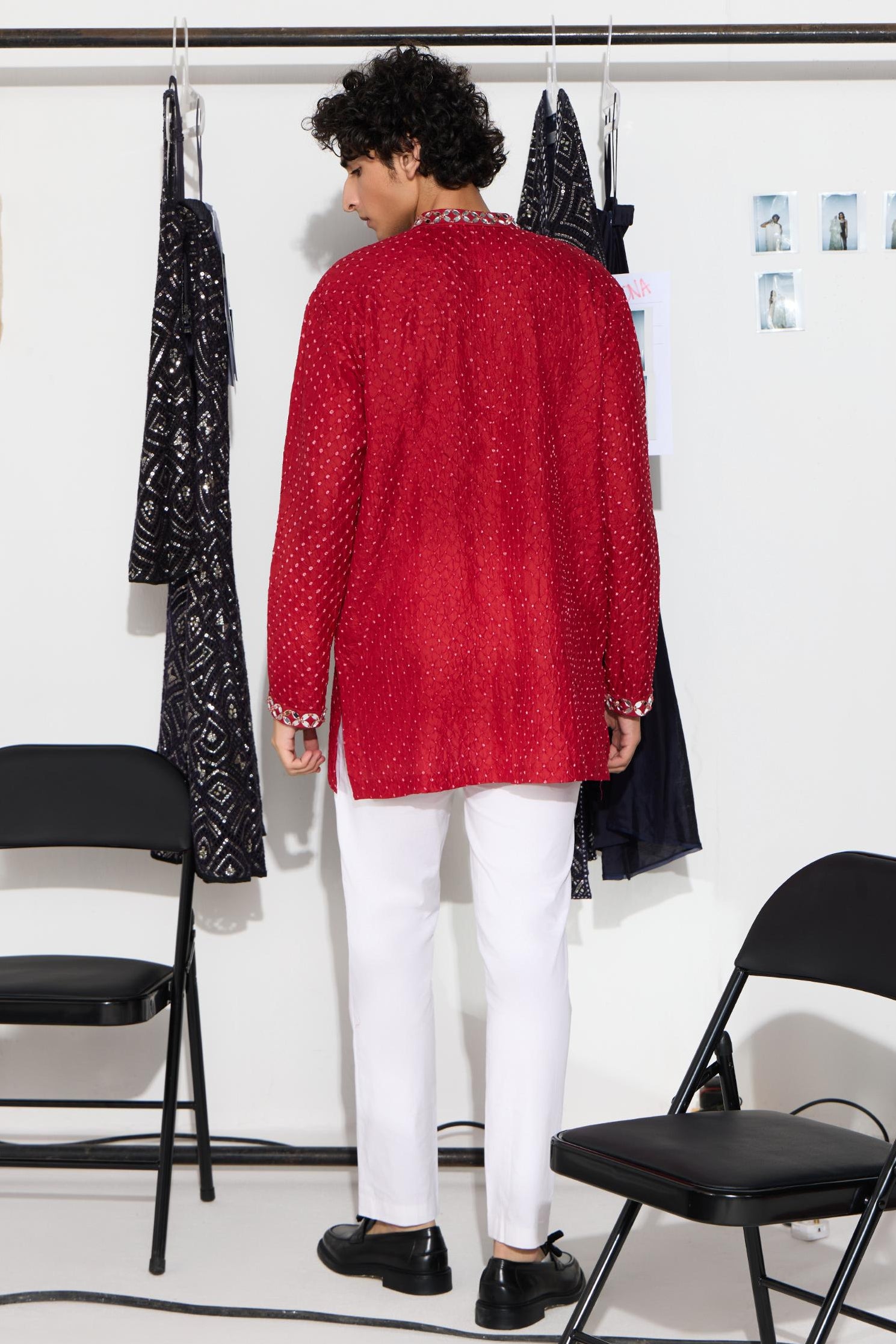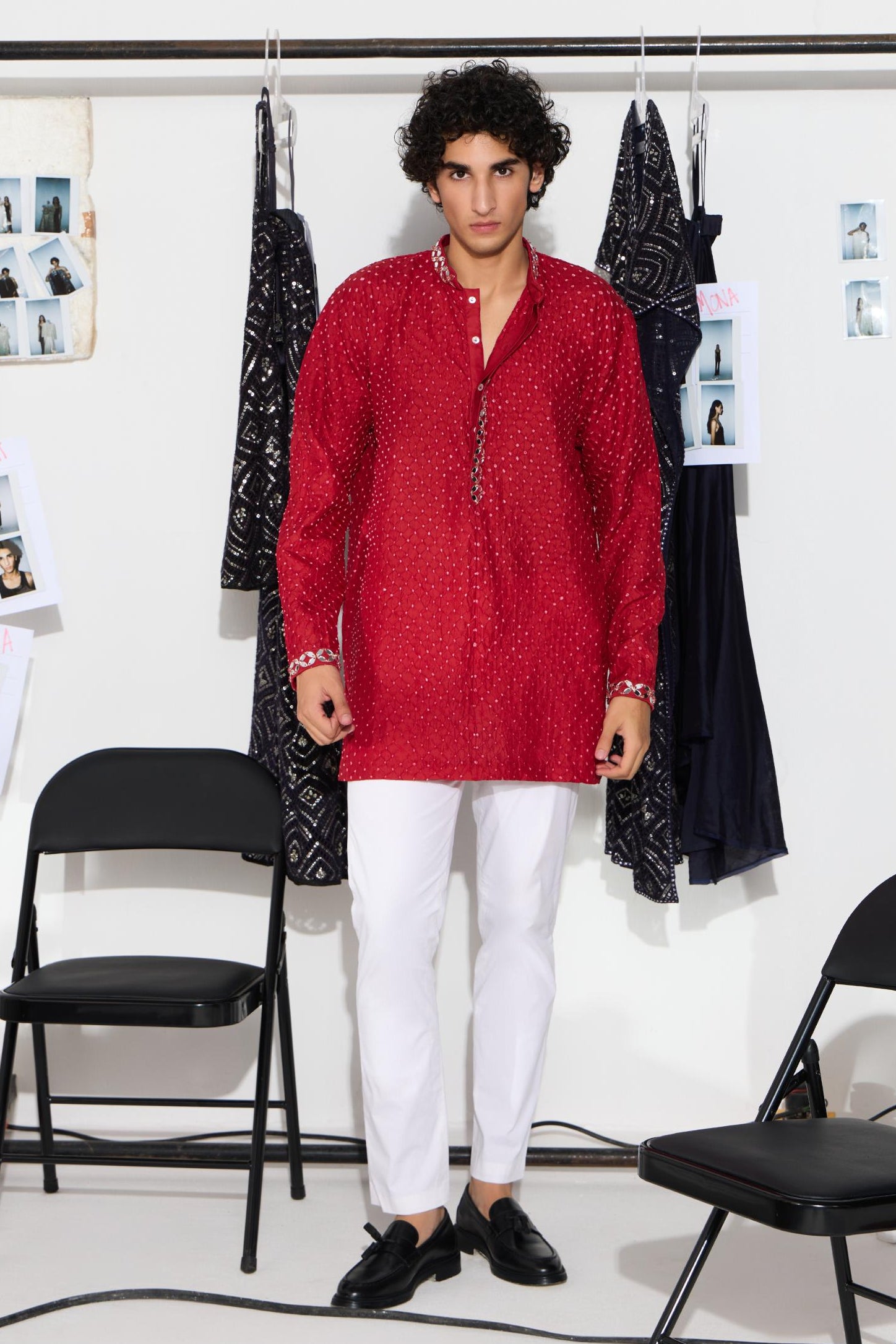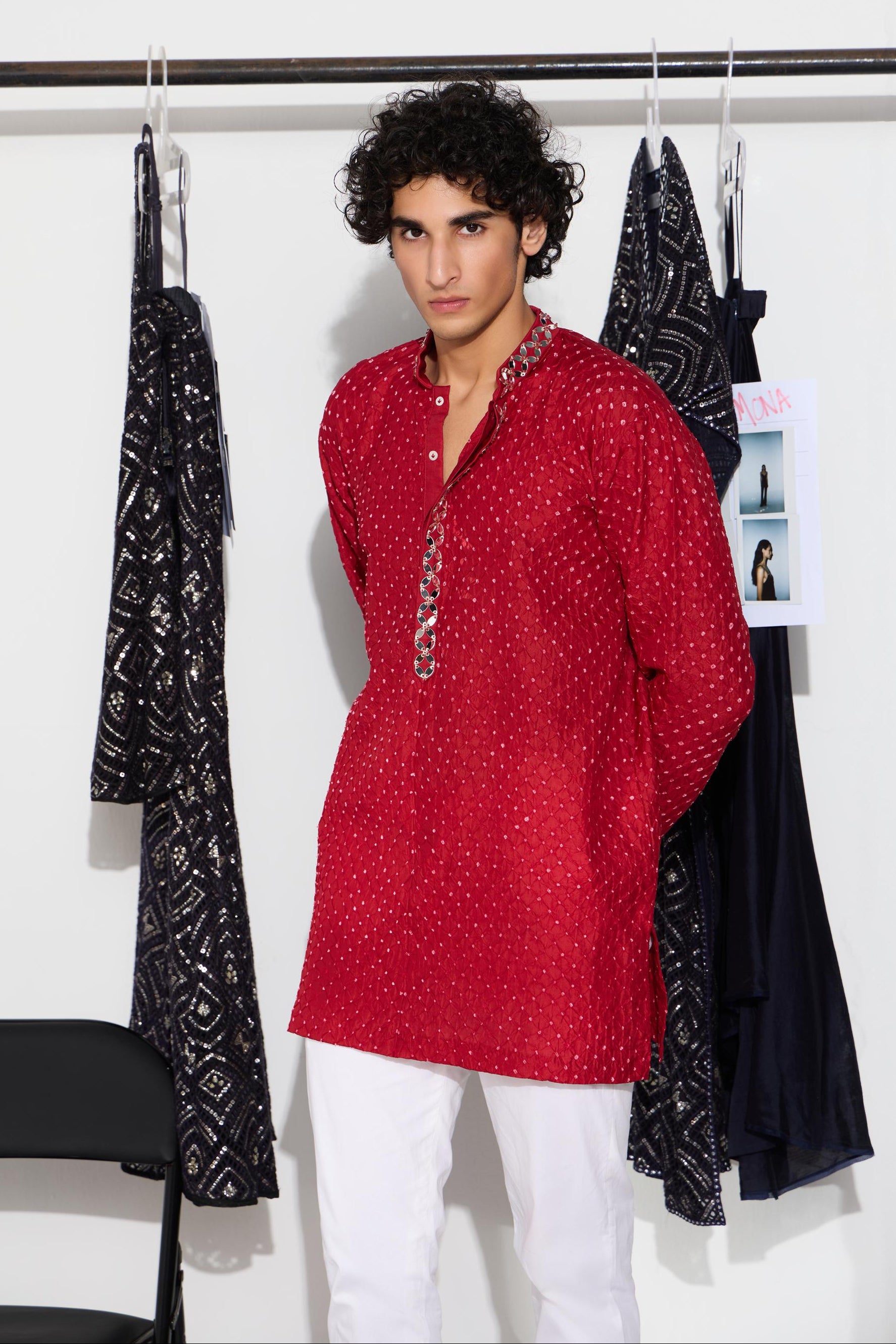 This kurta set by Twenty Nine is crafted for Indian festive and wedding occasions. The red bandhani print enhances the traditional charm while maintaining modern elegance. The kurta set combines a comfortable straight pant with a stylish kurta shirt, ensuring ease of movement without compromising style. Perfect for daytime events, sangeet nights, and cultural gatherings, this designer kurta set provides versatility and sophistication. Pair with minimal accessories for a polished look. With vibrant color and refined craftsmanship, this kurta set delivers both festive appeal and modern style for Indian women.