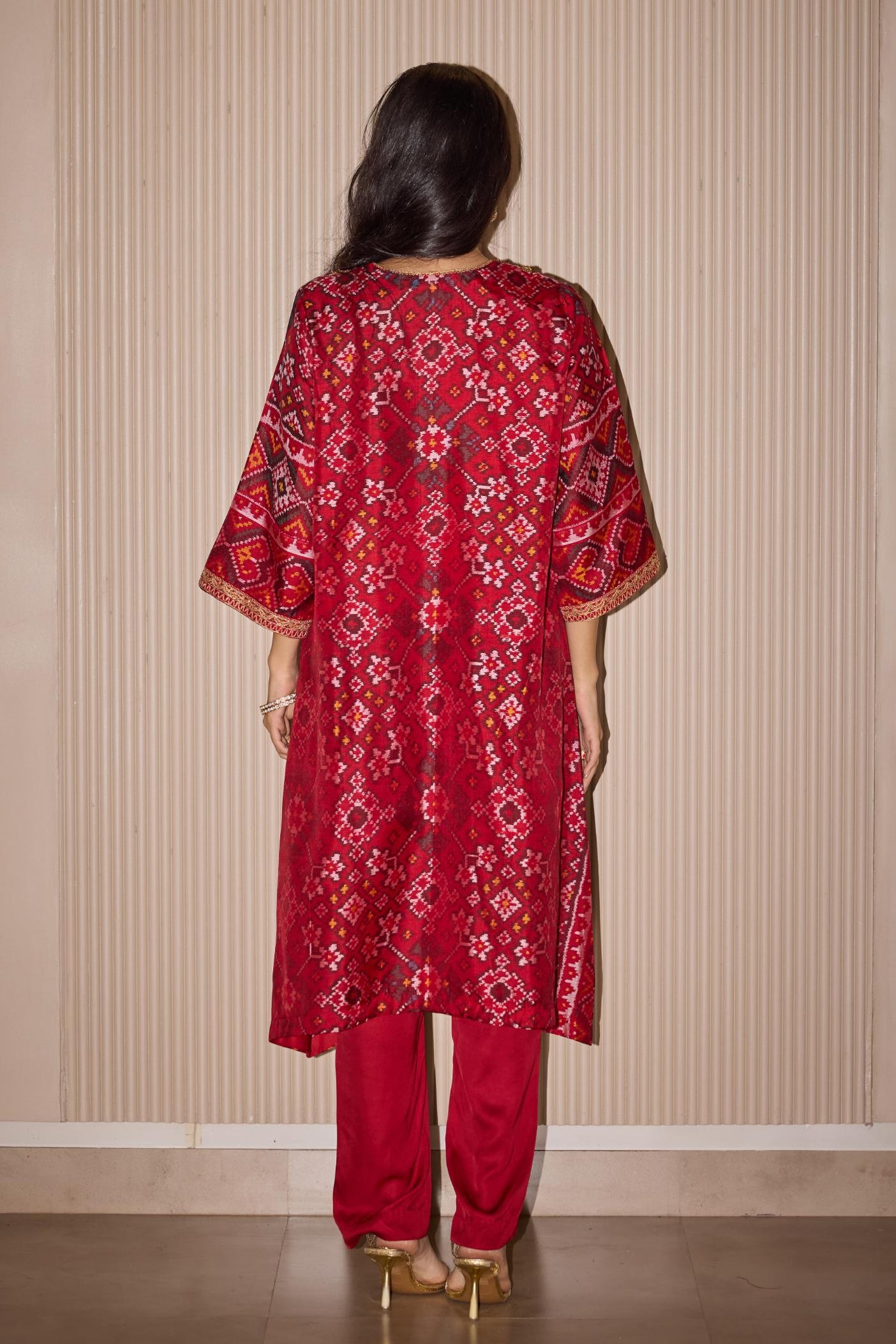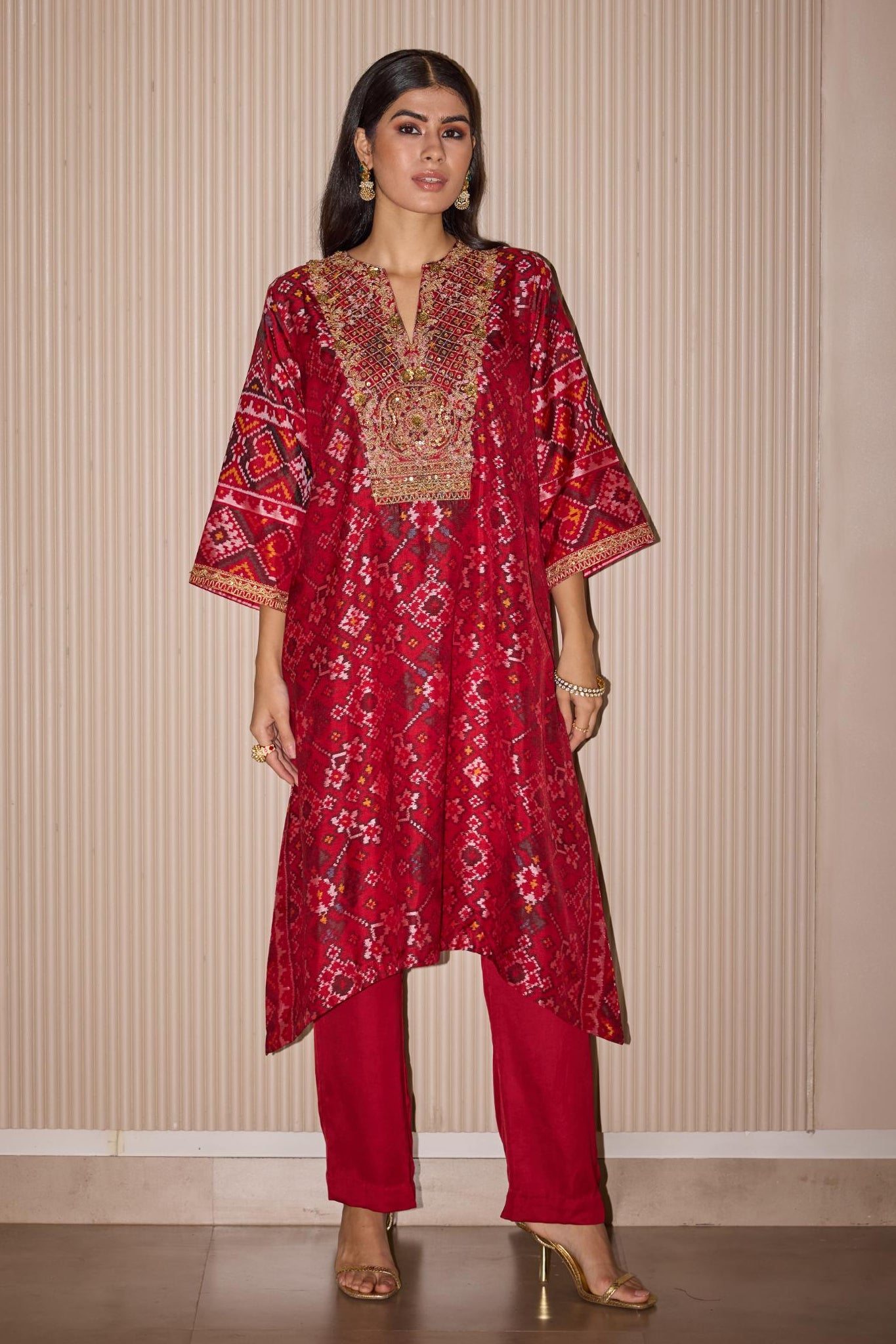 The red long kurta with cigarette pants kurta pant set from Twenty Nine is curated for effortless festive elegance. The elongated kurta creates a flattering silhouette, while the cigarette pants add structure and balance. Ideal for festive lunches, office celebrations, and evening gatherings, this set offers polished comfort.